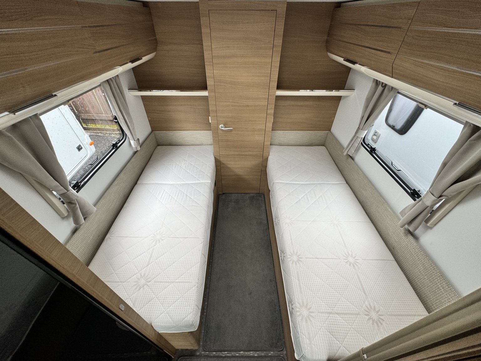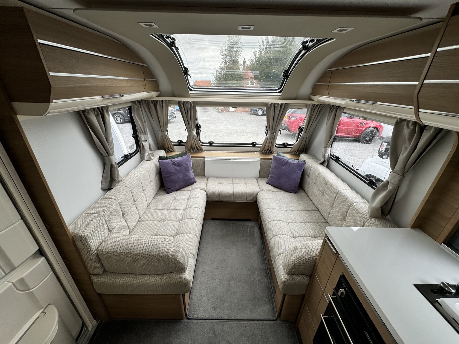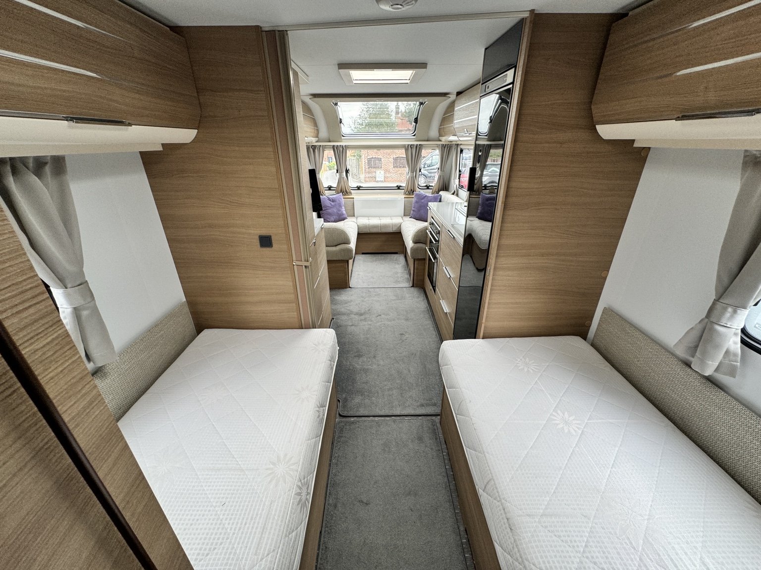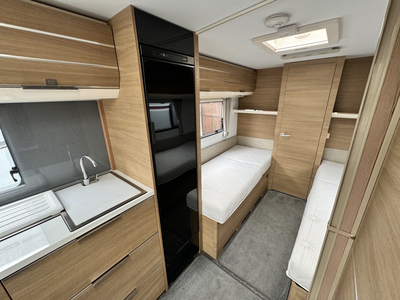 Complete end washroom incorporating separate shower enclosure, vanity unit, and toilet - 2 x fixed single beds with "lift up" back rest mattress' - central offside tower fridge freezer and kitchen - central nearside dresser - U shaped wrap around seating at the front / 1 X large double bed at the front - We are offering for sale, a 1 owner from new, full up to date service history, 'as new' condition throughout Adria Adora Seine. You can see from the images that this caravan has been maintained to the highest standards throughout, and we would strongly recommend viewing this tourer to appreciate the condition !
