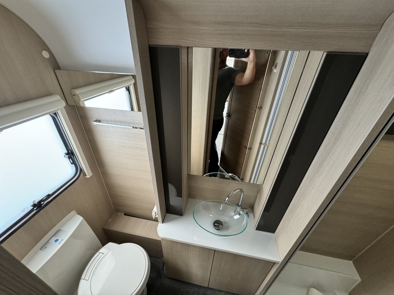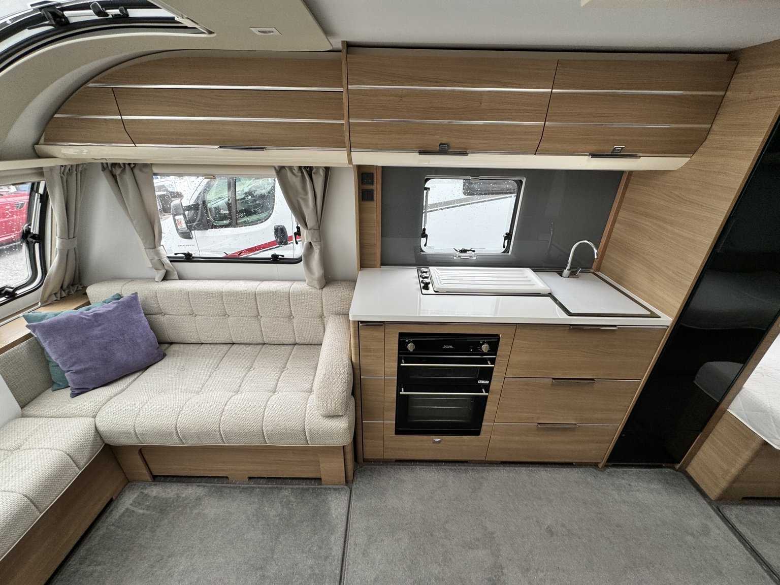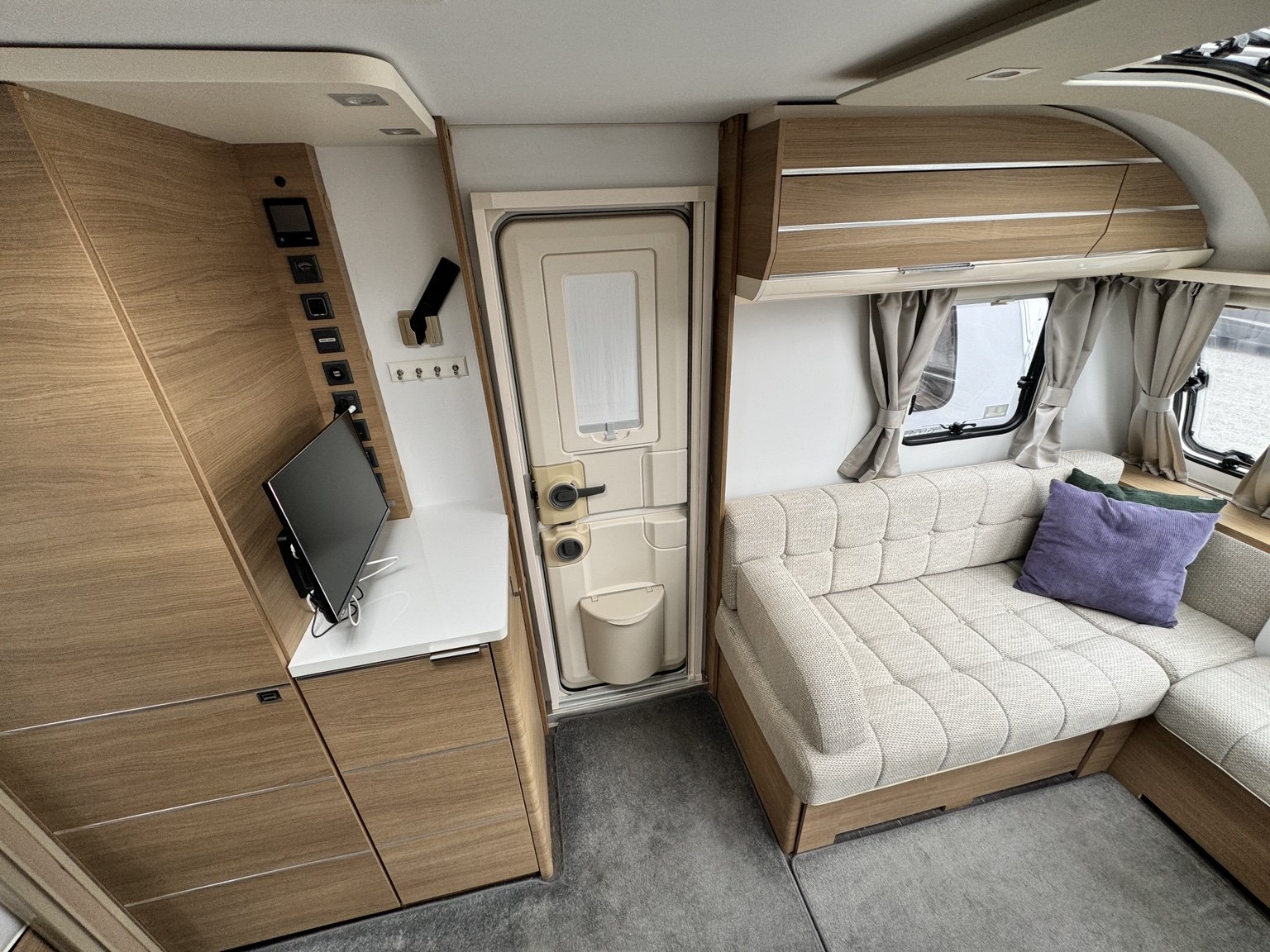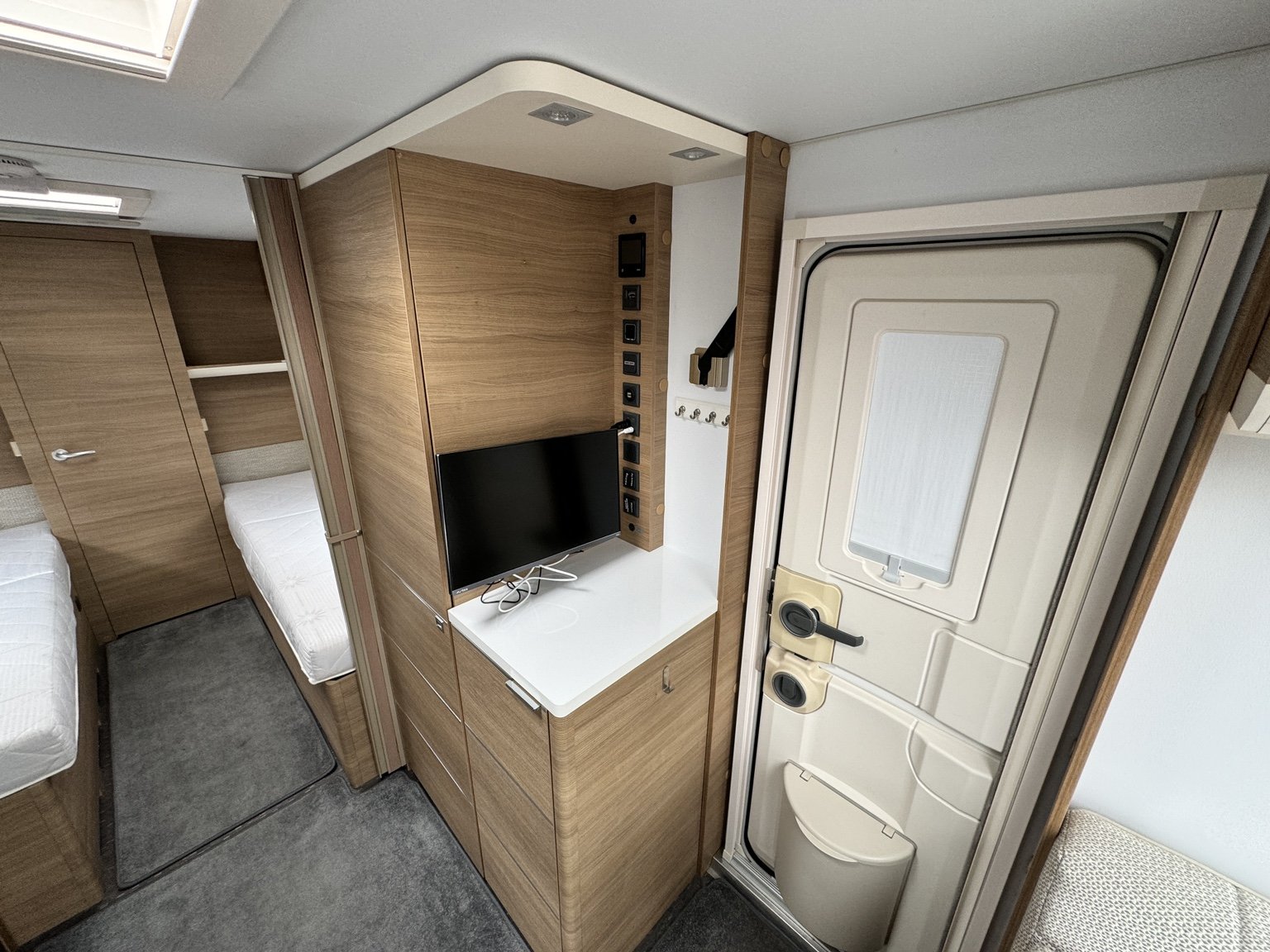 Complete end washroom incorporating separate shower enclosure, vanity unit, and toilet - 2 x fixed single beds with "lift up" back rest mattress' - central offside tower fridge freezer and kitchen - central nearside dresser - U shaped wrap around seating at the front / 1 X large double bed at the front - We are offering for sale, a 1 owner from new, full up to date service history, 'as new' condition throughout Adria Adora Seine. You can see from the images that this caravan has been maintained to the highest standards throughout, and we would strongly recommend viewing this tourer to appreciate the condition !