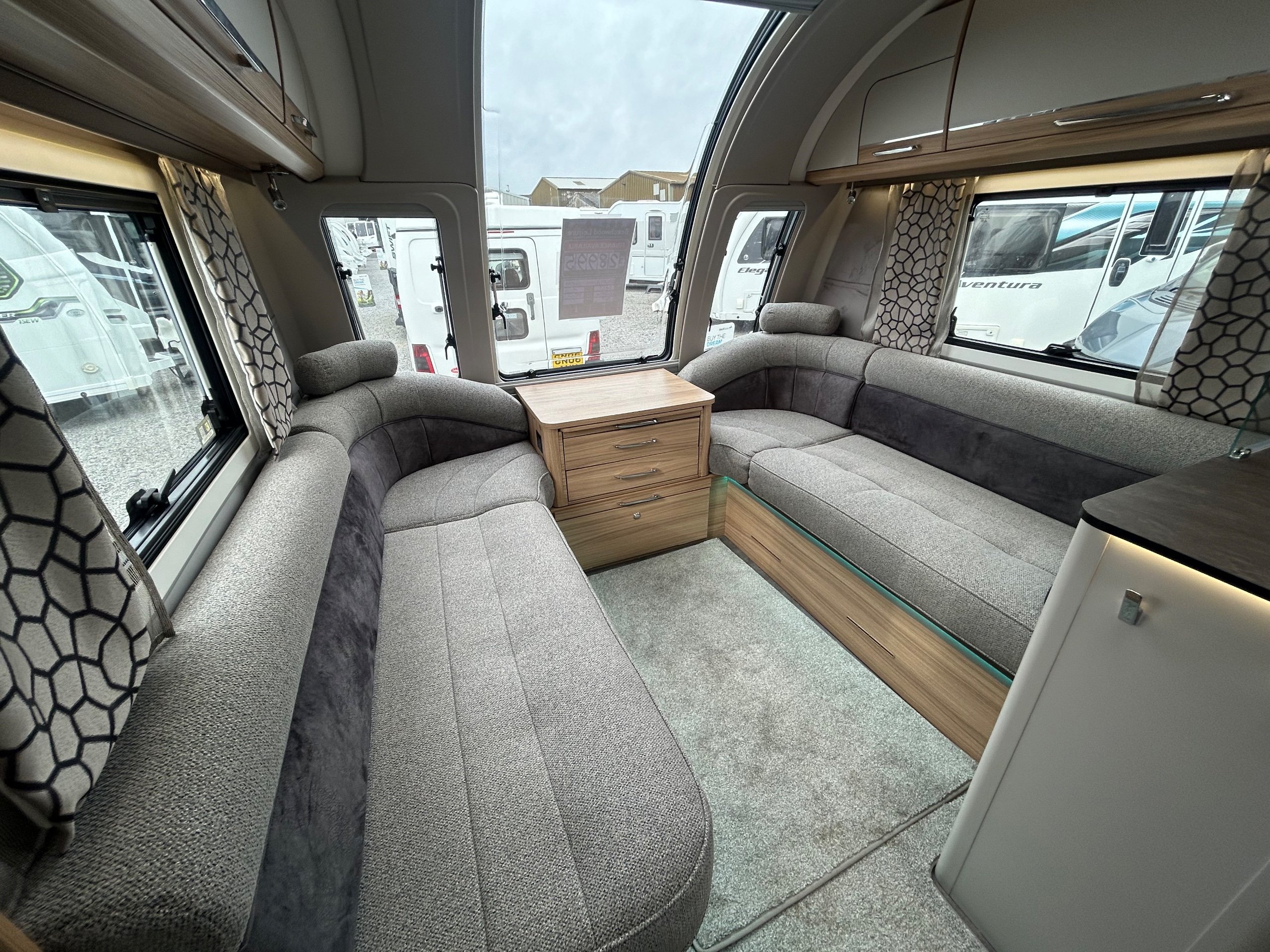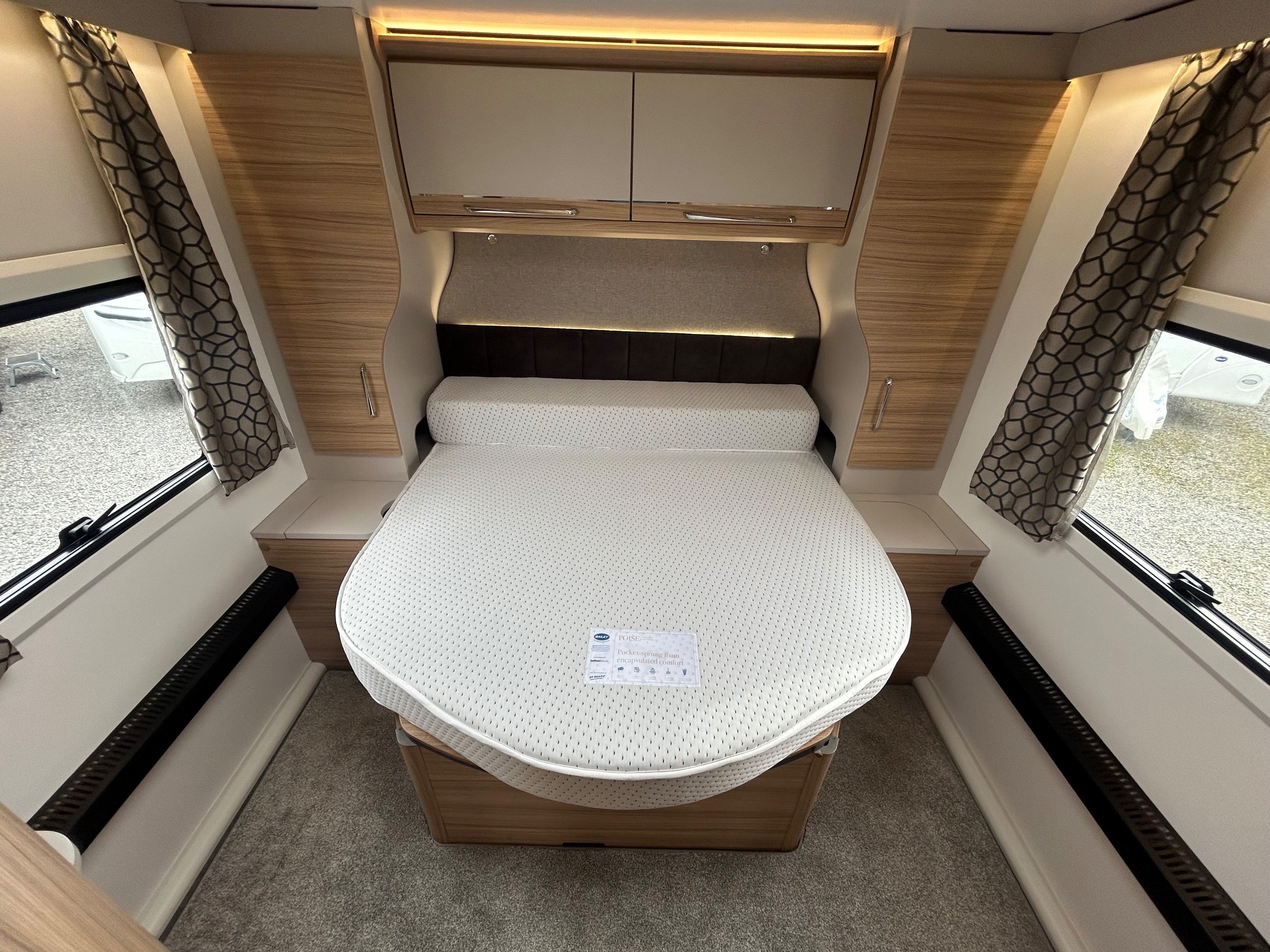 A luxurious 4-berth twin-axle caravan that epitomizes elegance, comfort, and sought-after design. This model is meticulously crafted to provide a truly exceptional travel experience, boasting a range of premium features and stylish enhancements.