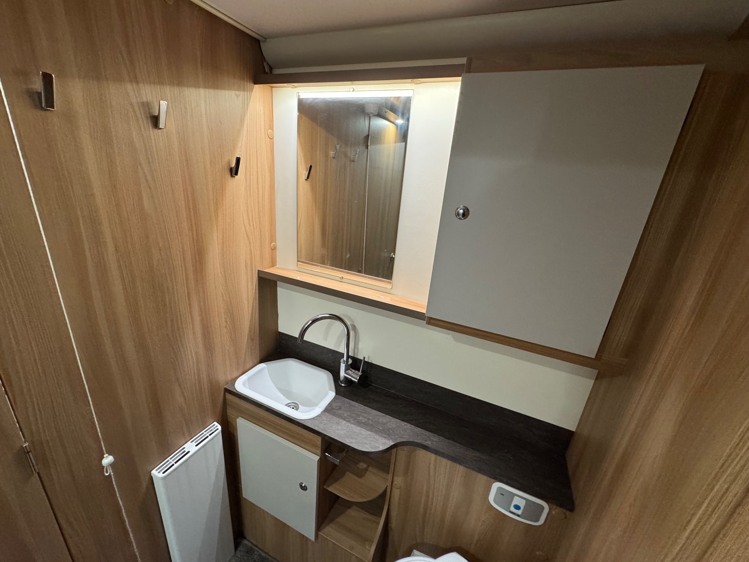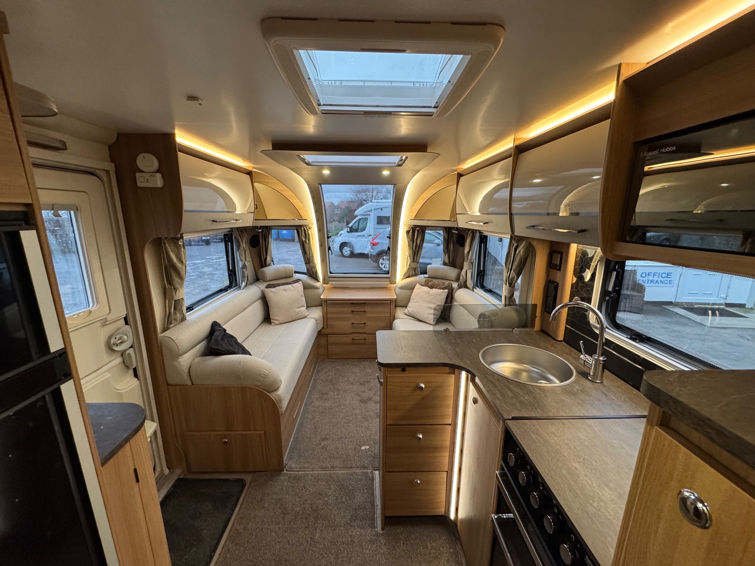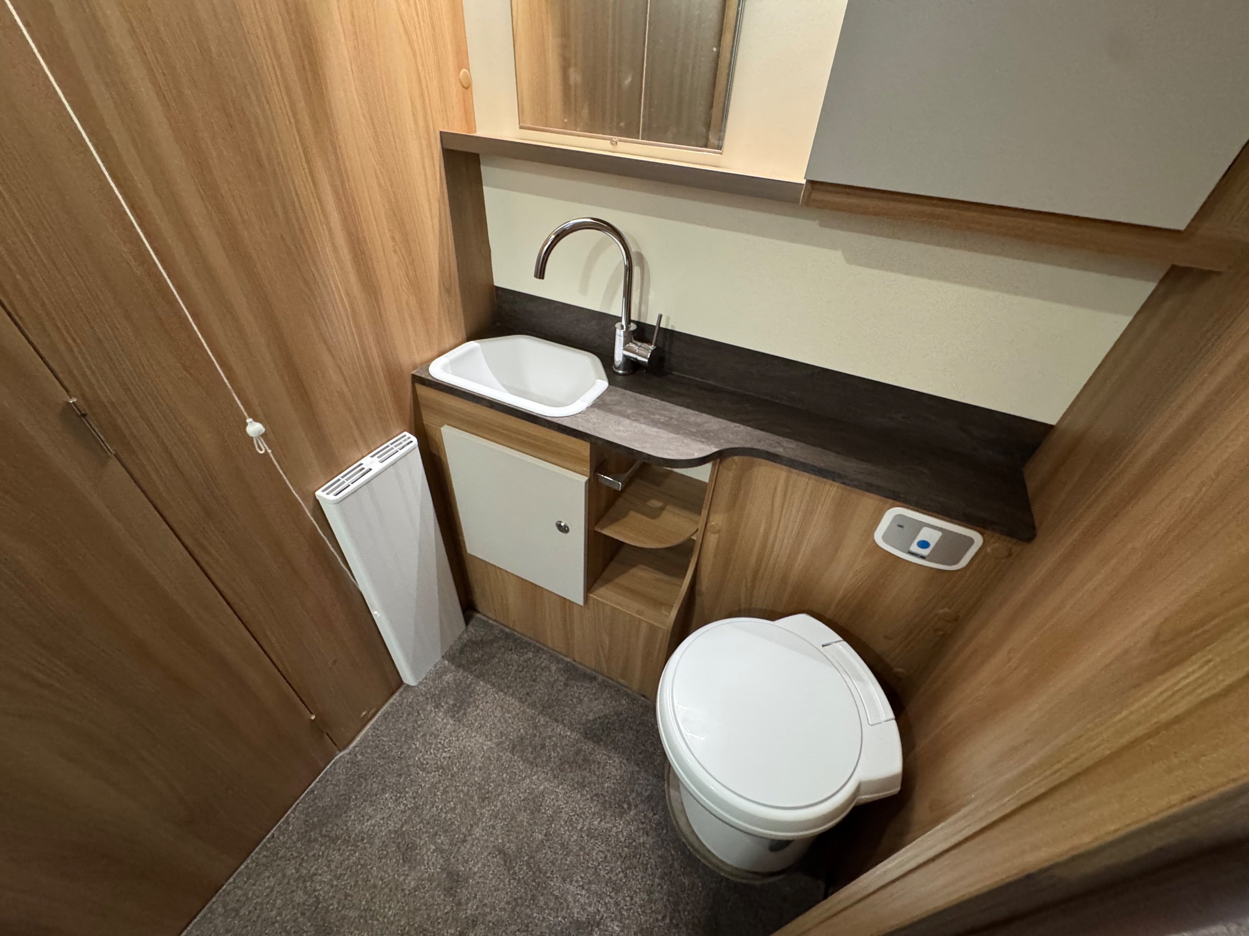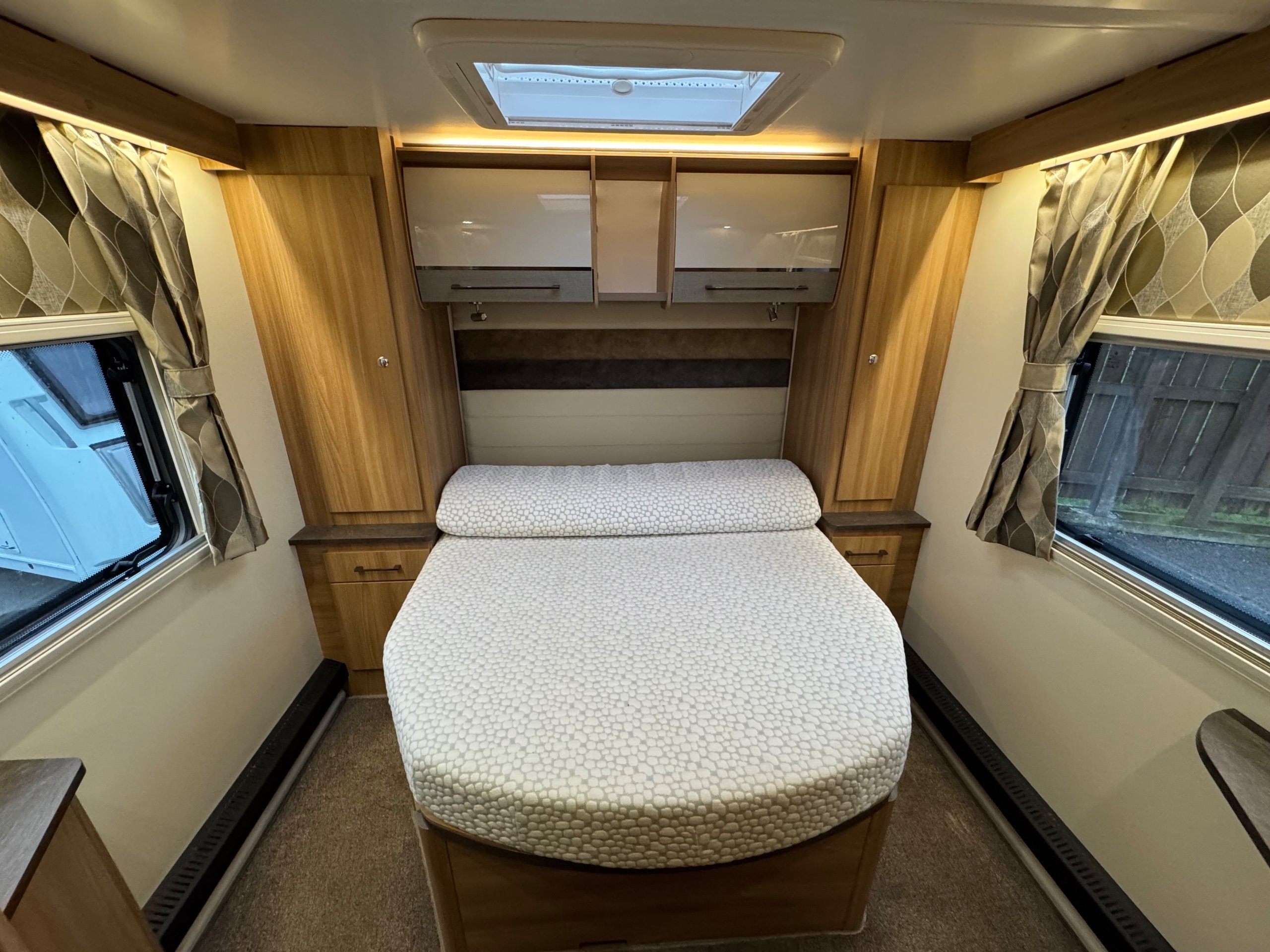 Rear bedroom incorporating central island bed and adjoining wardrobes - central dressing room with individual shower cubicle , vanity unit and toilet - central offside kitchen - double dinette / lounge area at the front . This luxurious and spacious caravan is designed with comfort and style in mind, The Porto is equipped with modern amenities, including a fully functional kitchen with state-of-the-art appliances, and a cozy lounge area ideal for relaxing after a long day on the road. With its sleek exterior and high-quality construction, the Bailey Alicanto Grande Porto is the perfect choice for those who value both comfort and elegance while on the move. Whether you're planning a weekend getaway or a long road trip, this caravan is sure to exceed your expectations and provide you with a memorable travel experience.