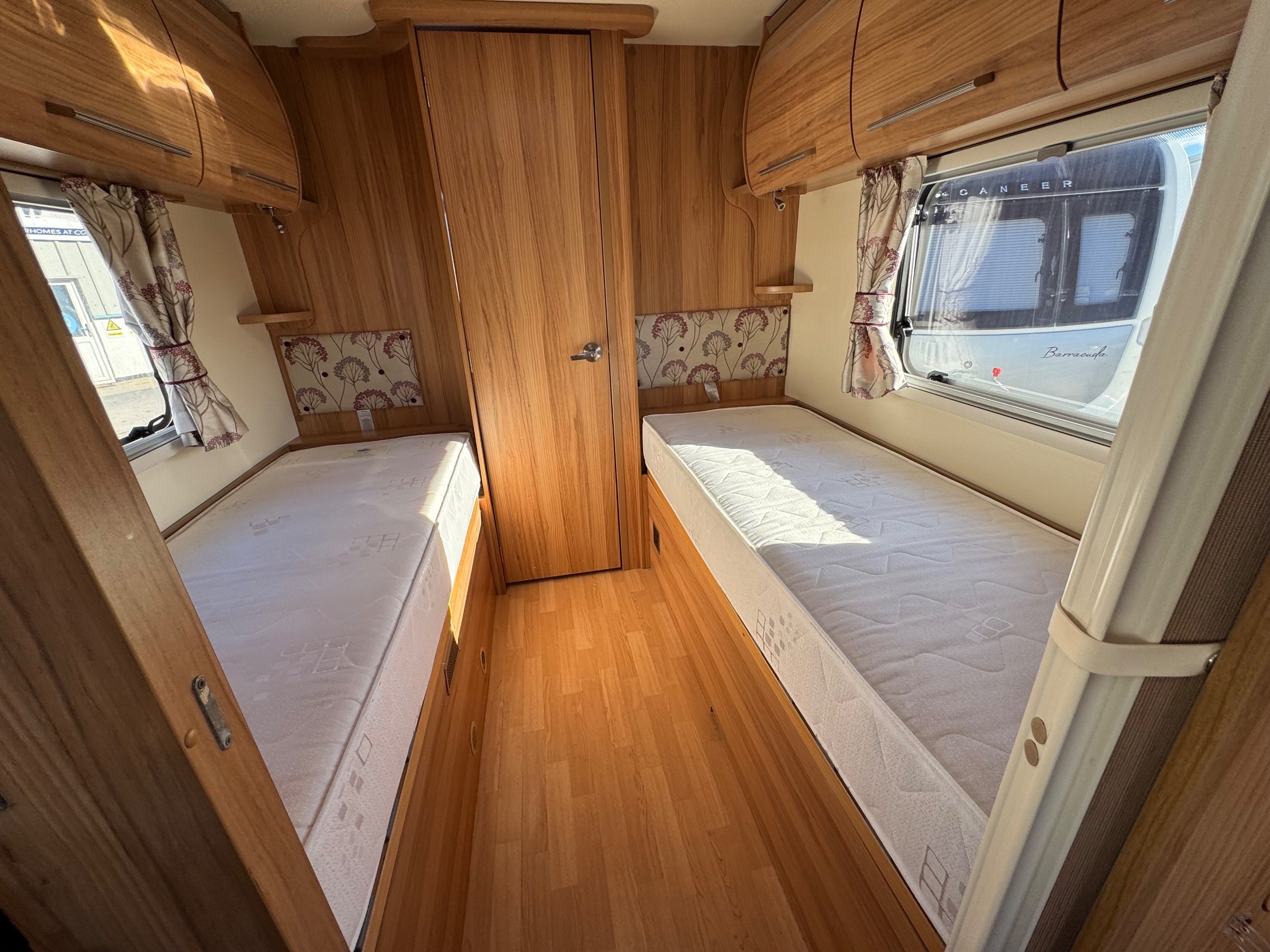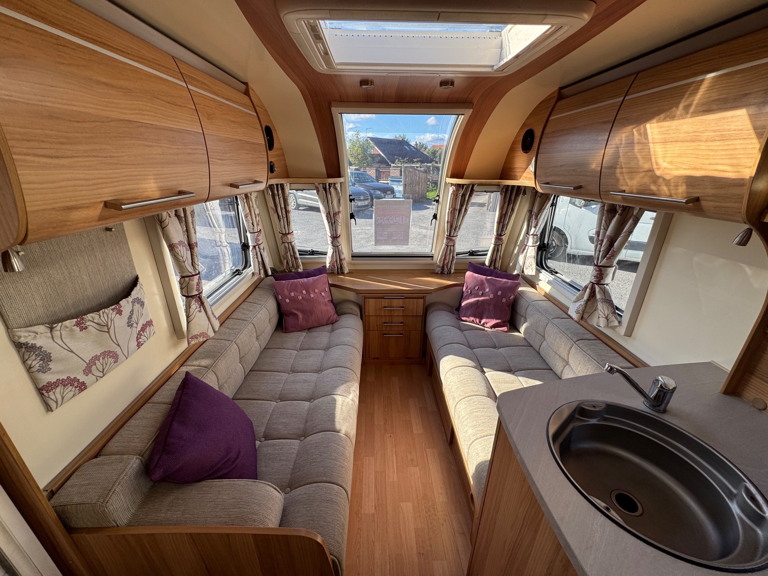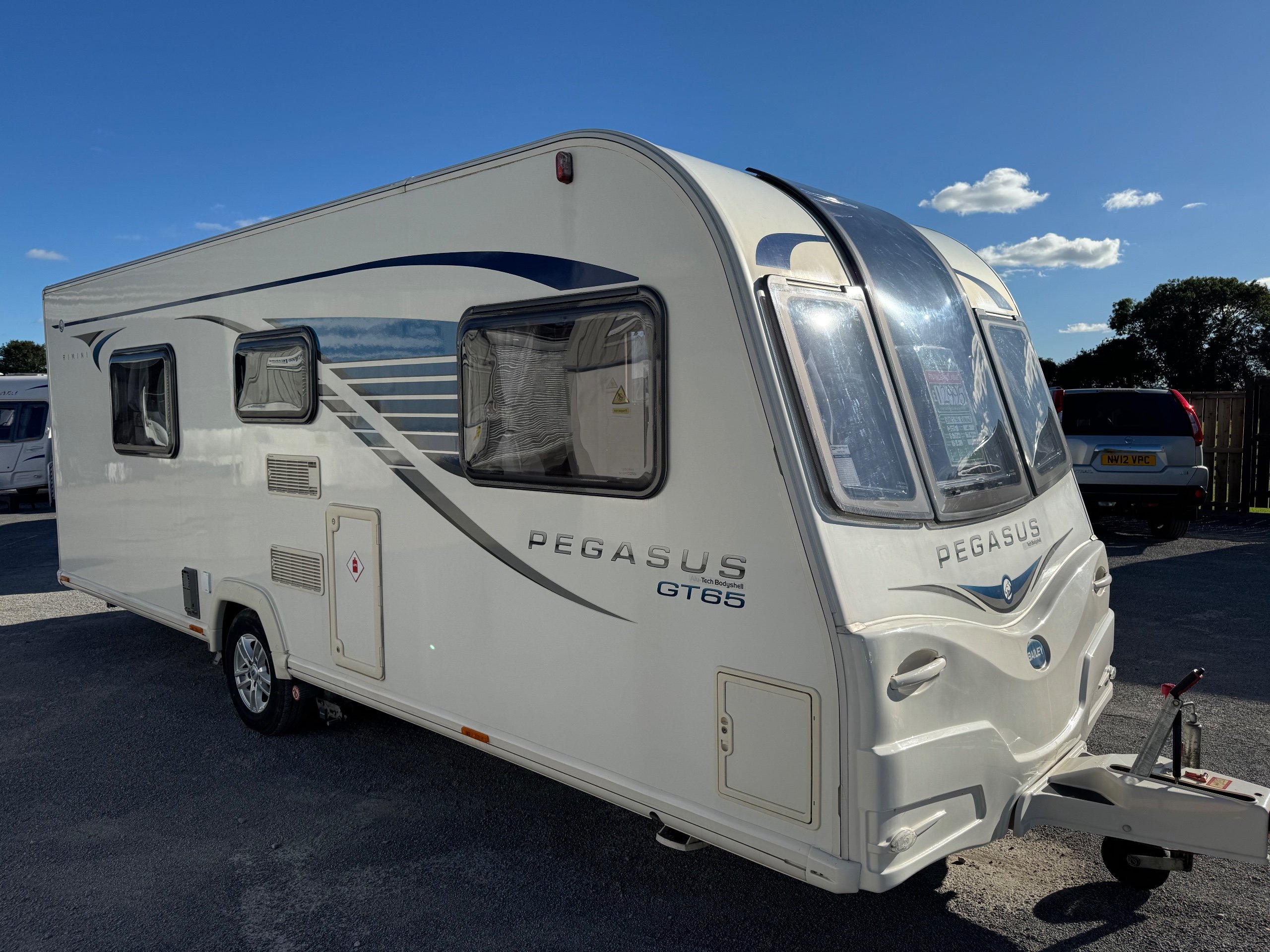 2015 BAILEY PEGASUS GT 65 RIMINI / 4 berth - full rear dressing room incorporating separate shower cubicle, toilet, wardrobes and vanity unit - fixed twin beds - central offside kitchen - nearside central dresser - 2 x singles / double at the front - the spacious interior is immaculately designed and cleverly detailed to provide the maximum in comfort and practicality - immaculate condition throughout having had minimal use