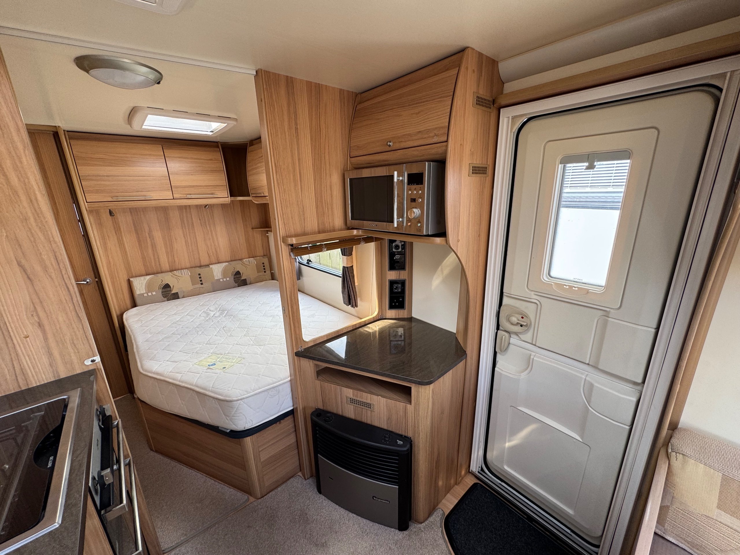BAILEY OLYMPUS 534 / 4 BERTH - complete end dressing room incorporating a separate shower enclosure, vanity unit and toilet - offside fixed double bed with adjacent double wardrobe - central nearside dresser - central offside kitchen - 2 x singles / double at the front - this is a great example of this lightweight fixed bed tourer - in brilliant condition both inside and out - this mode also benefits from ATC (ALKO Trailer Control) which is huge plus for towing! viewing is highly recommended - comes complete with 12 months warranty and a CHOICE OF AWNING !