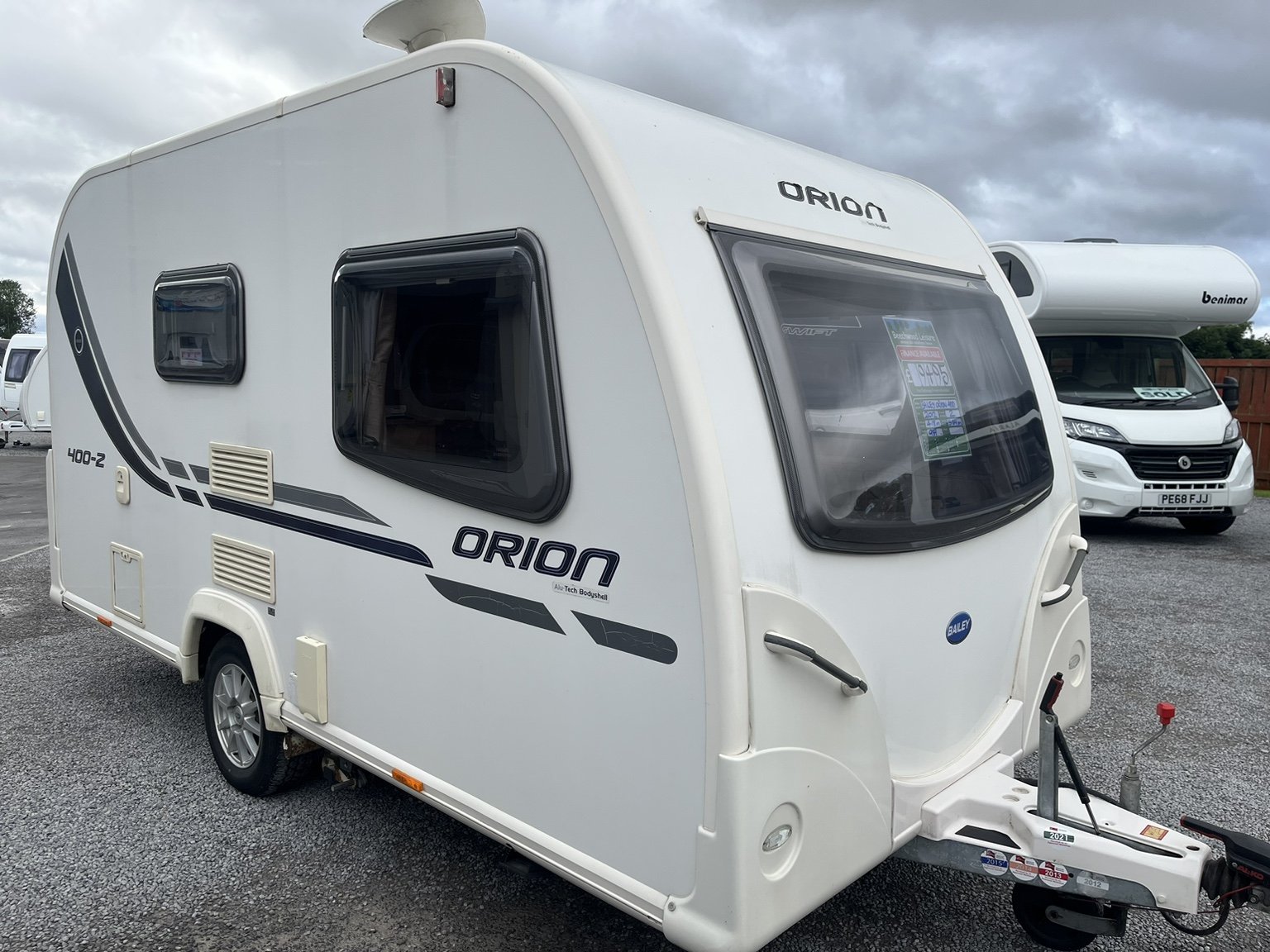 *** SALE AGREED *** SALE AGREED *** 2012 BAILEY ORION 400 / 2 berth - full rear dressing room incorporating a separate shower cubicle, toilet and vanity unit - central offside kitchen - central nearside dresser - 2 x 6" singles at the front / 1 x double - One of the most accommodating lightweight two berth caravans available on the market today ! Represents real value for money in every aspect.