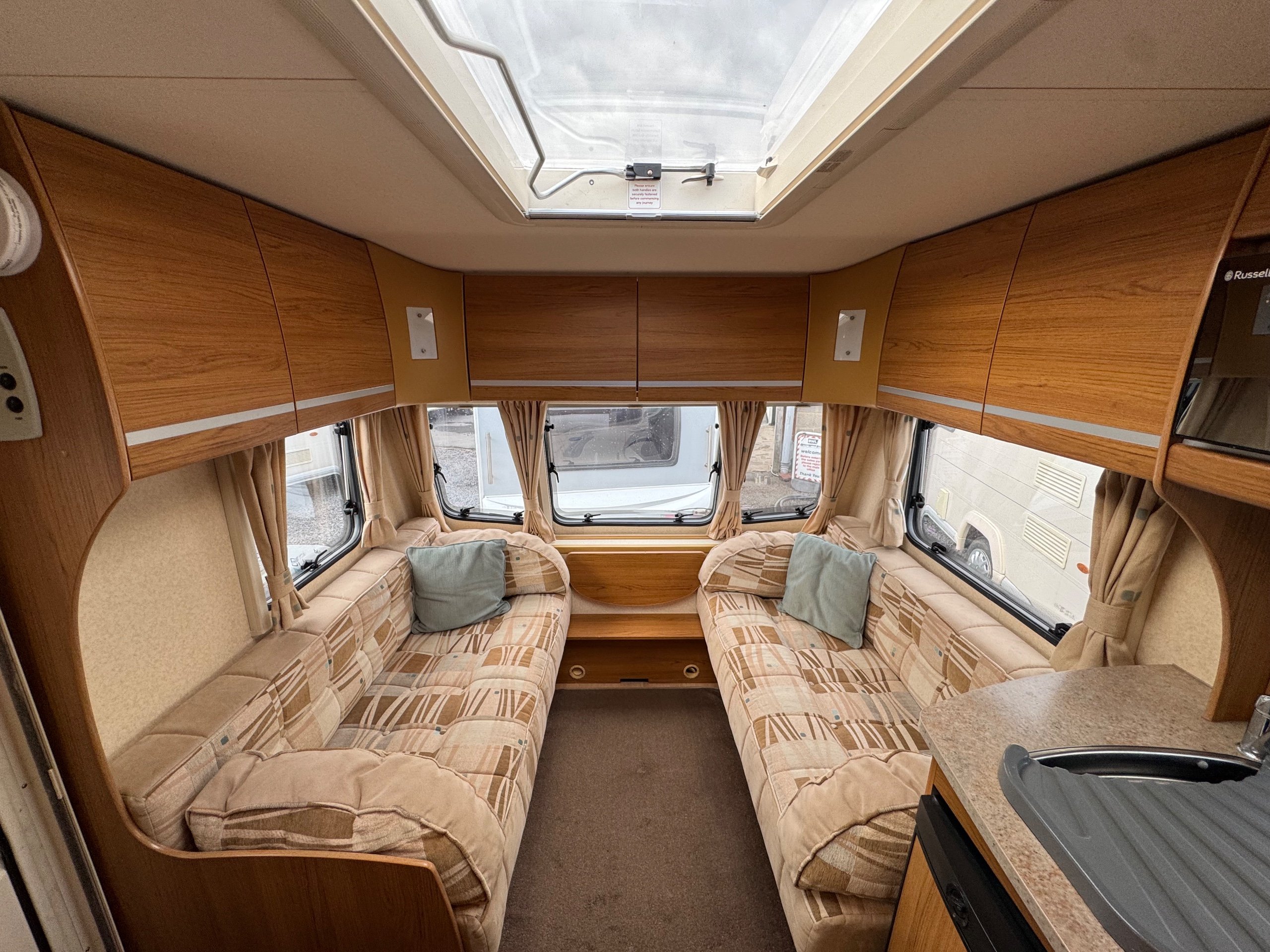 The 2009 Bailey Pageant Bordeaux is a stylish 4 berth caravan that offers both comfort and practicality. With its spacious interior and thoughtful layout, this caravan is perfect for family holidays or couples looking for a cozy getaway. The well-equipped kitchen includes a fridge, oven, and hob, making it easy to prepare meals on the go. The comfortable lounge area is perfect for relaxing, with plenty of seating and a dining table for enjoying meals together. The caravan also features a spacious bathroom with a toilet and shower. With its modern design and high-quality finish, the Bailey Pageant Bordeaux is a true home away from home on wheels. Whether you're exploring the countryside or relaxing by the coast, this caravan is the perfect companion for all your adventures.