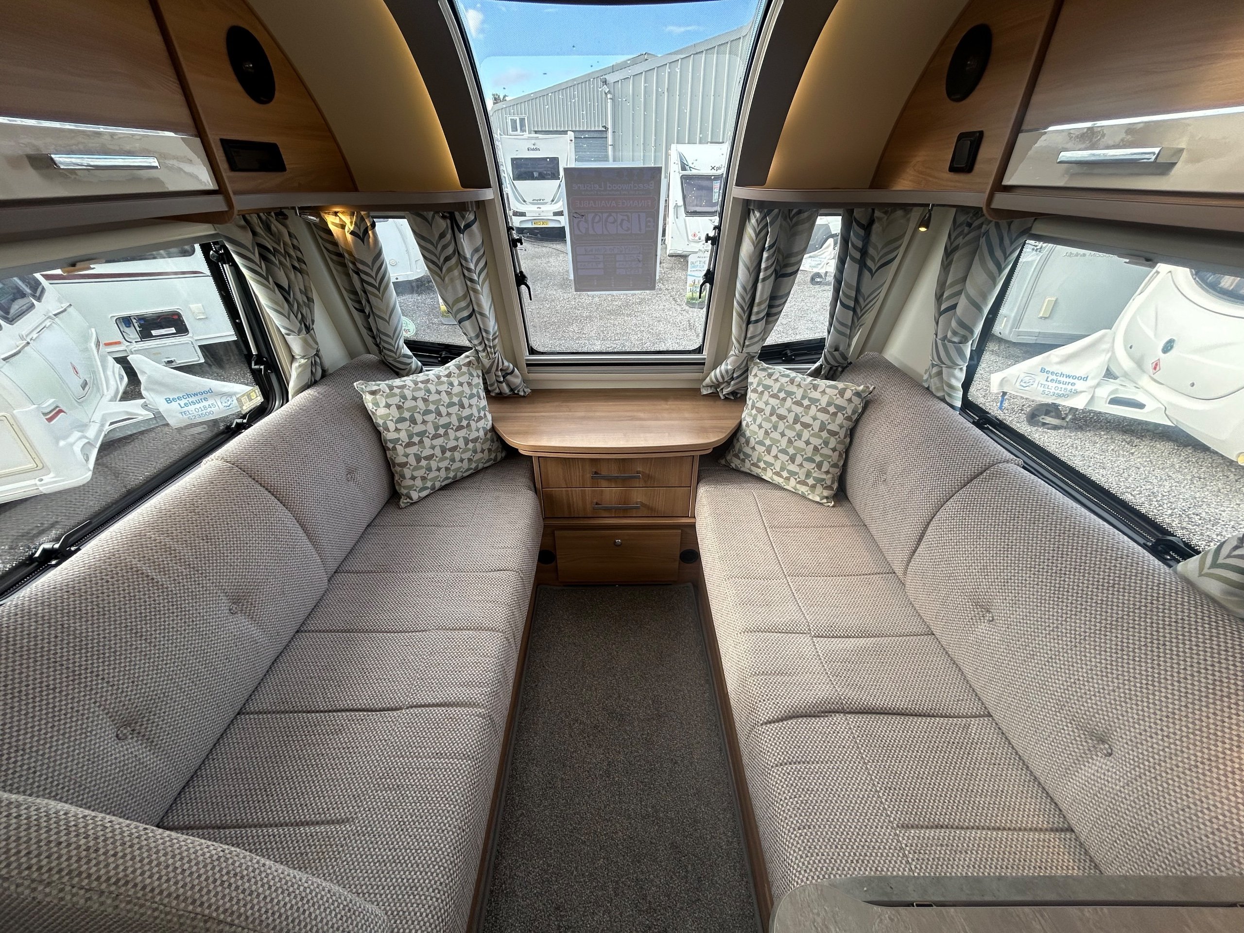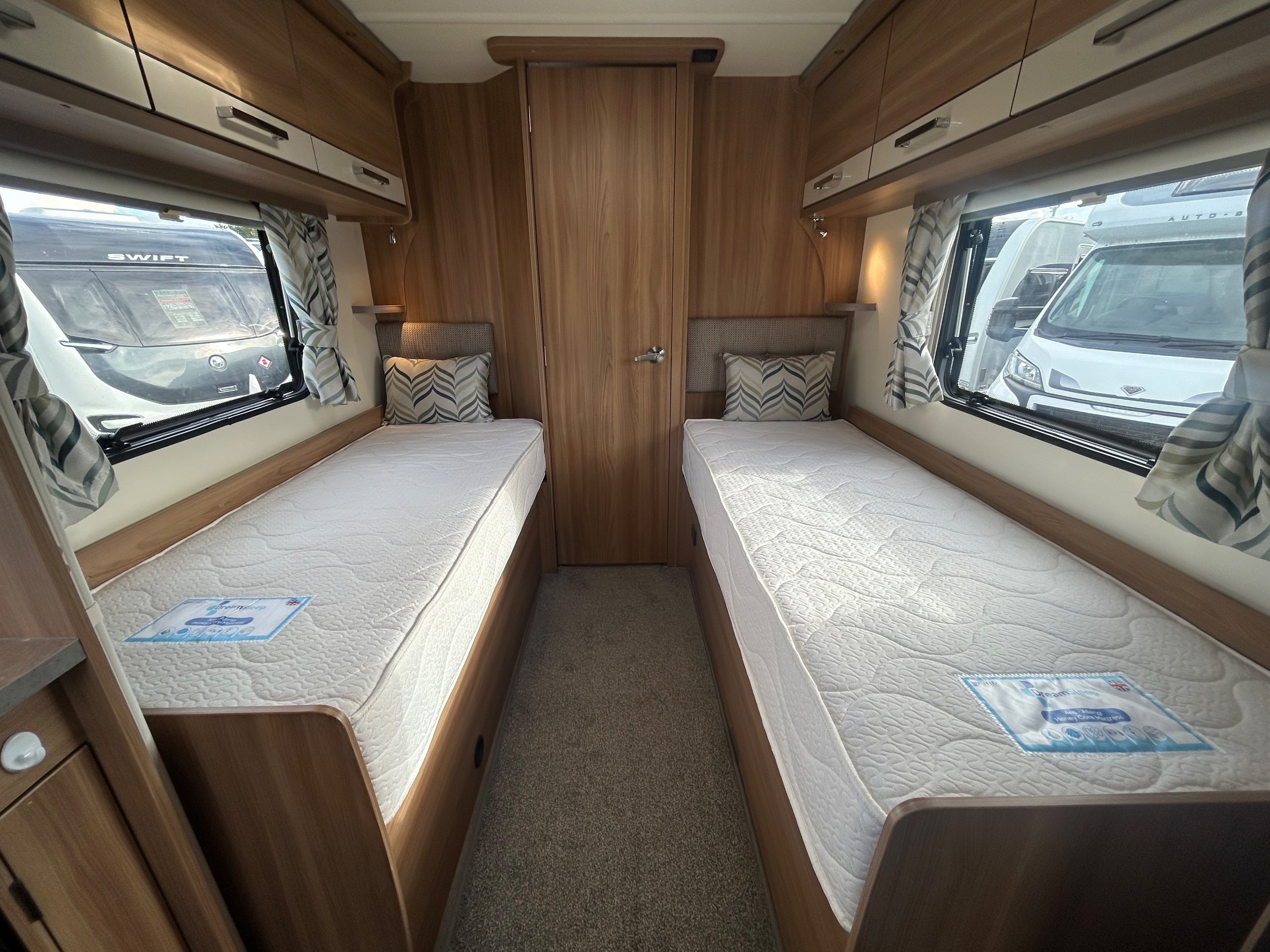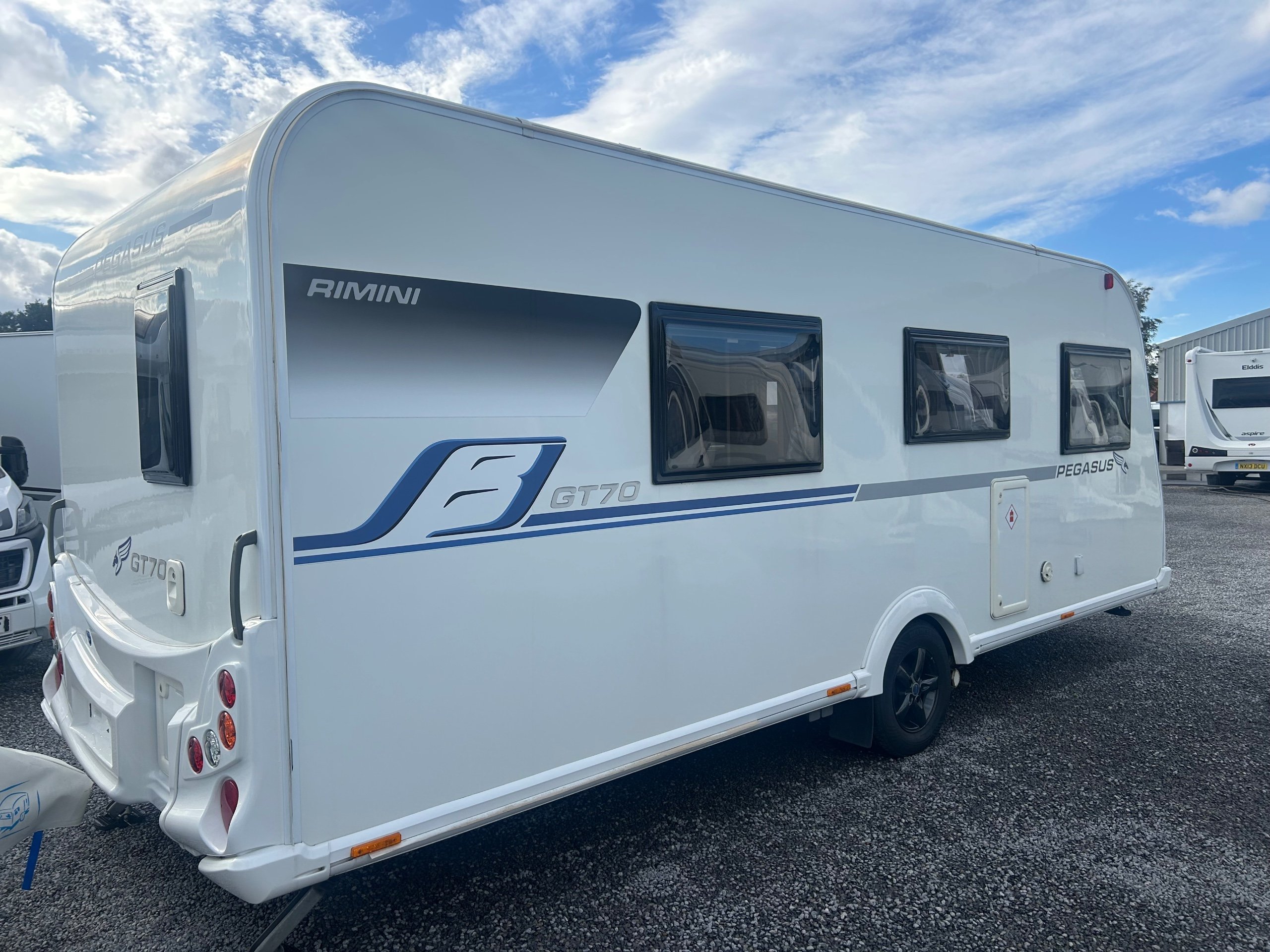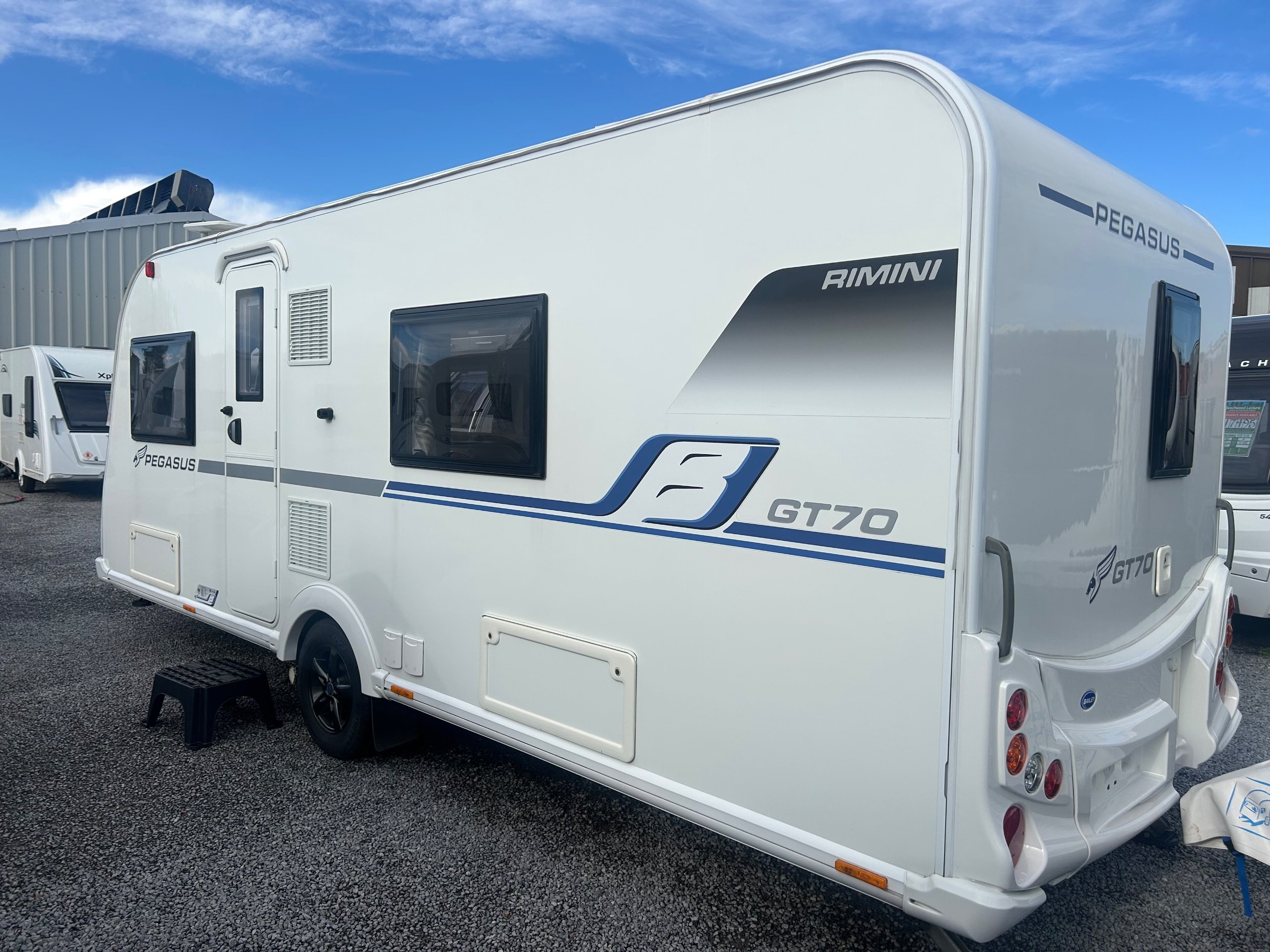 2018 BAILEY PEGASUS GT 70 RIMINI / 4 BERTH - complete end dressing room including separate shower enclosure, vanity unit, wardrobe and toilet - 2 x fixed single beds - central offside kitchen - central nearside dresser - 2 x singles / double at the front - a beautiful example of this tourer that represents great value for money as well as good specification - it benefits from being comparatively lightweight as well as being in great condition both inside and out