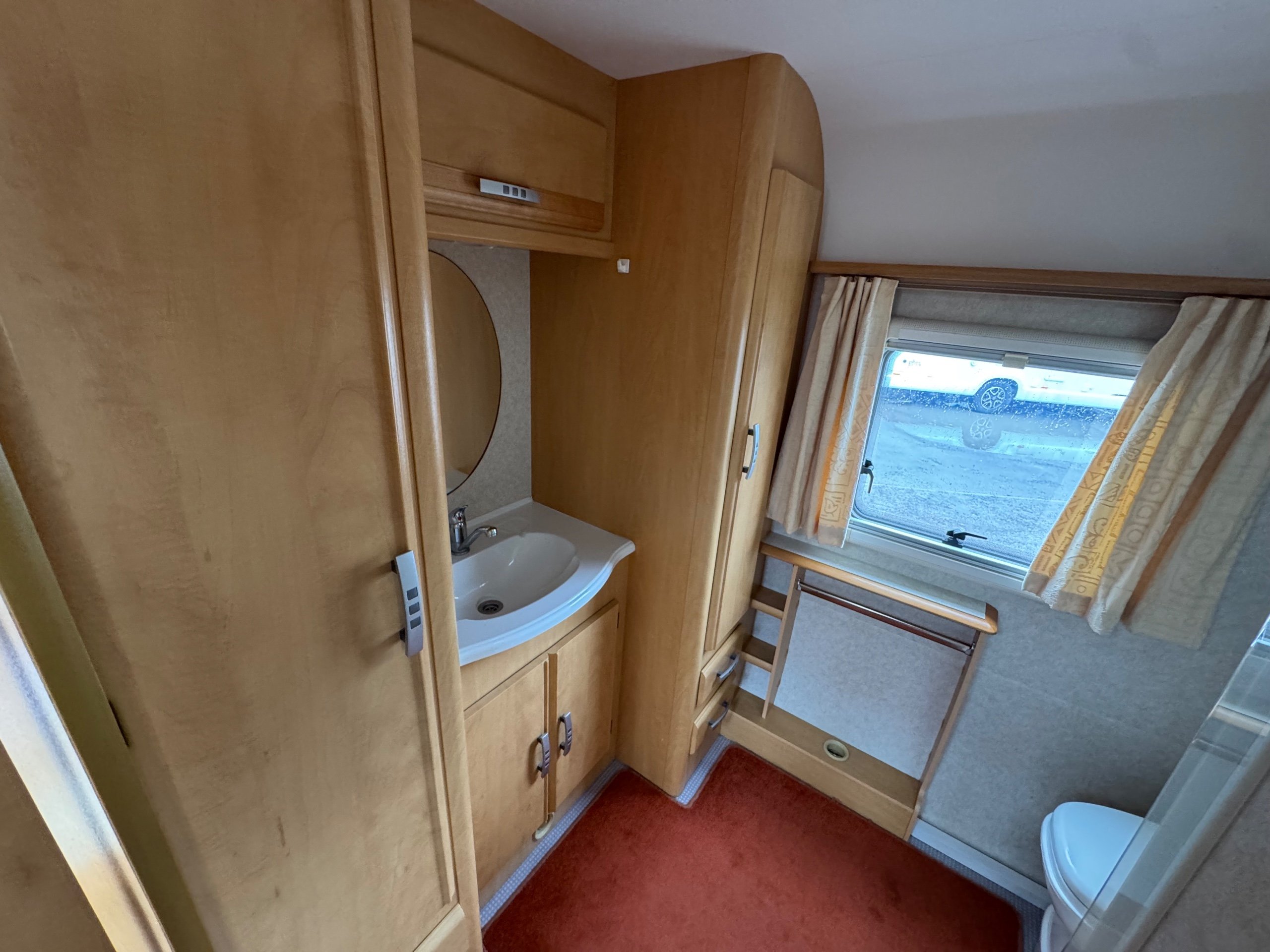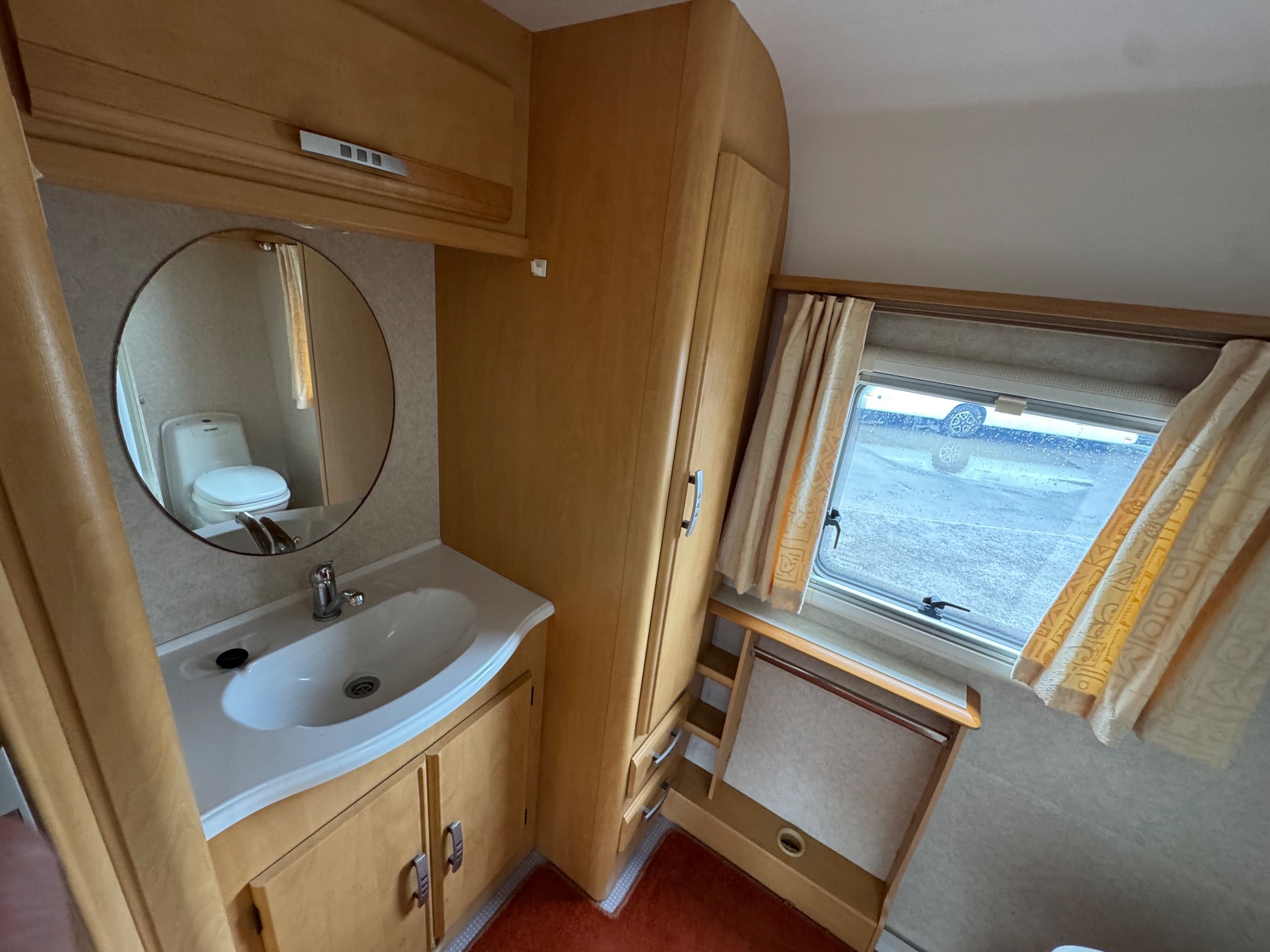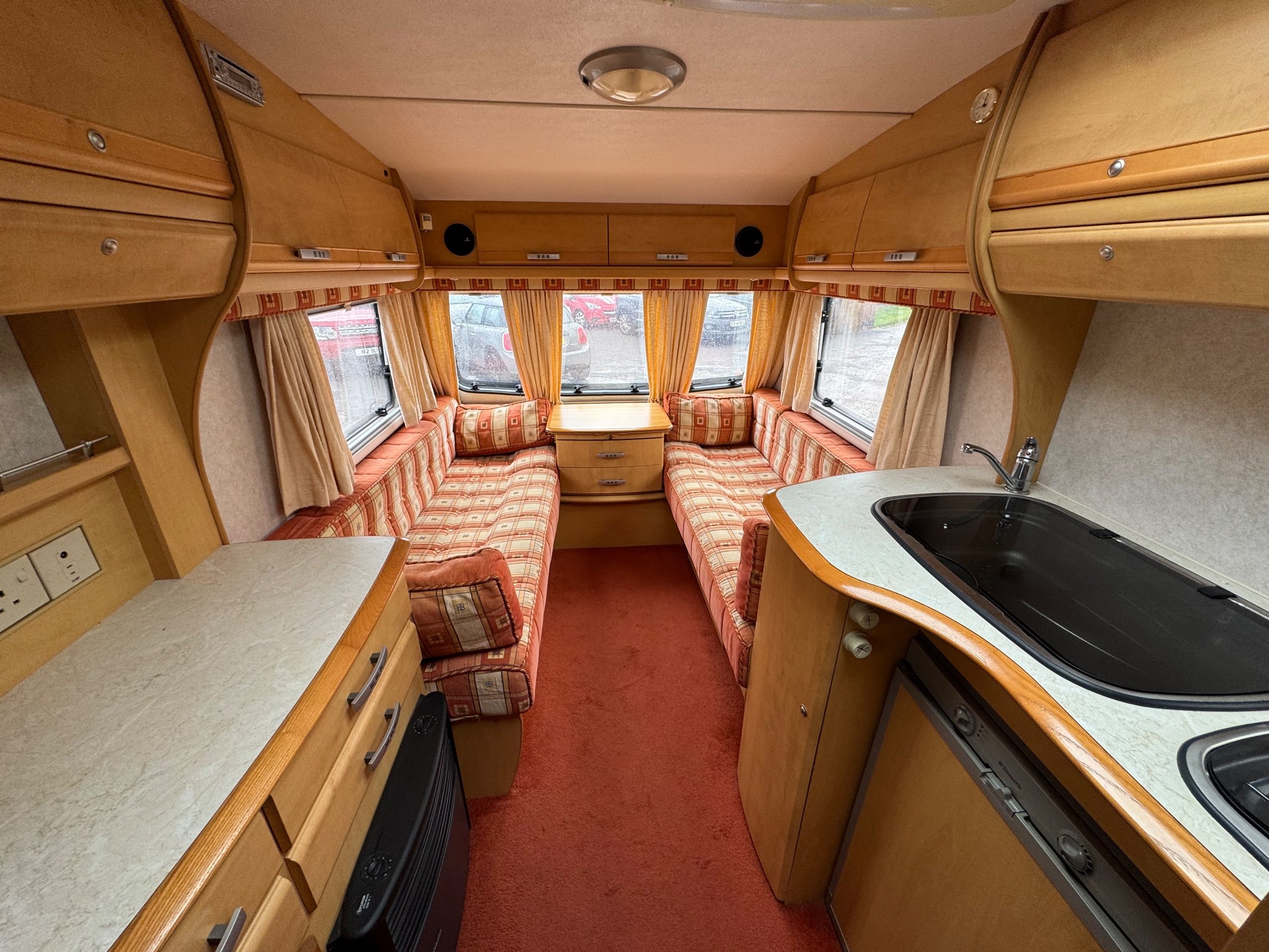 For sale is a 2004 2 berth Bailey Senator Series 5 Vermont caravan. This compact and lightweight caravan is perfect for a couple looking to explore the great outdoors. With a comfortable and practical layout, the Vermont offers a cozy living space with all the necessary amenities. The well-equipped kitchen includes a fridge, oven, and sink, while the bathroom features a shower, sink, and cassette toilet. The front lounge area can be converted into a large double bed, providing a comfortable sleeping space. The Vermont also comes with plenty of storage space and modern appliances, making it a great choice for those seeking a comfortable and convenient holiday home on wheels. Don't miss the opportunity to own this high-quality and well-maintained caravan for your next adventure.