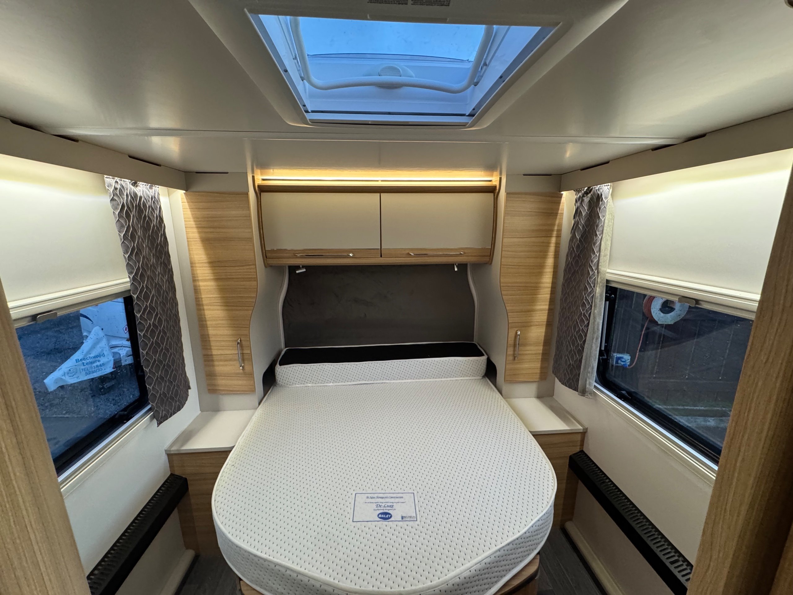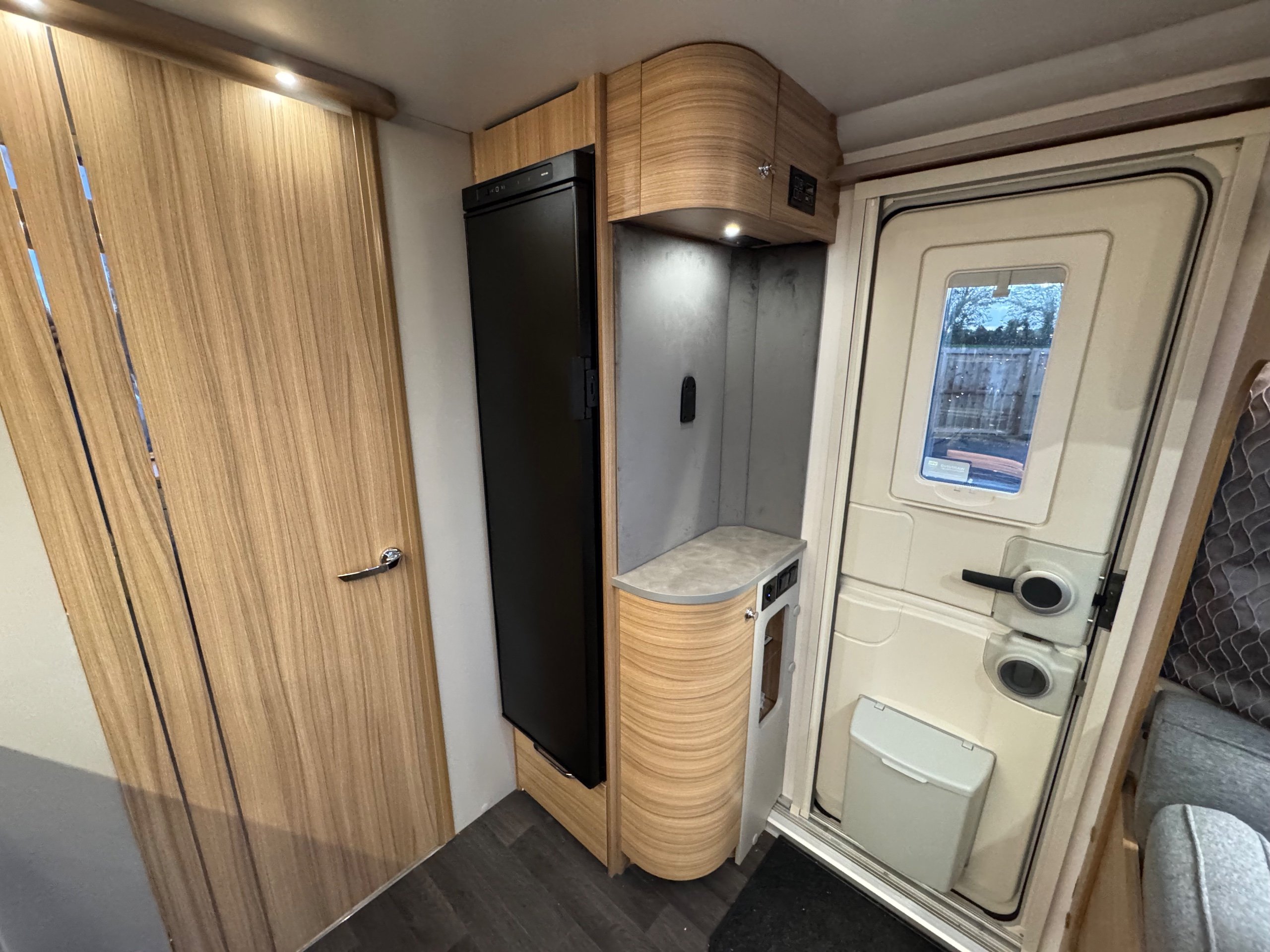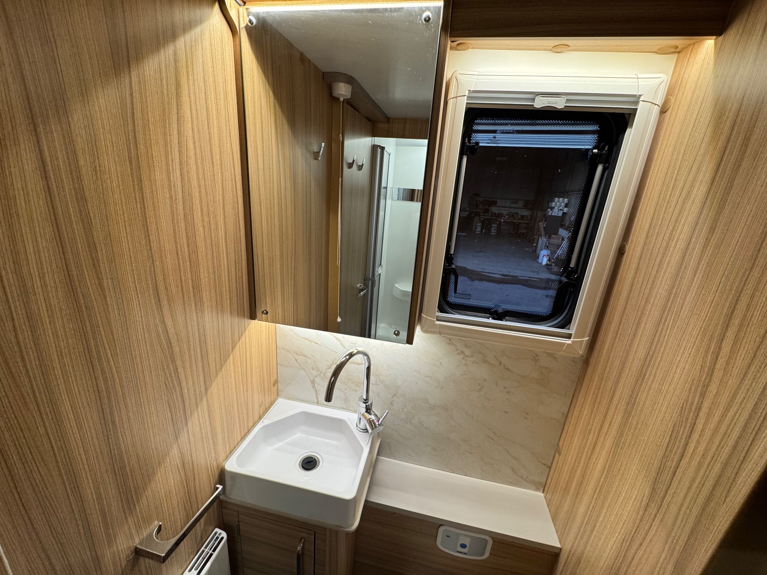 Full rear bedroom featuring a central forward facing island bed with adjoining wardrobes - central dressing room incorporating individual shower cubicle, toilet - offside kitchen incorporating a tower fridge - 2 x singles / double /lounge area at the front - this ever popular model blends cutting edge design with unparalleled comfort and practical innovation- HARDLY EVER USED and boasting an exceptional specification.