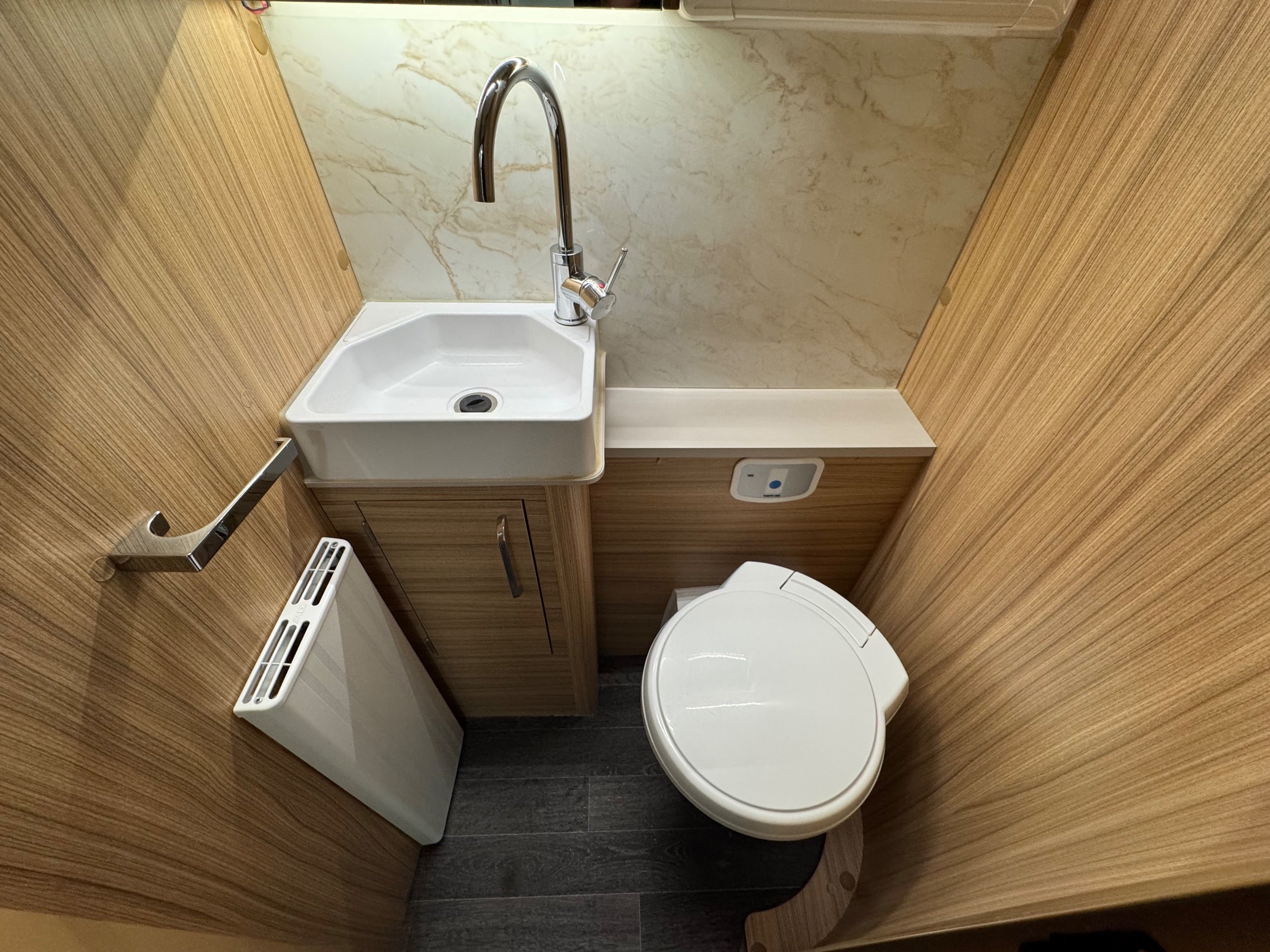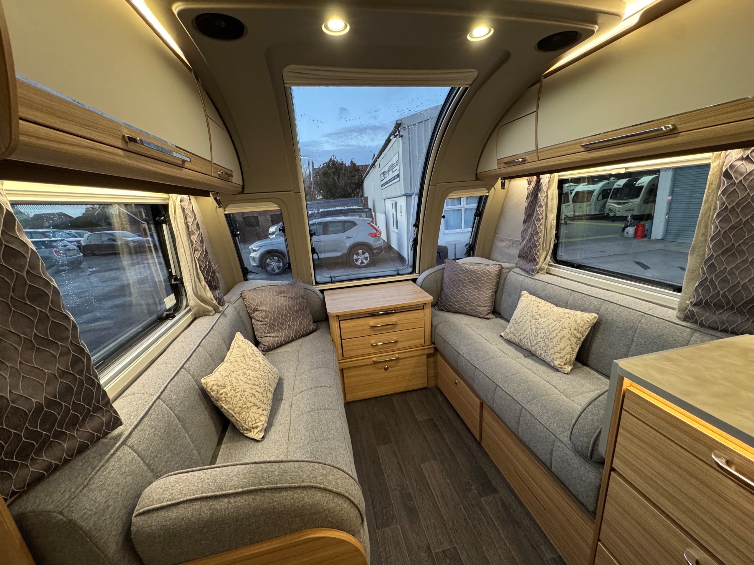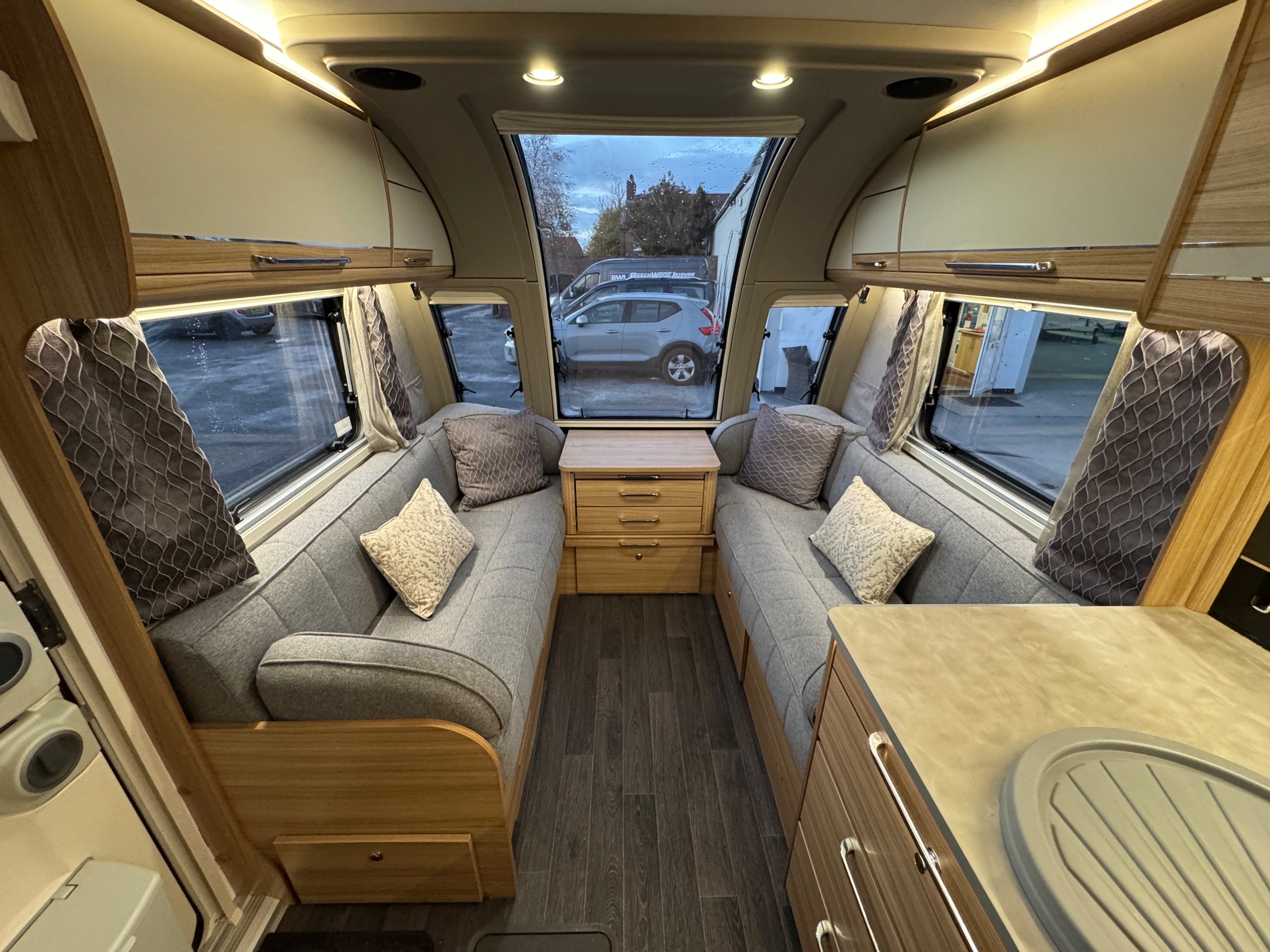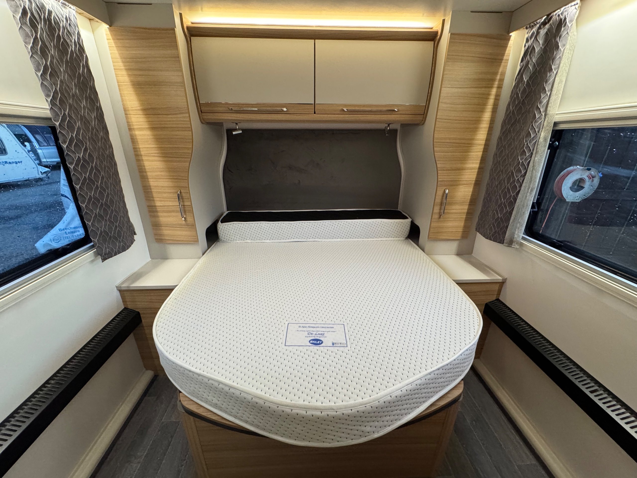 Full rear bedroom featuring a central forward facing island bed with adjoining wardrobes - central dressing room incorporating individual shower cubicle, toilet - offside kitchen incorporating a tower fridge - 2 x singles / double /lounge area at the front - this ever popular model blends cutting edge design with unparalleled comfort and practical innovation- HARDLY EVER USED and boasting an exceptional specification.