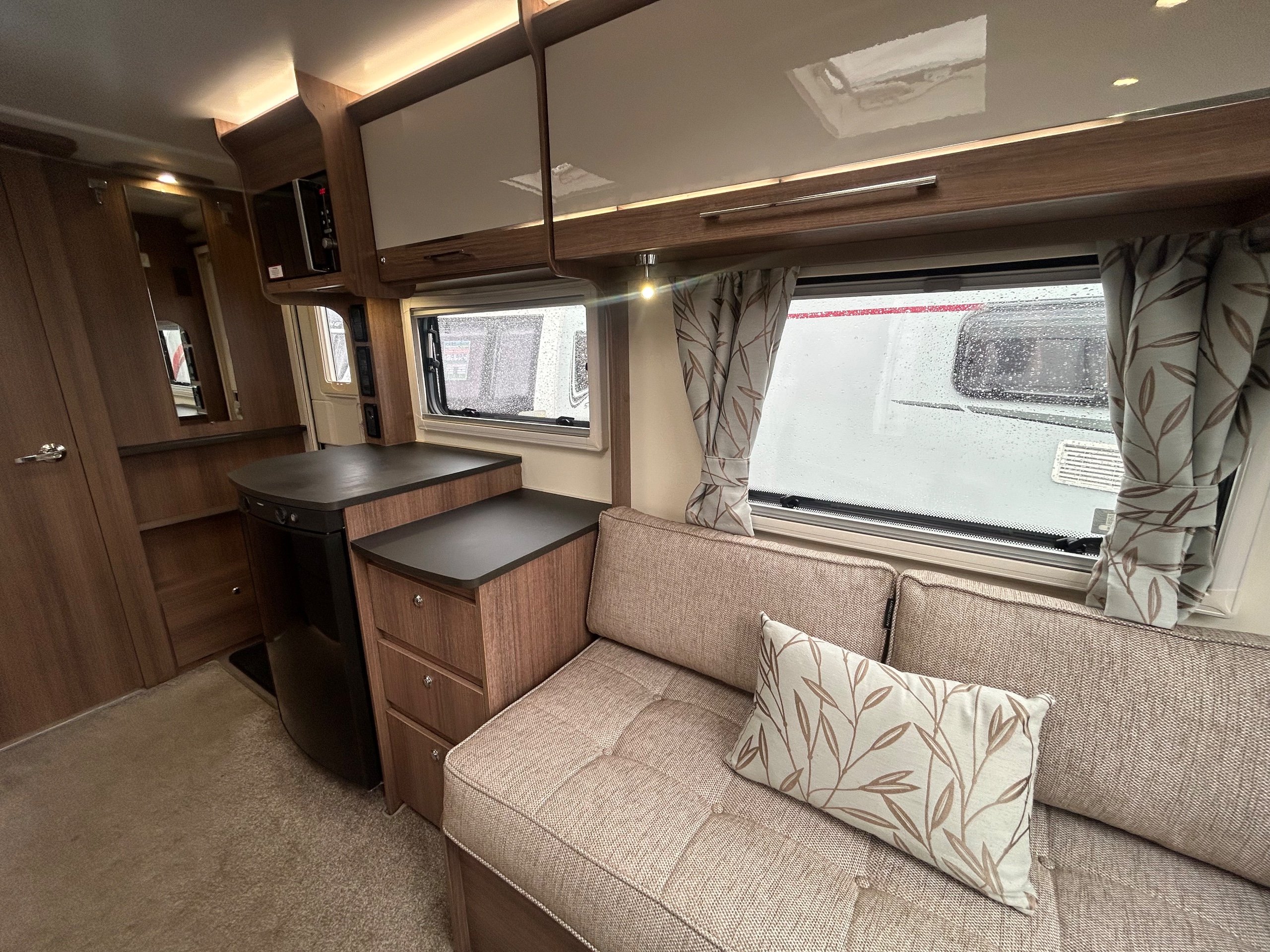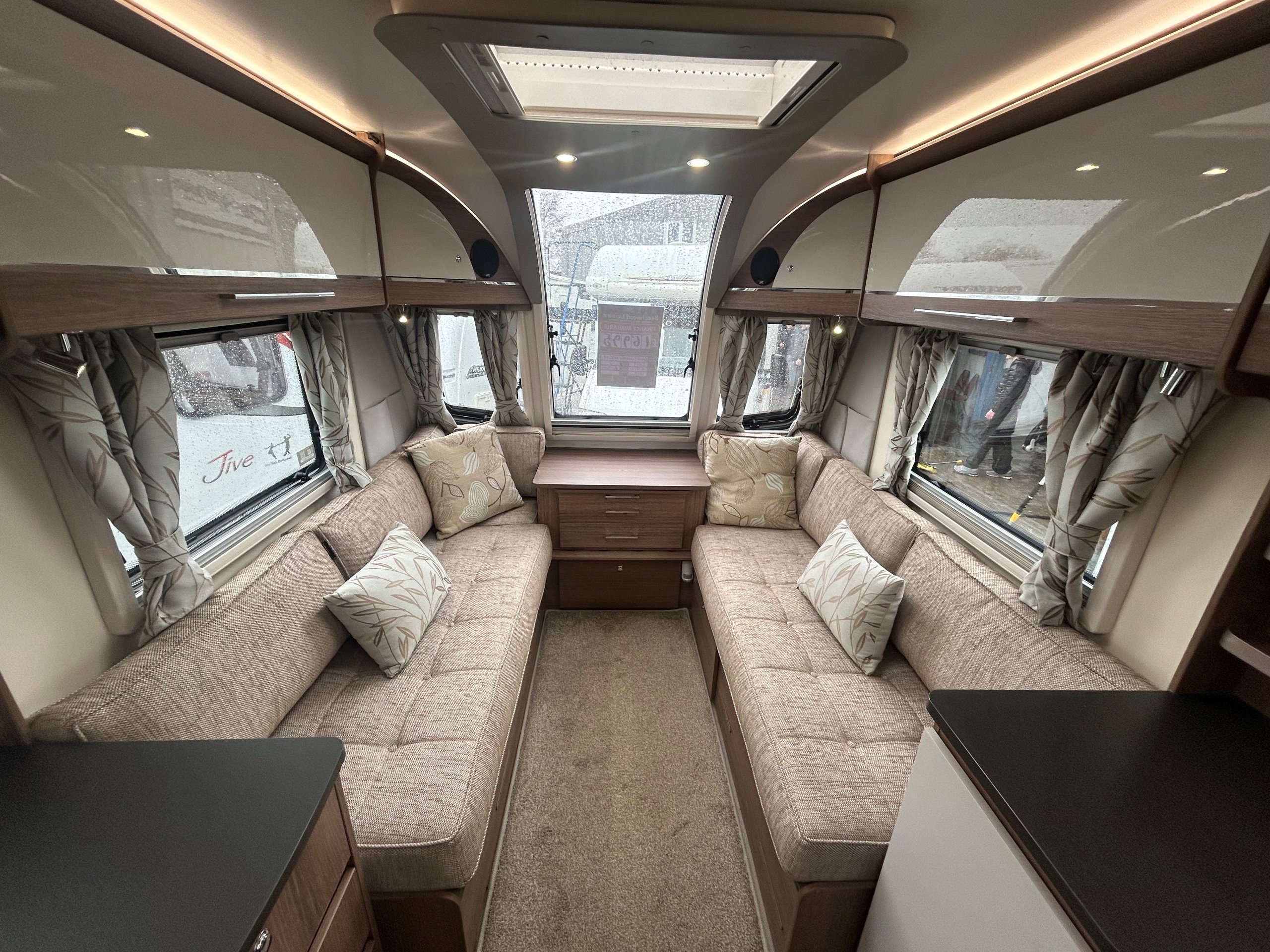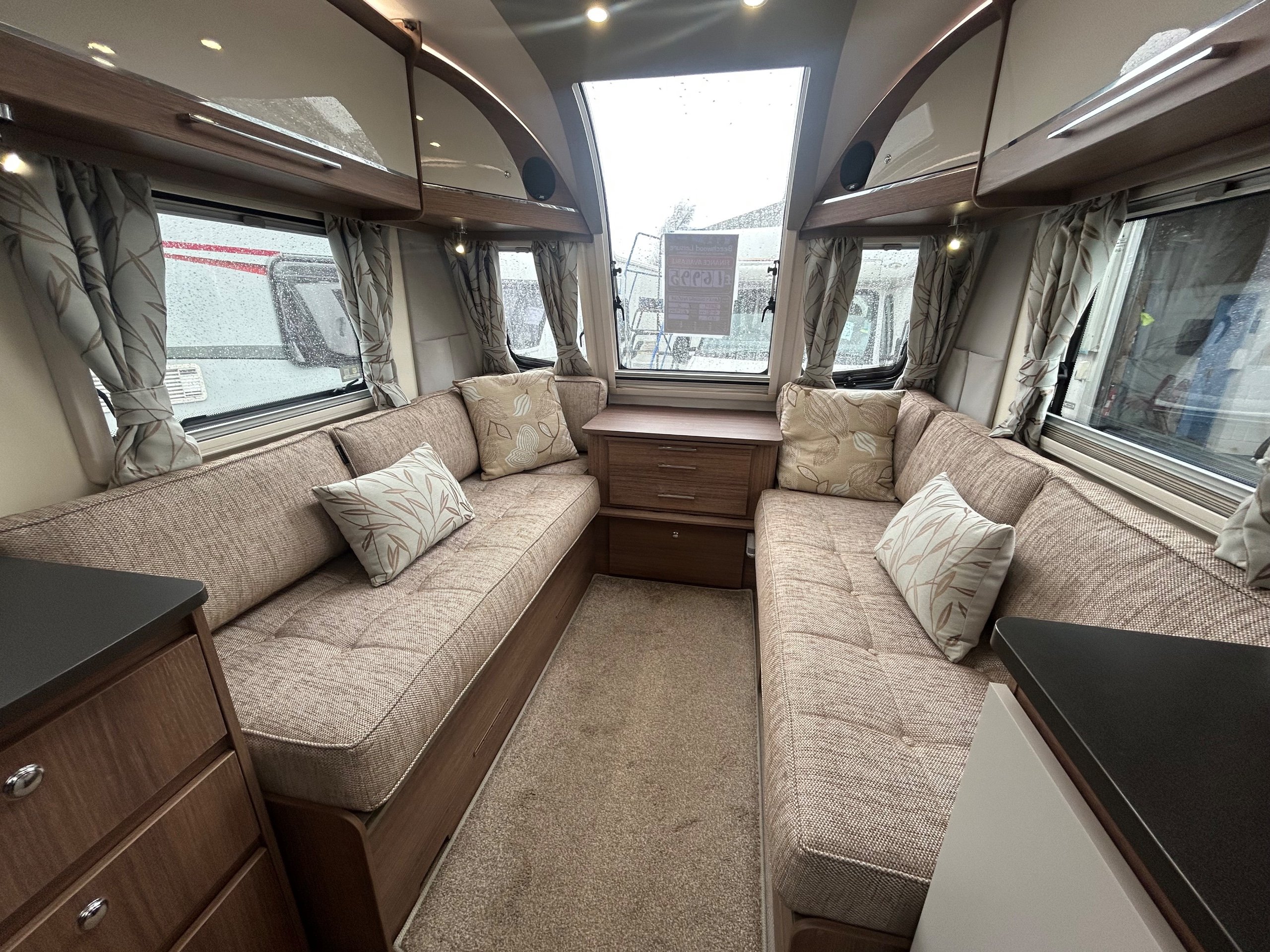 Full rear dressing room incorporating individual shower cubicle, toilet , vanity unit and wardrobes - central offside kitchen - nearside central dresser - 2 x 6' singles / double at the front