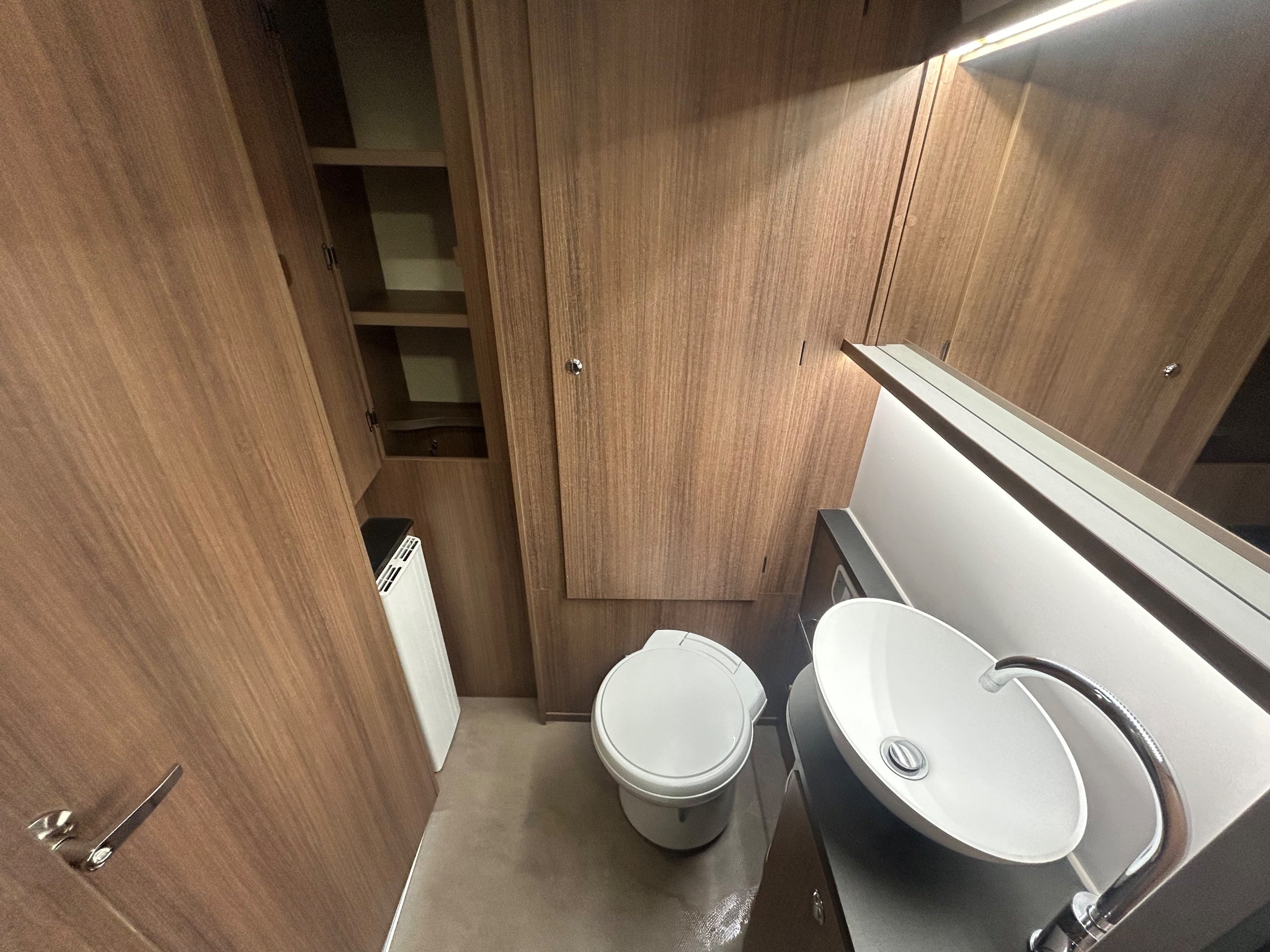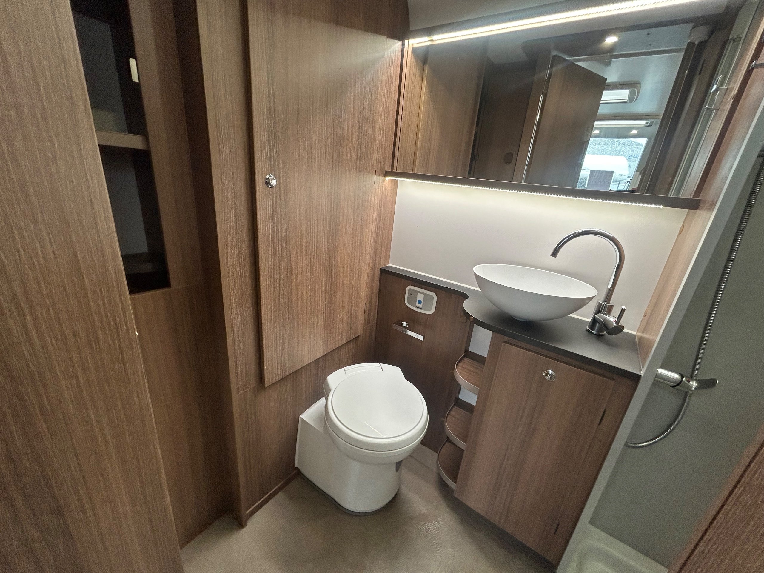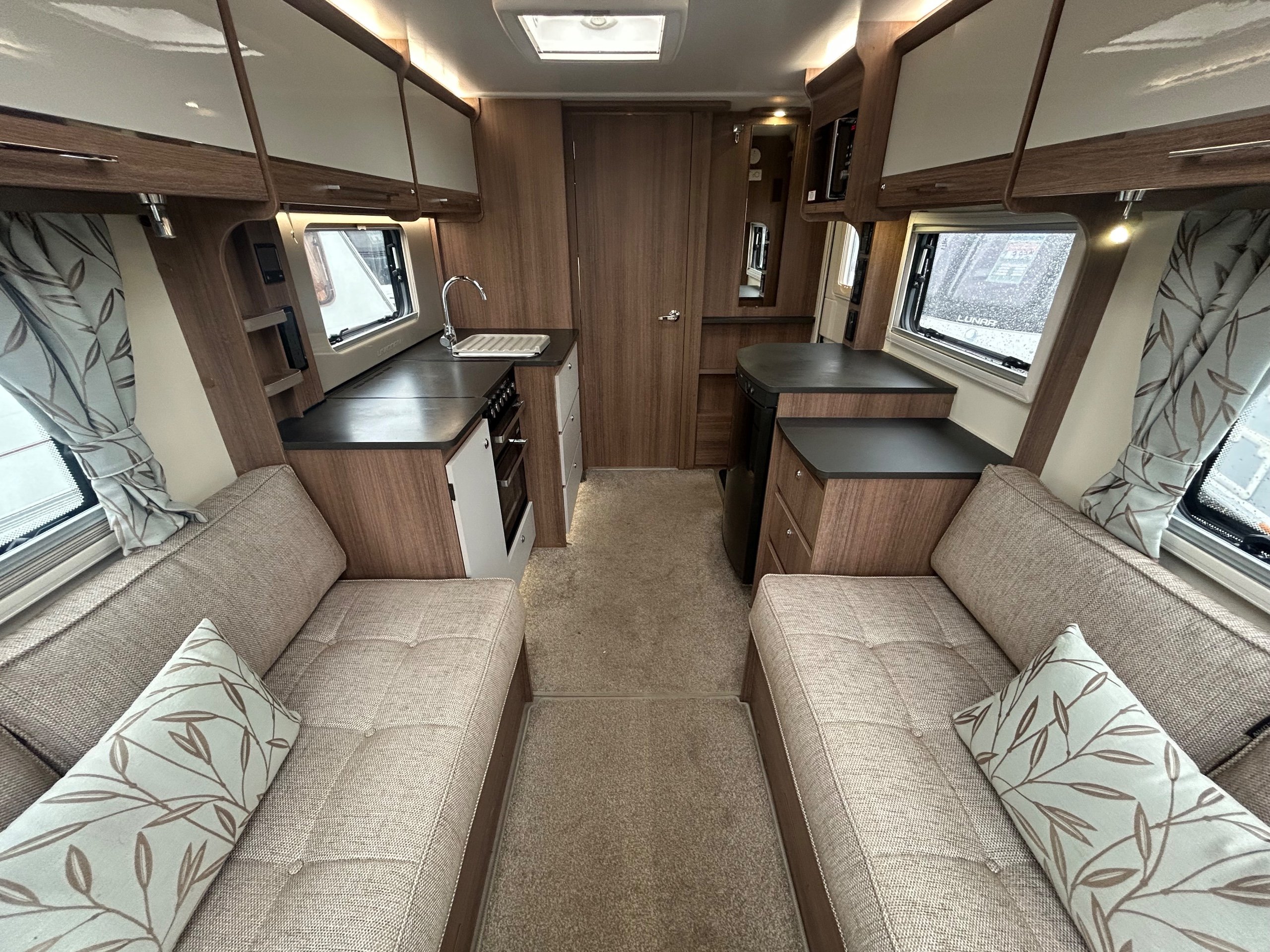 Full rear dressing room incorporating individual shower cubicle, toilet , vanity unit and wardrobes - central offside kitchen - nearside central dresser - 2 x 6' singles / double at the front