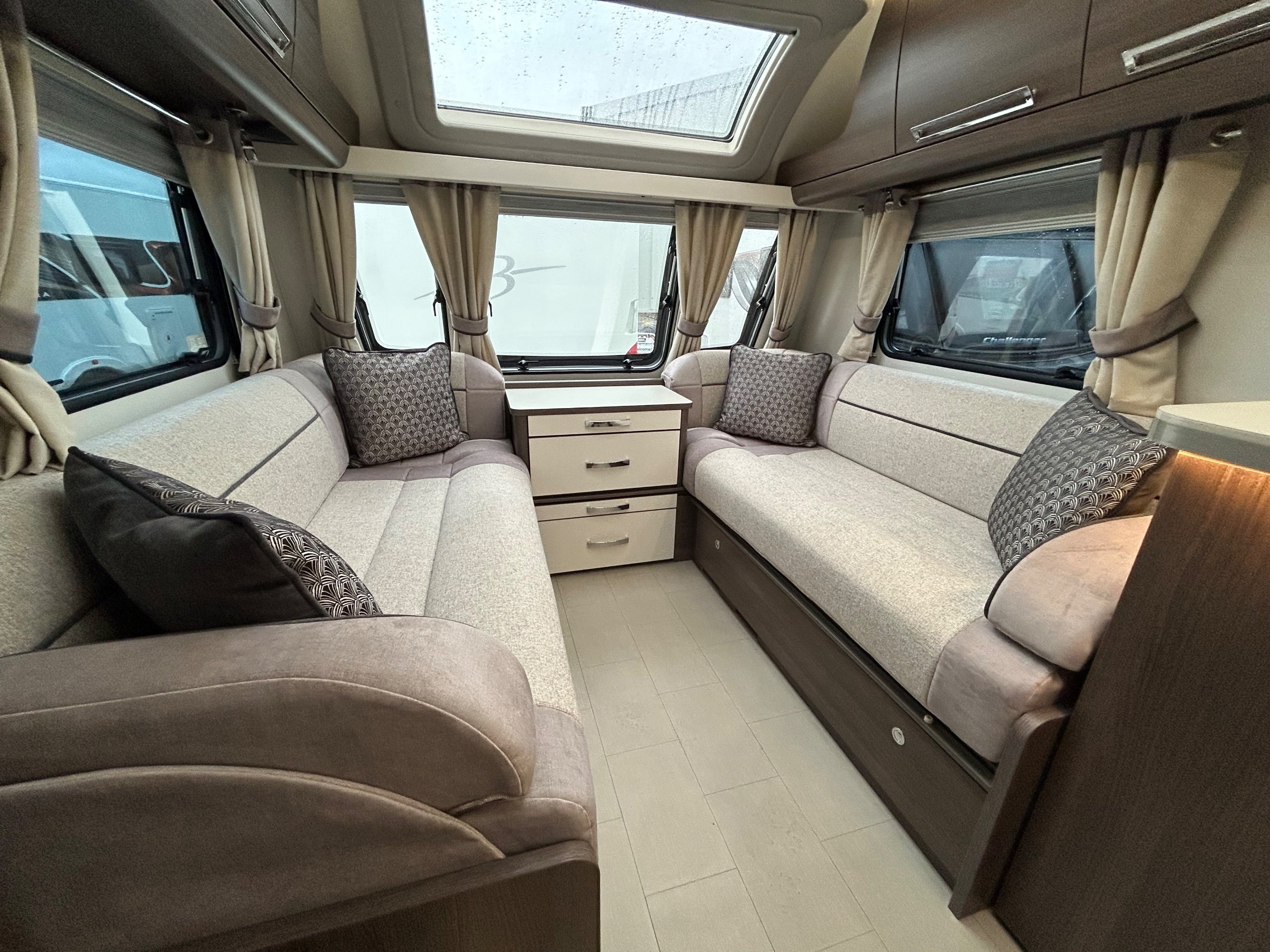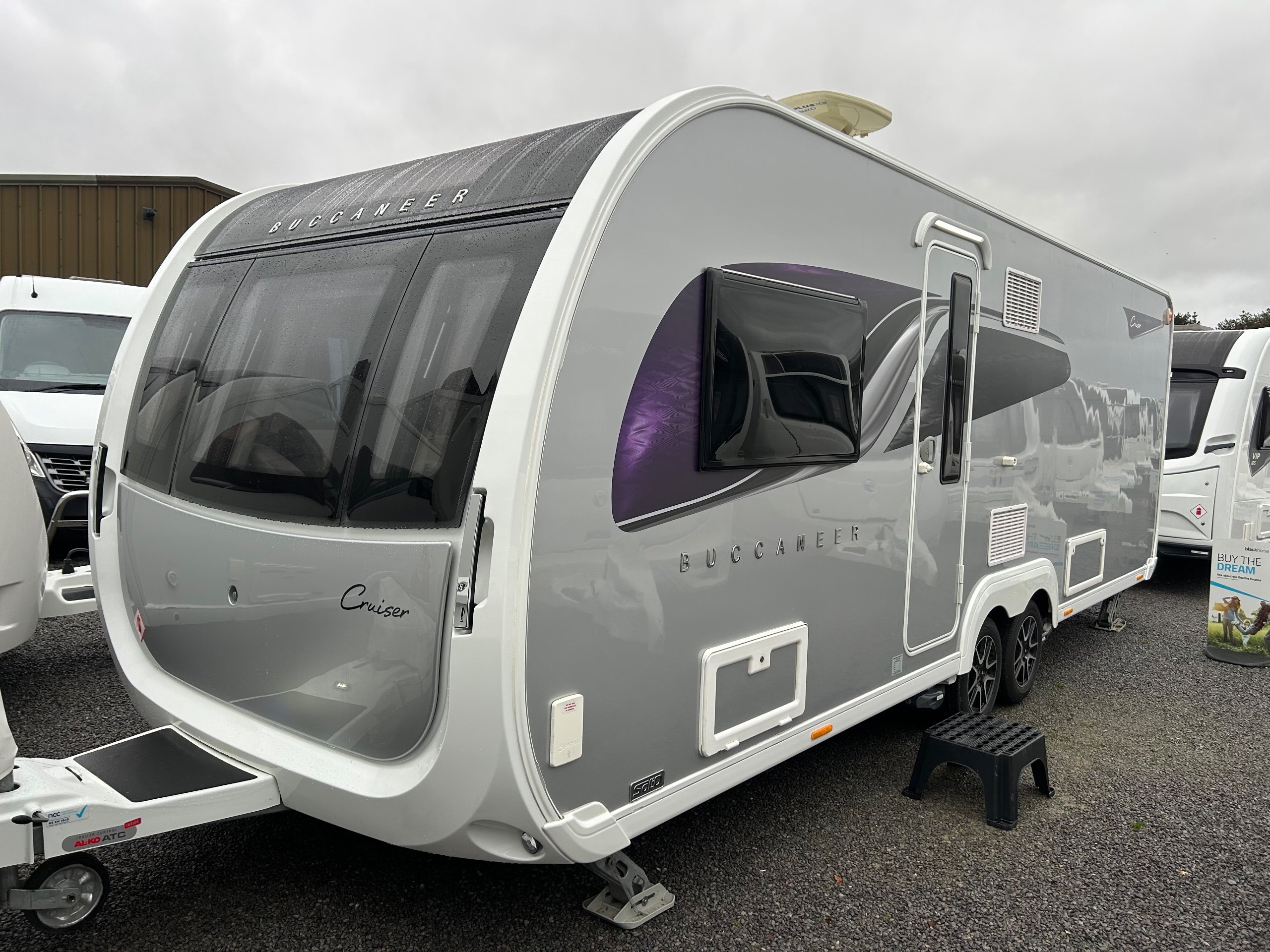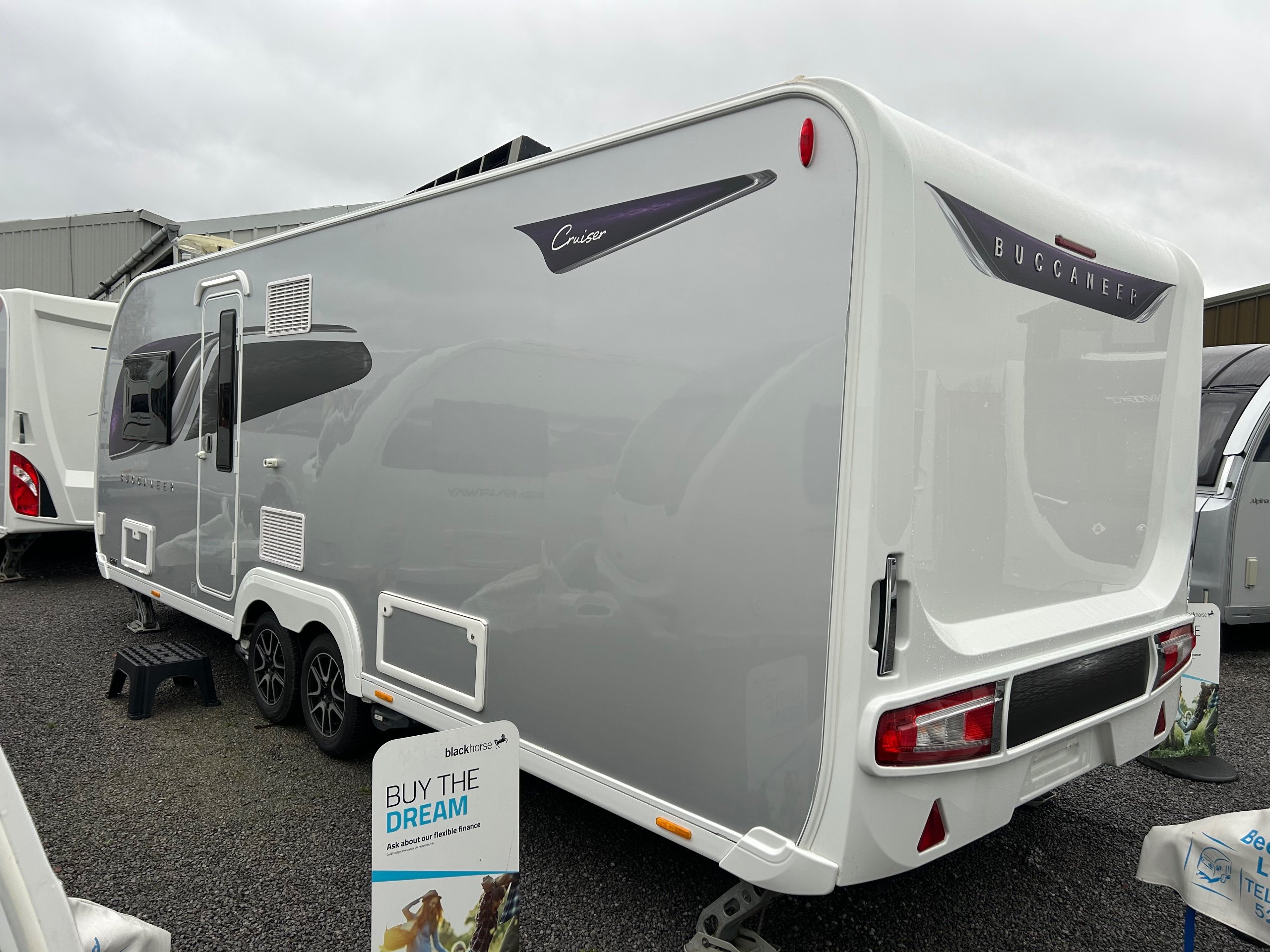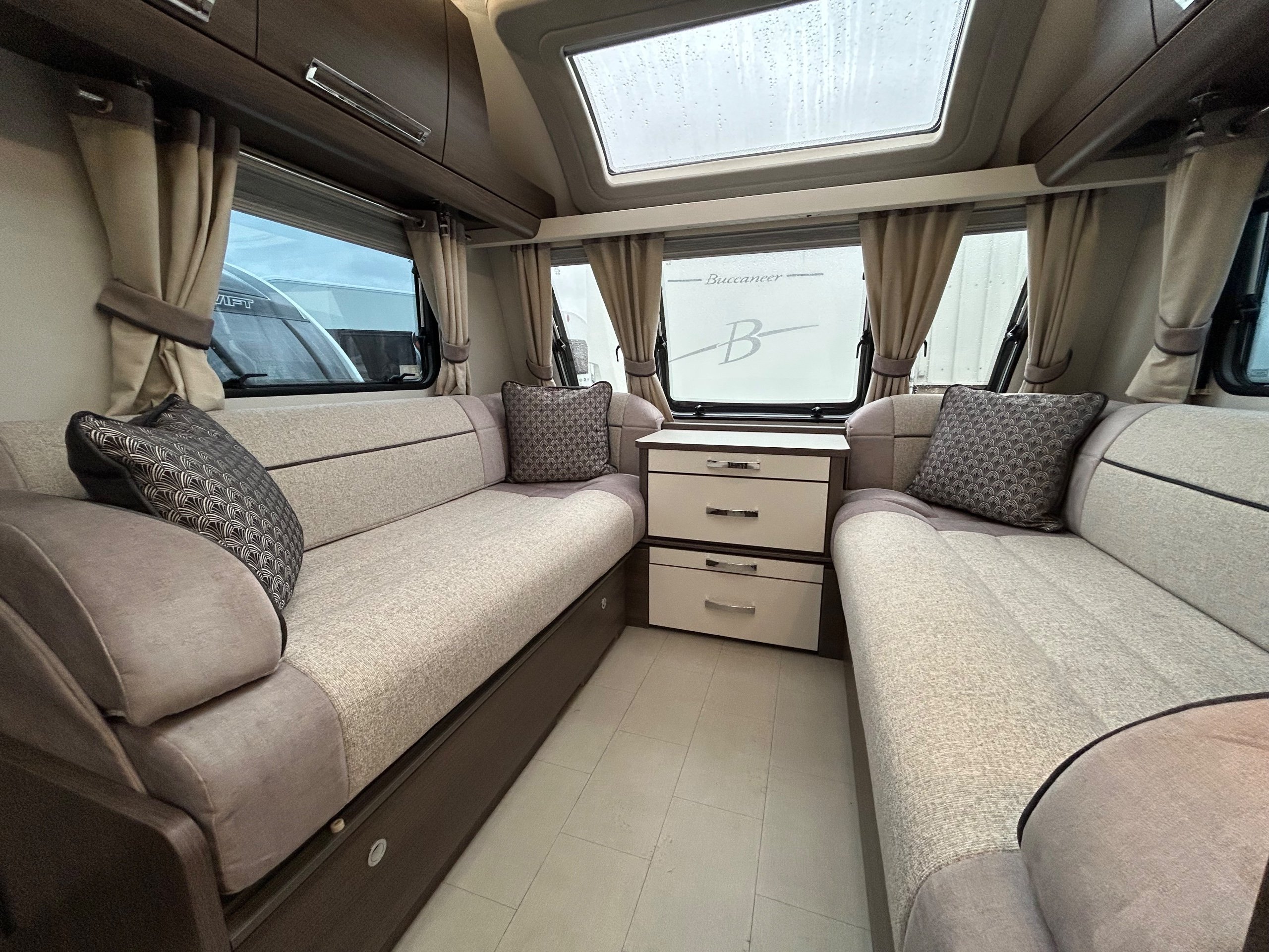 2022 BUCCANEER CRUISER / 4 BERTH - full rear dressing room with separate shower cubicle, toilet and vanity unit - nearside fixed island bed with adjoining wardrobes - central offside kitchen boasting a tower fridge - 2 x 6' singles / double at the front - a luxurious and spacious 4-berth caravan perfect for those seeking a comfortable and stylish travel experience. IMMACULATE CONDITION THROUGHOUT - This top-of-the-line caravan boasts a modern and sleek design, complete with all the amenities you need for a relaxing getaway. The interior features a well-equipped kitchen, generous living space, and a cozy sleeping area, all designed with the utmost attention to detail. The Buccaneer Cruiser offers a smooth and effortless towing experience, thanks to its advanced construction and cutting-edge technology. With its premium features and high-quality craftsmanship, this caravan is sure to exceed your expectations and provide the perfect home away from home for all your adventures.