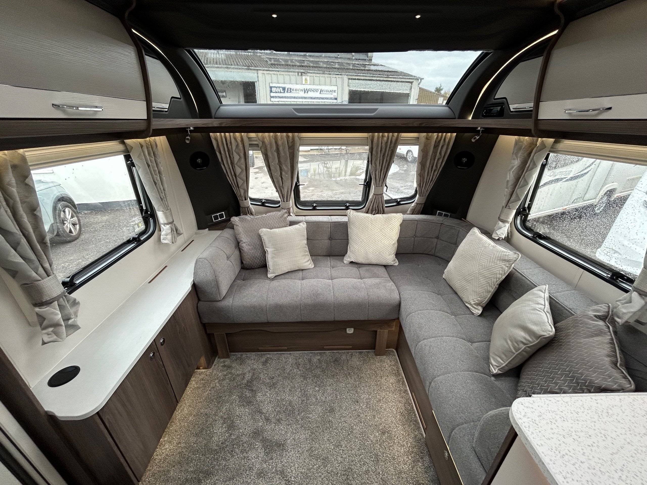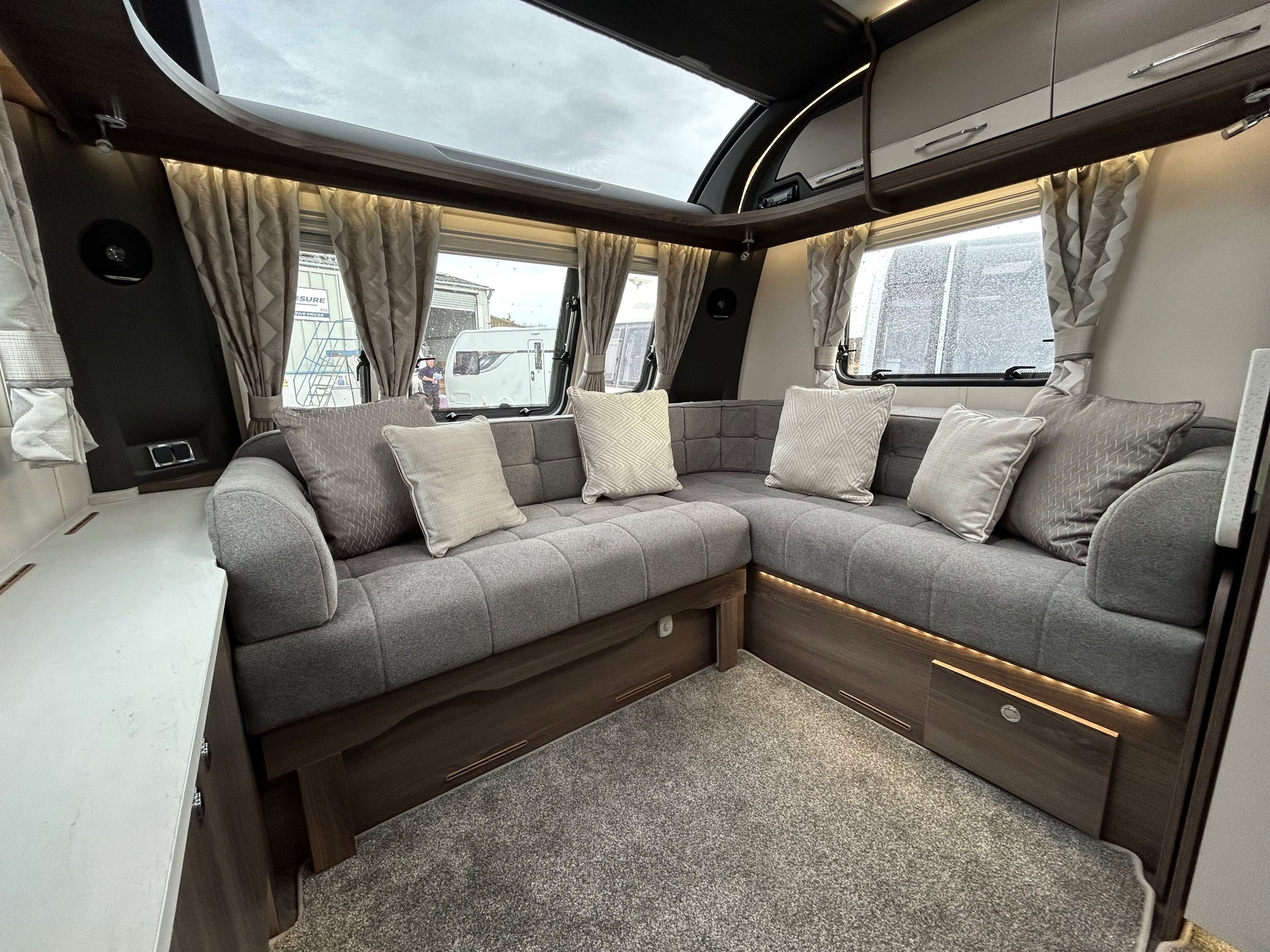 The seating / lounge / dining area at the front boasts higher and more supportive back rests with co-ordinating scatter cushions and sculpted armrests.