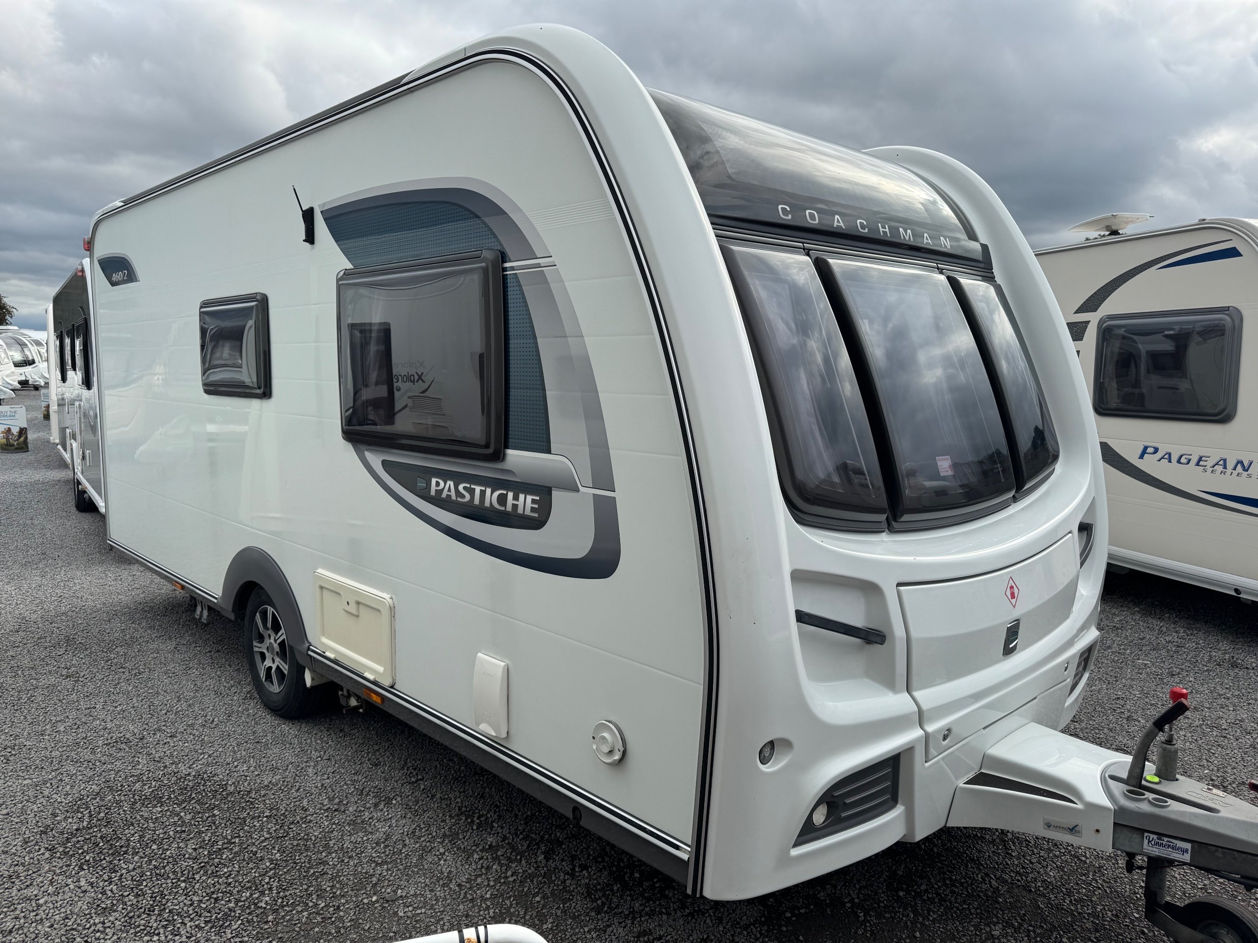 2012 COACHMAN PASTICHE 460 / 2 BERTH - complete end dressing room including separate shower cubicle, vanity unit, wardrobe and toilet - central nearside dresser - central offside kitchen - 2 x singles / double at the front - a great example of this fantastic tourer - benefitting from a very roomy feel as well as top specification - light and airy, cosy and comfy.
