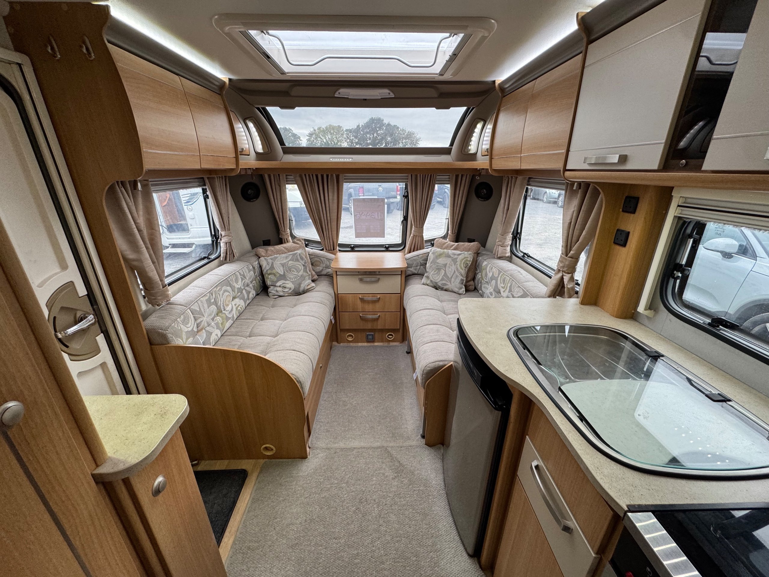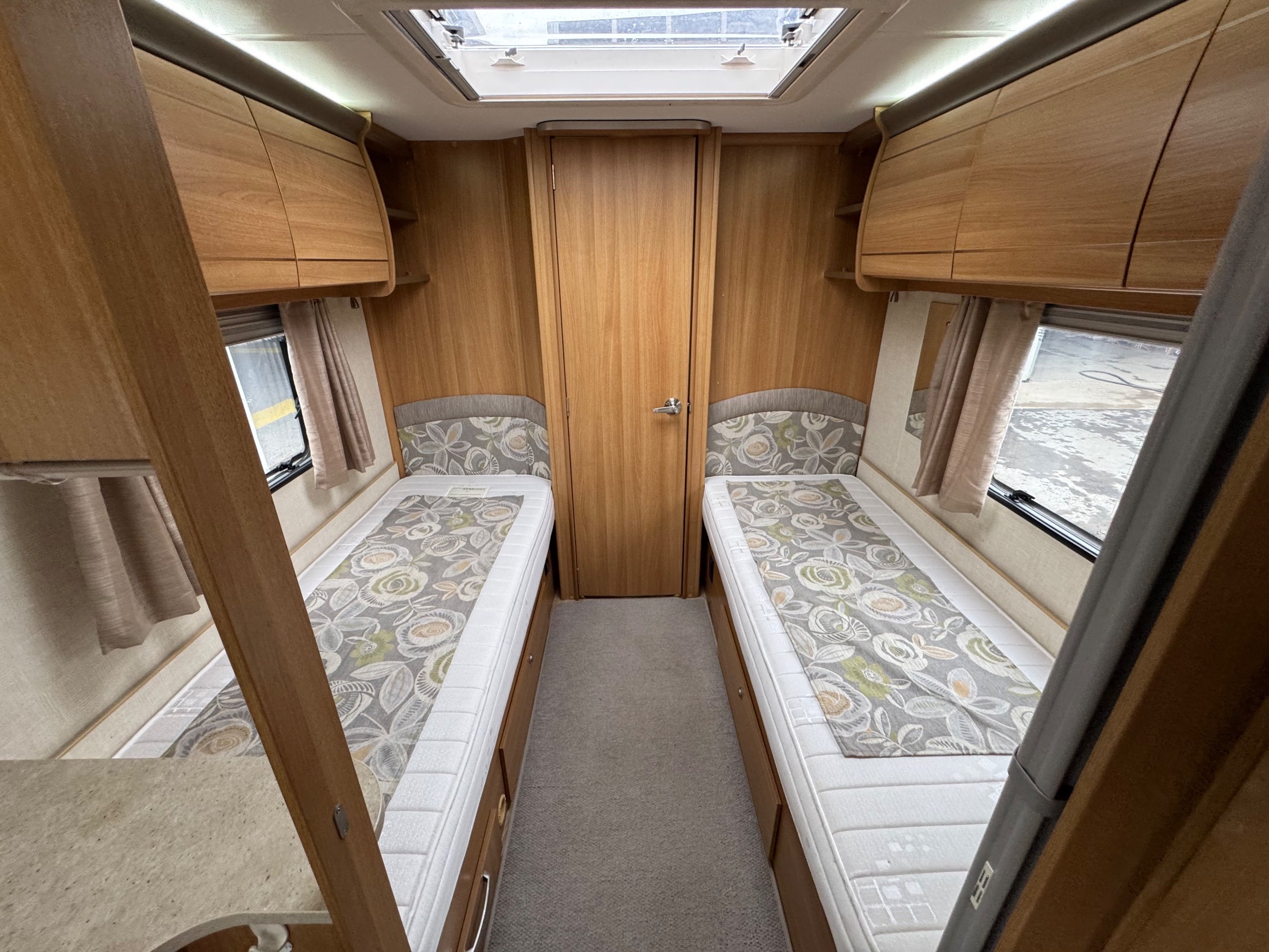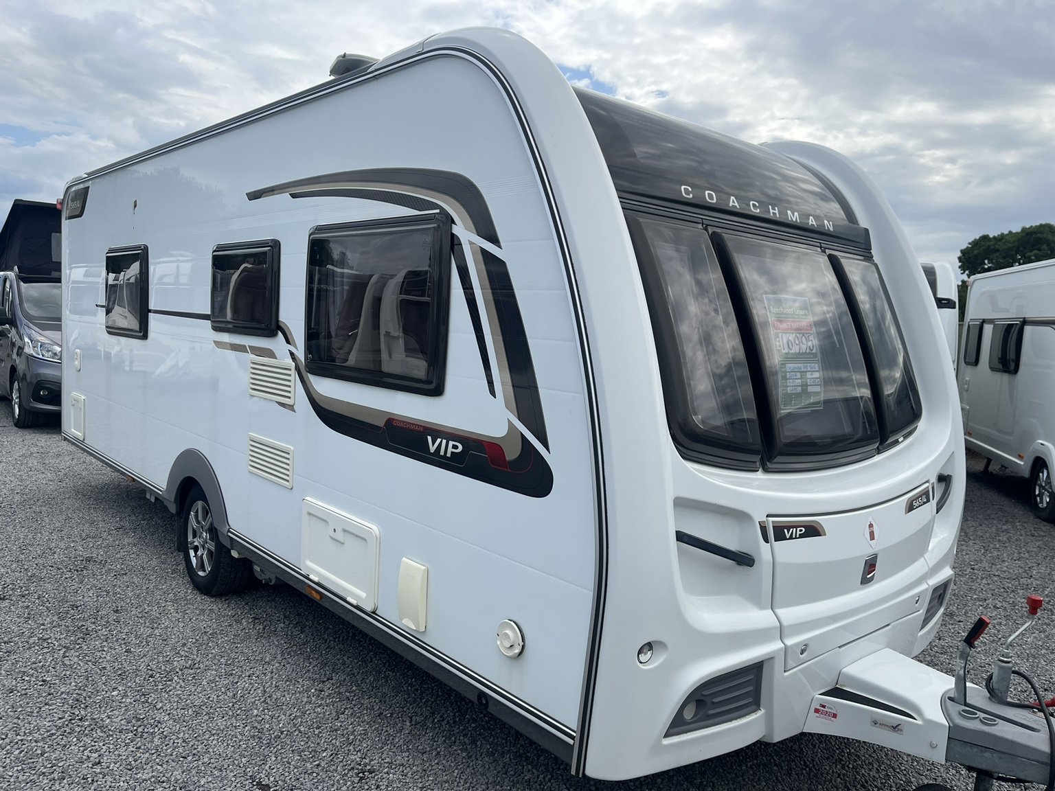 COACHMAN VIP 565 / 4 BERTH - complete end dressing room including separate shower enclosure, illuminated vanity unit, heated towel rail and toilet - 2 x fixed single beds to the rear - central nearside dresser - central offside kitchen - The VIP has stood the test of time as Coachman's flagship model and it is not hard to see why - very solid fixtures and fittings - a remarkably well kept tourer that is in fabulous condition for its age - viewing is highly recommended .