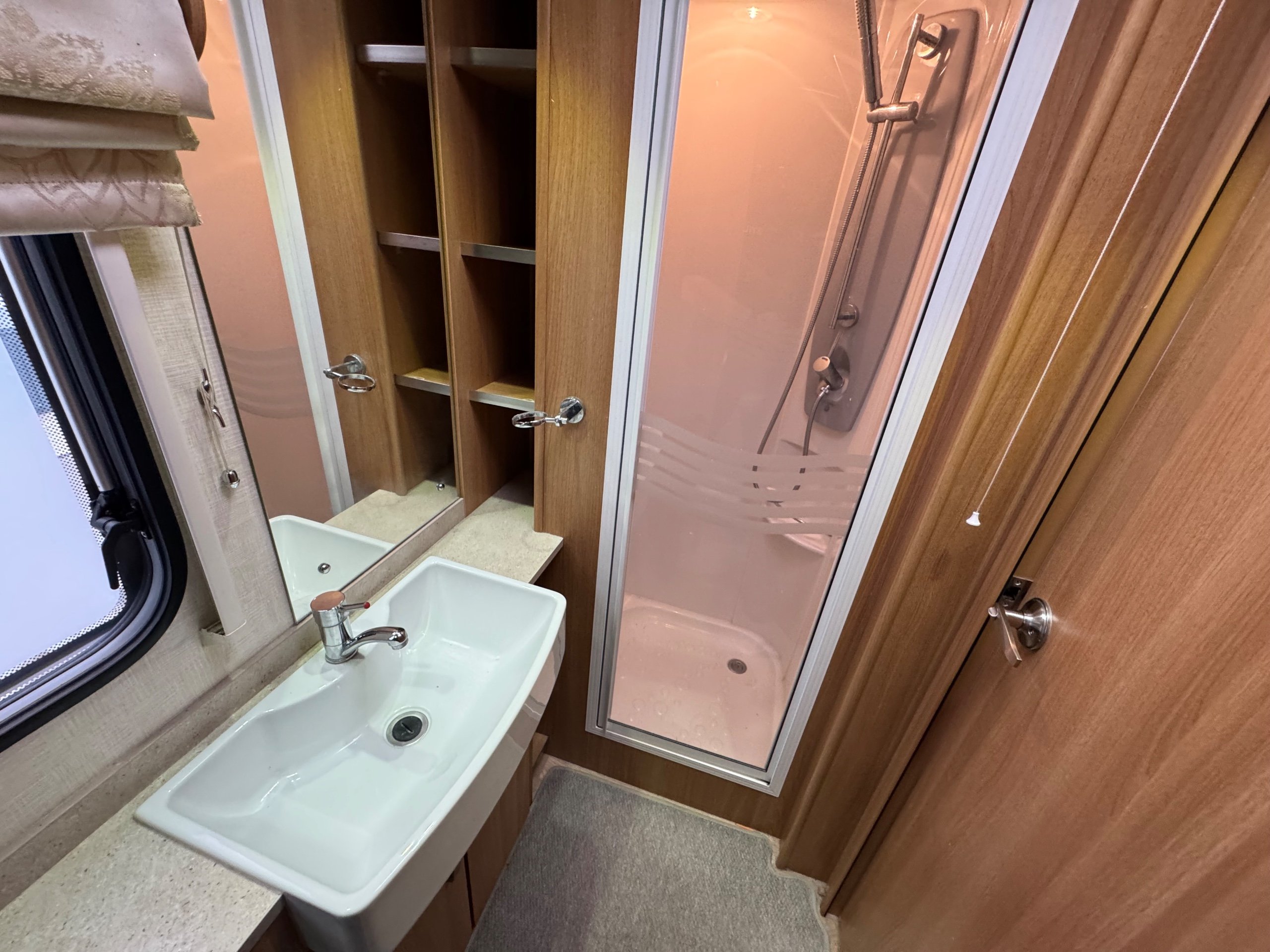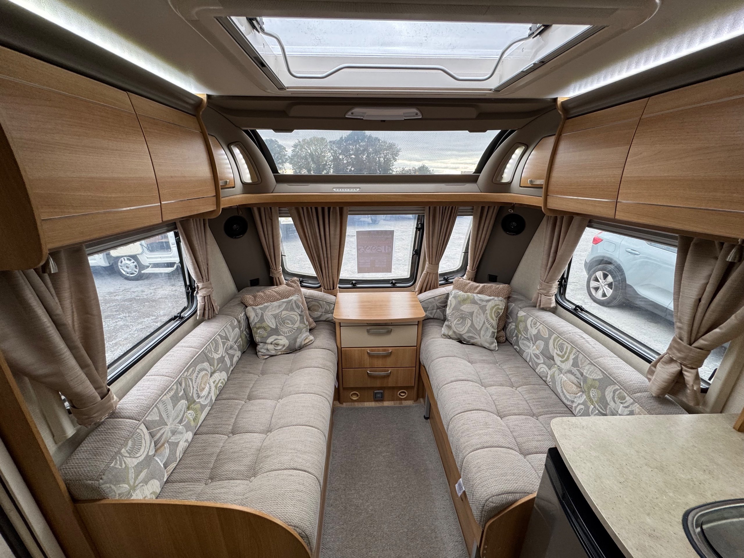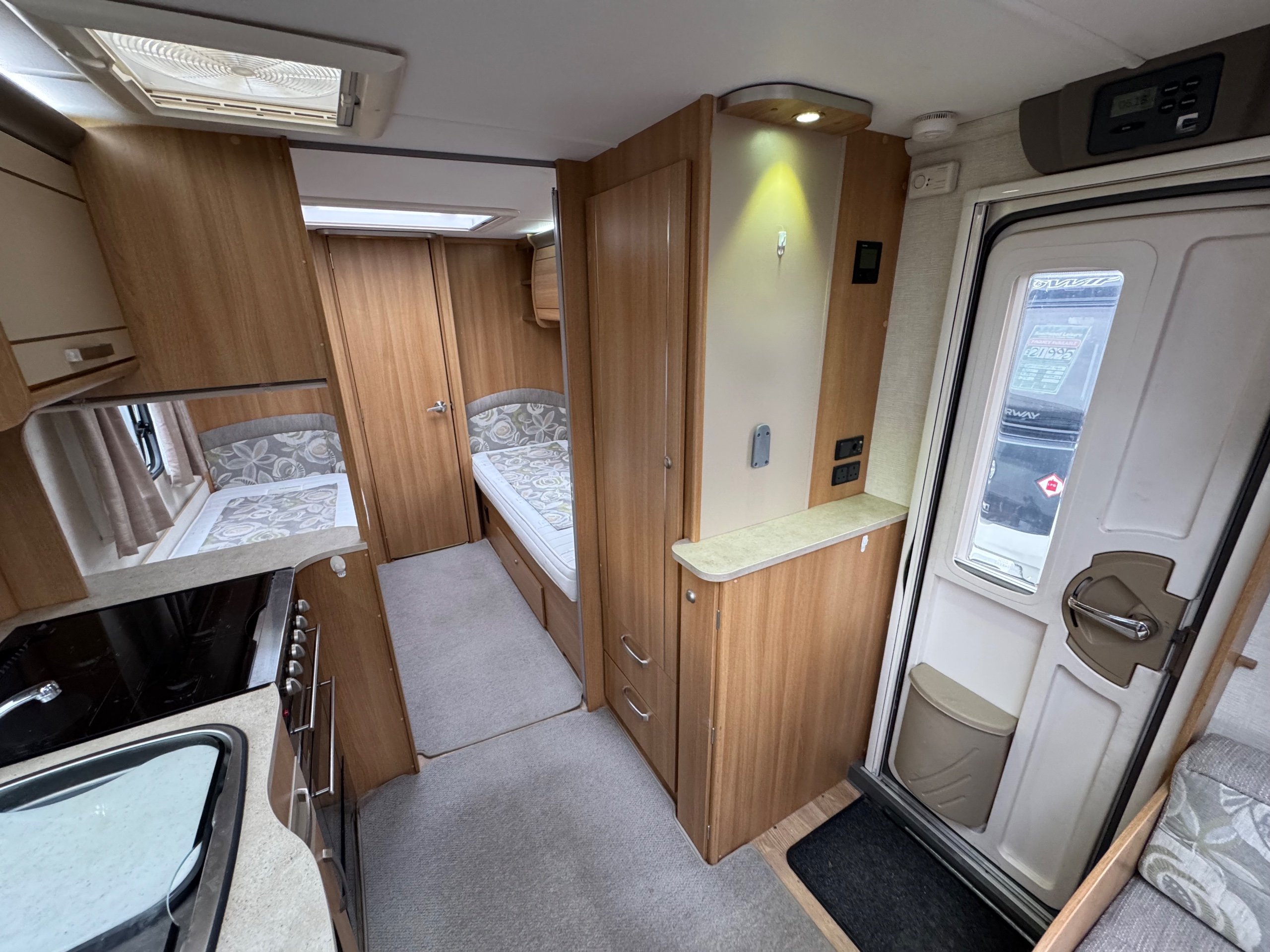 COACHMAN VIP 565 / 4 BERTH - complete end dressing room including separate shower enclosure, illuminated vanity unit, heated towel rail and toilet - 2 x fixed single beds to the rear - central nearside dresser - central offside kitchen - The VIP has stood the test of time as Coachman's flagship model and it is not hard to see why - very solid fixtures and fittings - a remarkably well kept tourer that is in fabulous condition for its age - viewing is highly recommended .