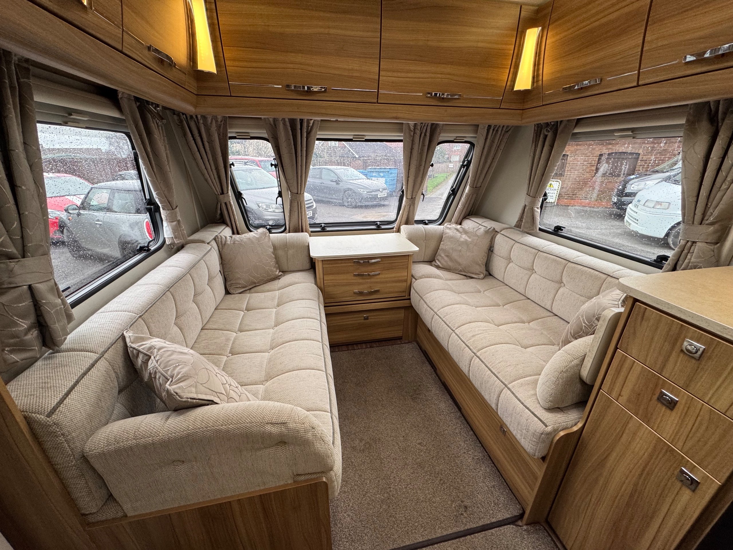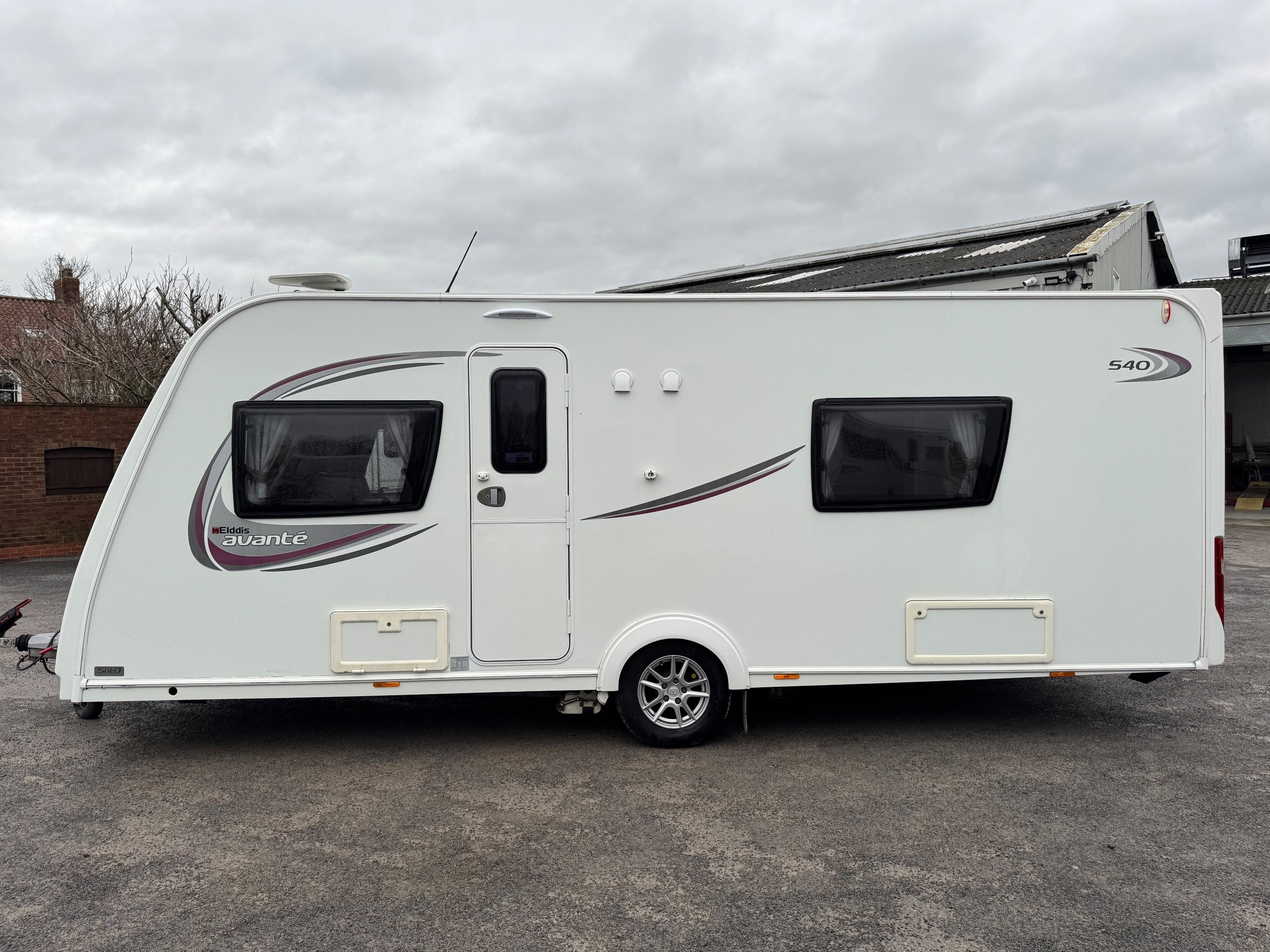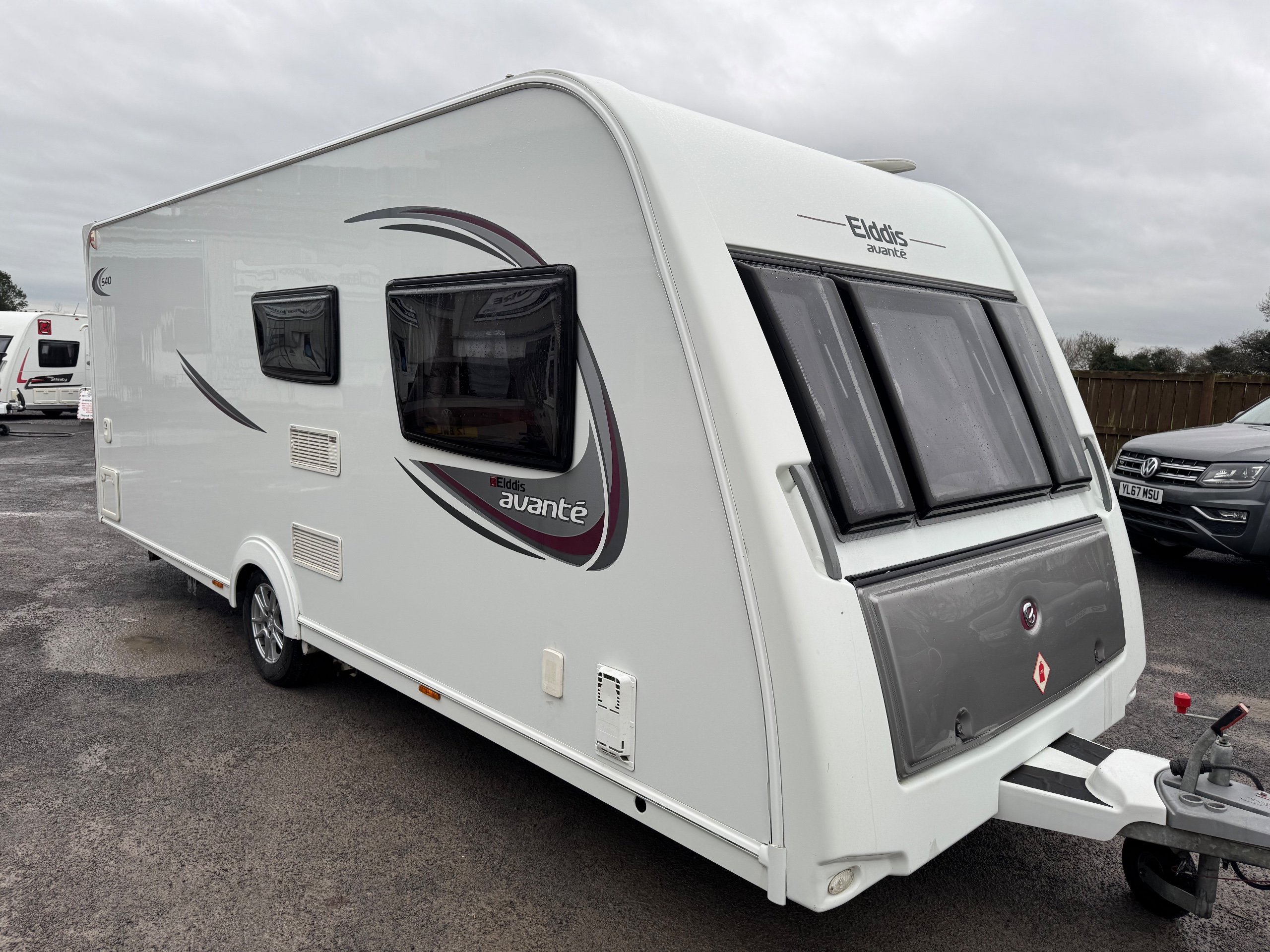 2015 ELDDIS AVANTE 540 / 4 BERTH - full rear dressing room incorporating individual shower cubicle, toilet and vanity unit - nearside fixed double bed with offside wardrobes - central offside kitchen - nearside central dresser - 2 x singles / double bed / lounge / dining area at the front - a super example of this highly desirable lightweight model which boasts all the usual refinements .