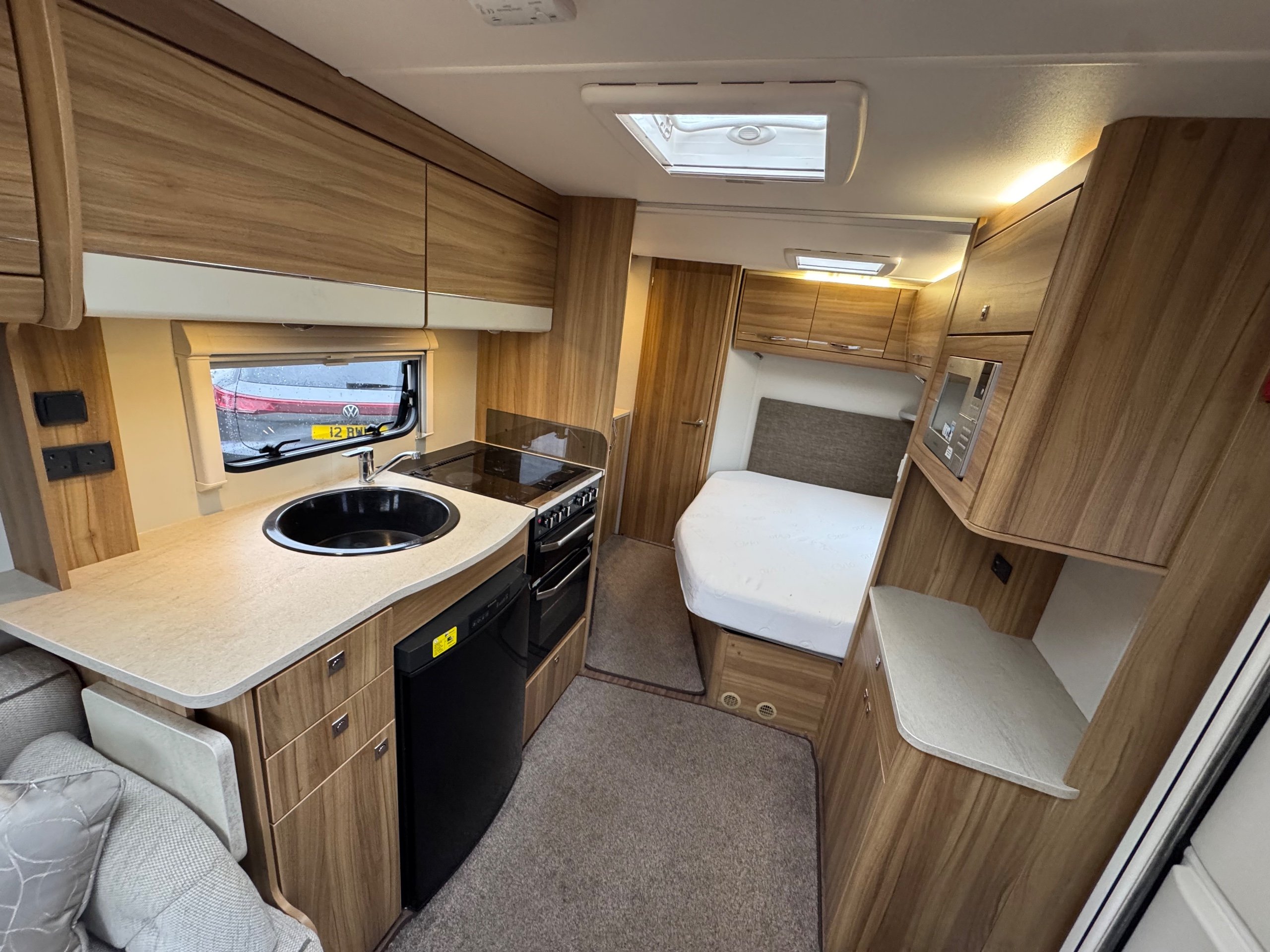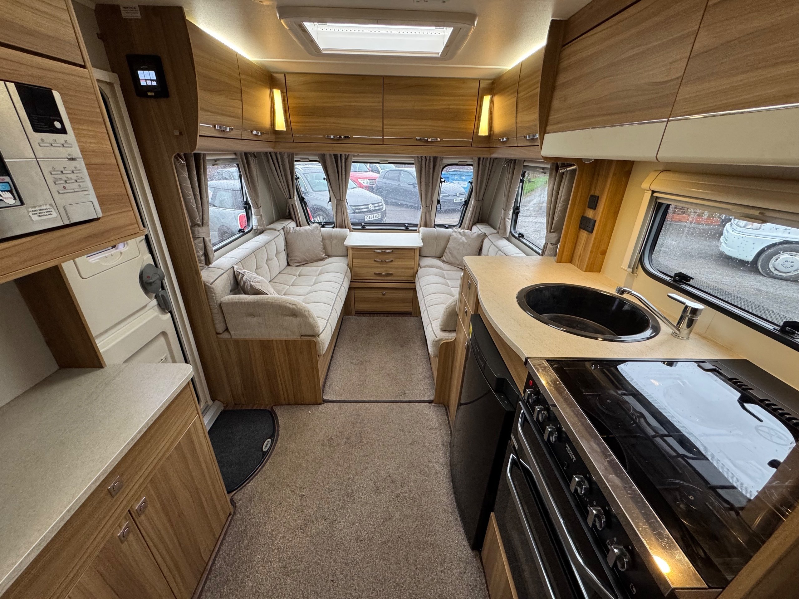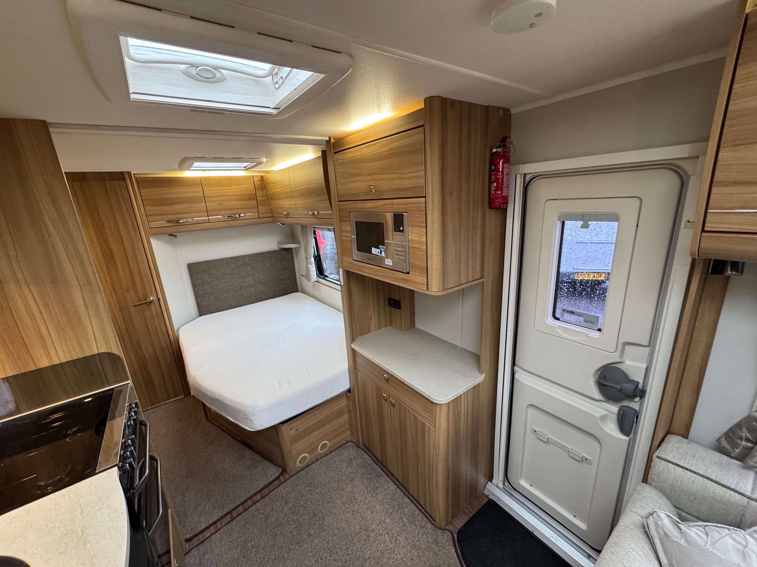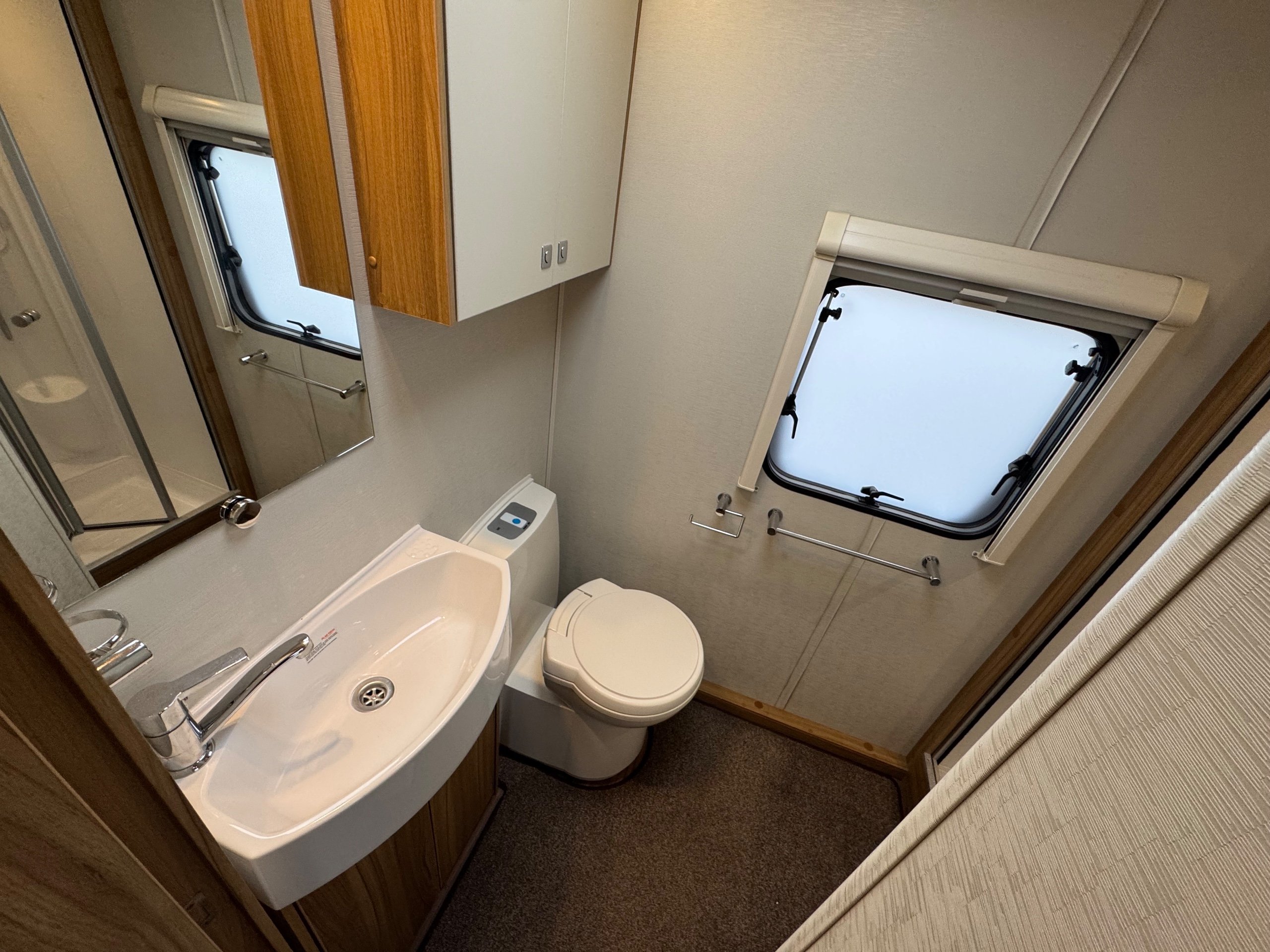 2015 ELDDIS AVANTE 540 / 4 BERTH - full rear dressing room incorporating individual shower cubicle, toilet and vanity unit - nearside fixed double bed with offside wardrobes - central offside kitchen - nearside central dresser - 2 x singles / double bed / lounge / dining area at the front - a super example of this highly desirable lightweight model which boasts all the usual refinements .