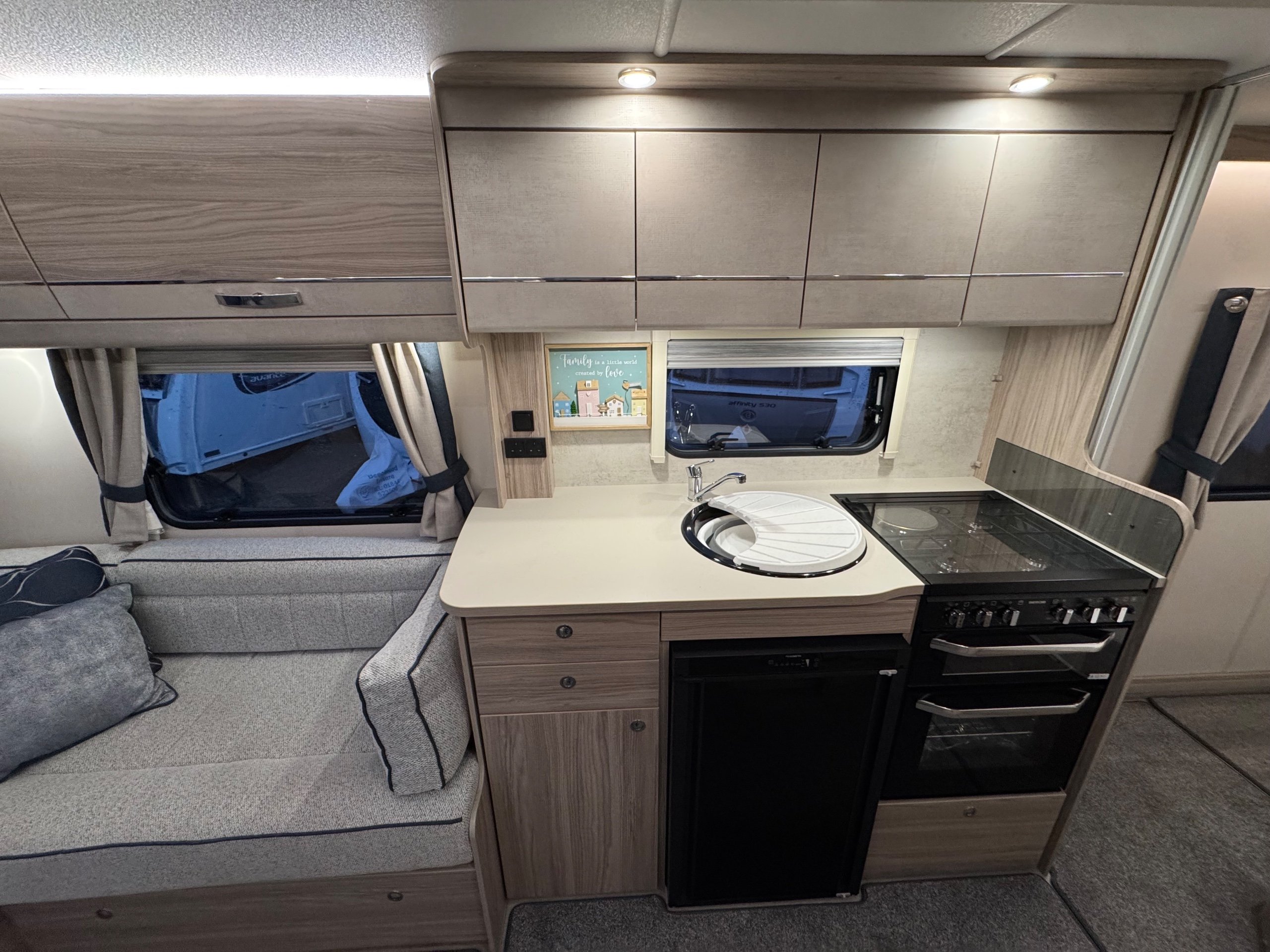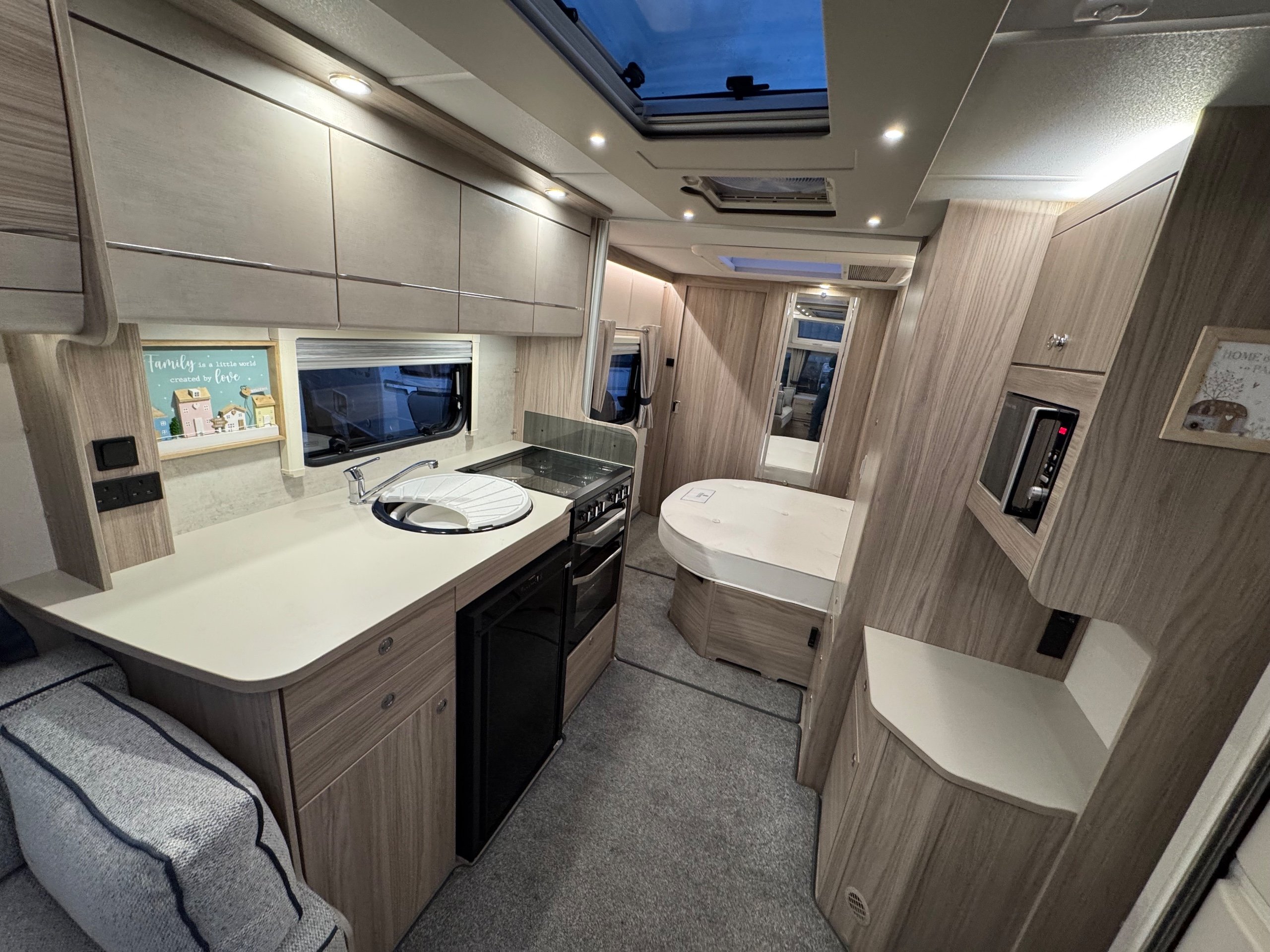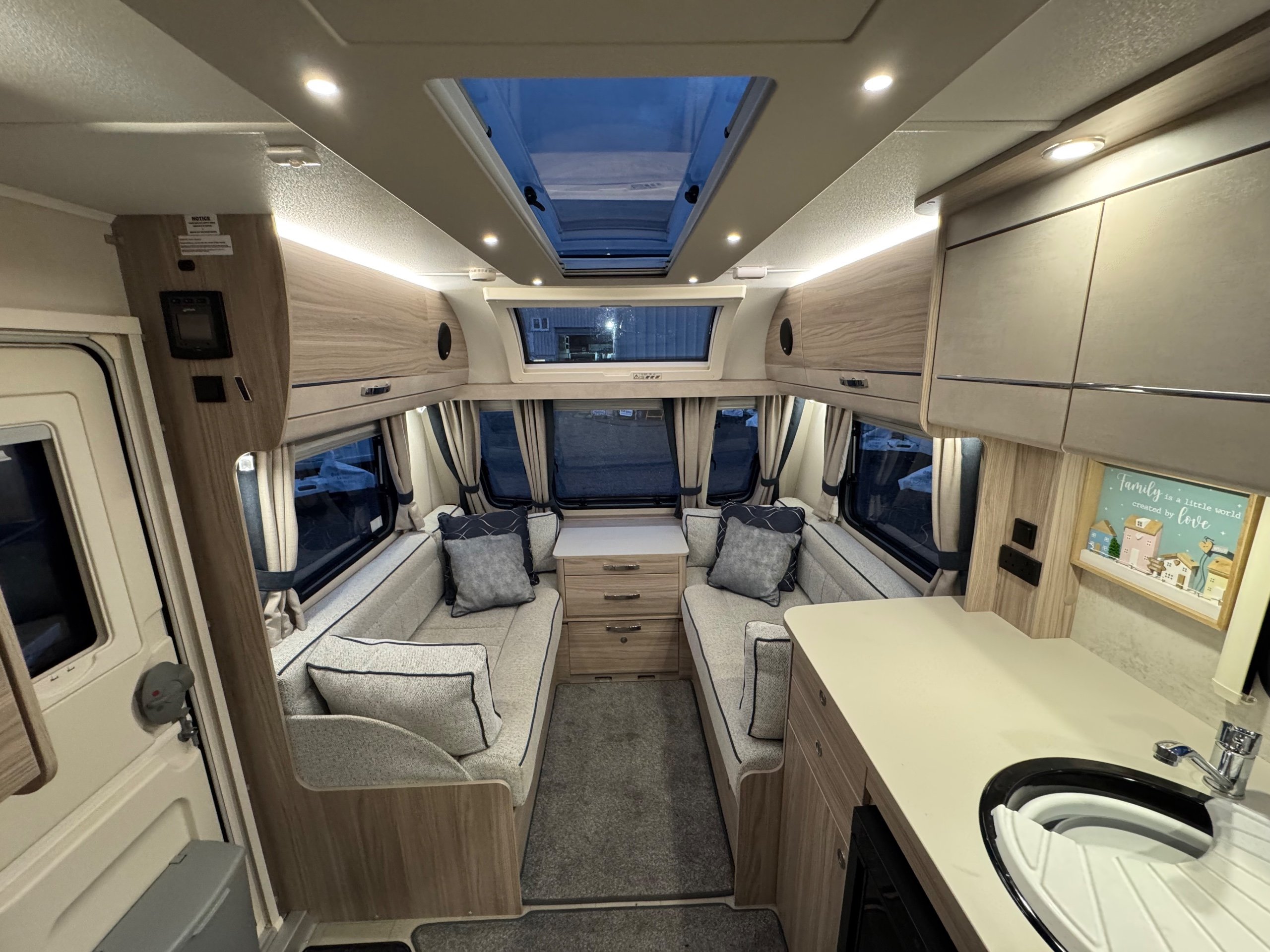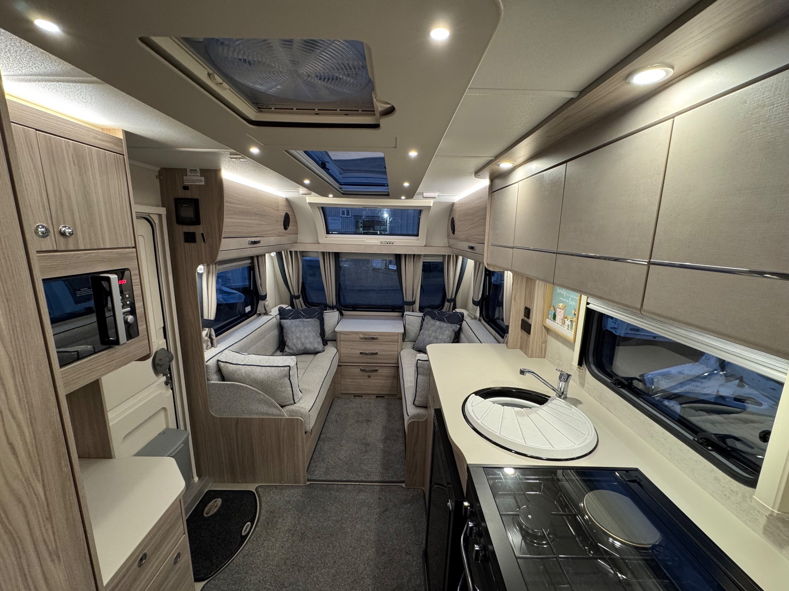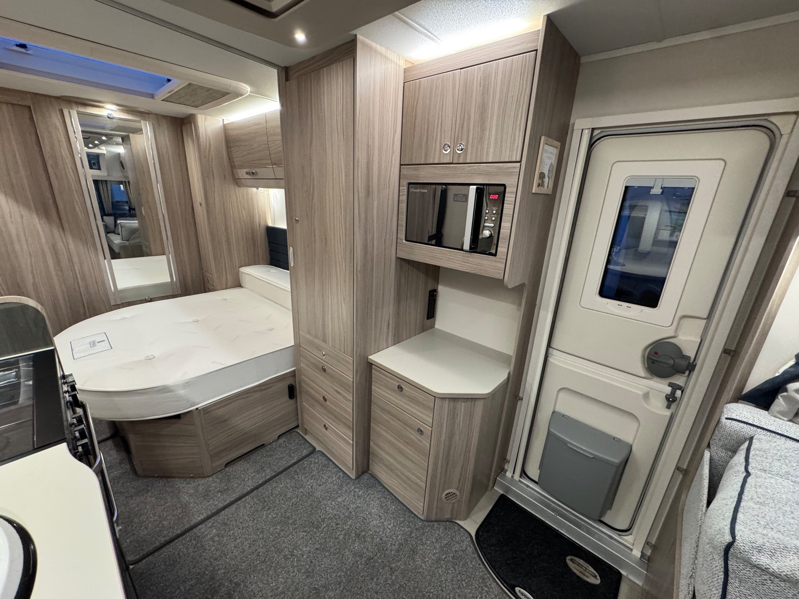 2022 ELDDIS CHATSWORTH 554 / 4 BERTH - full rear dressing room featuring a separate shower cubicle, toilet and vanity unit - rear nearside fixed island bed with adjoining wardrobes - central offside kitchen - 1 x double dinette /lounge / bedroom at the front - IMPECCABLE CONDITION THROUGHOUT this is a first class model in FIRST CLASS CONDITION - benefitting from all the usual refinements together with classy soft furnishings this model is a real head turner !