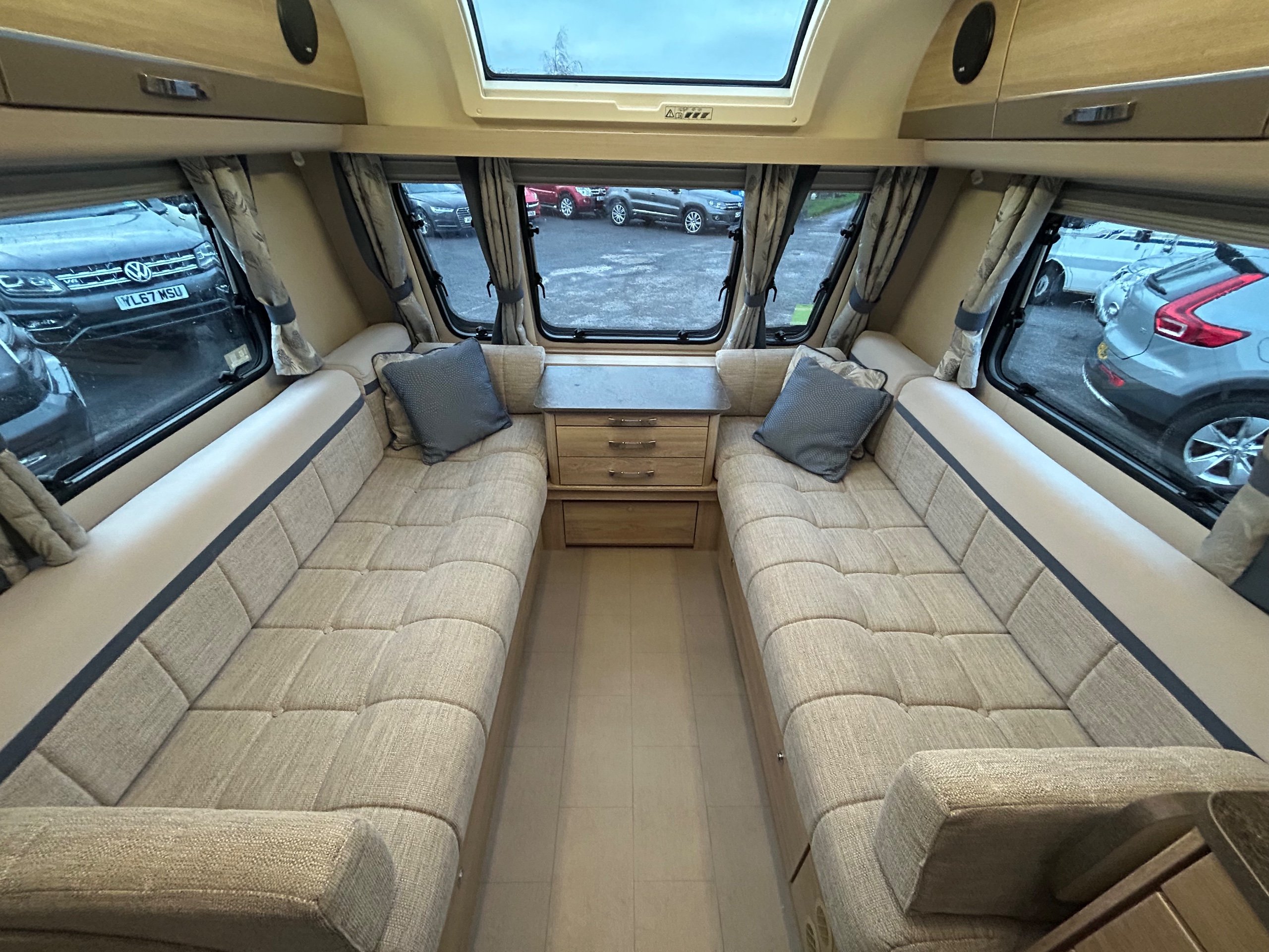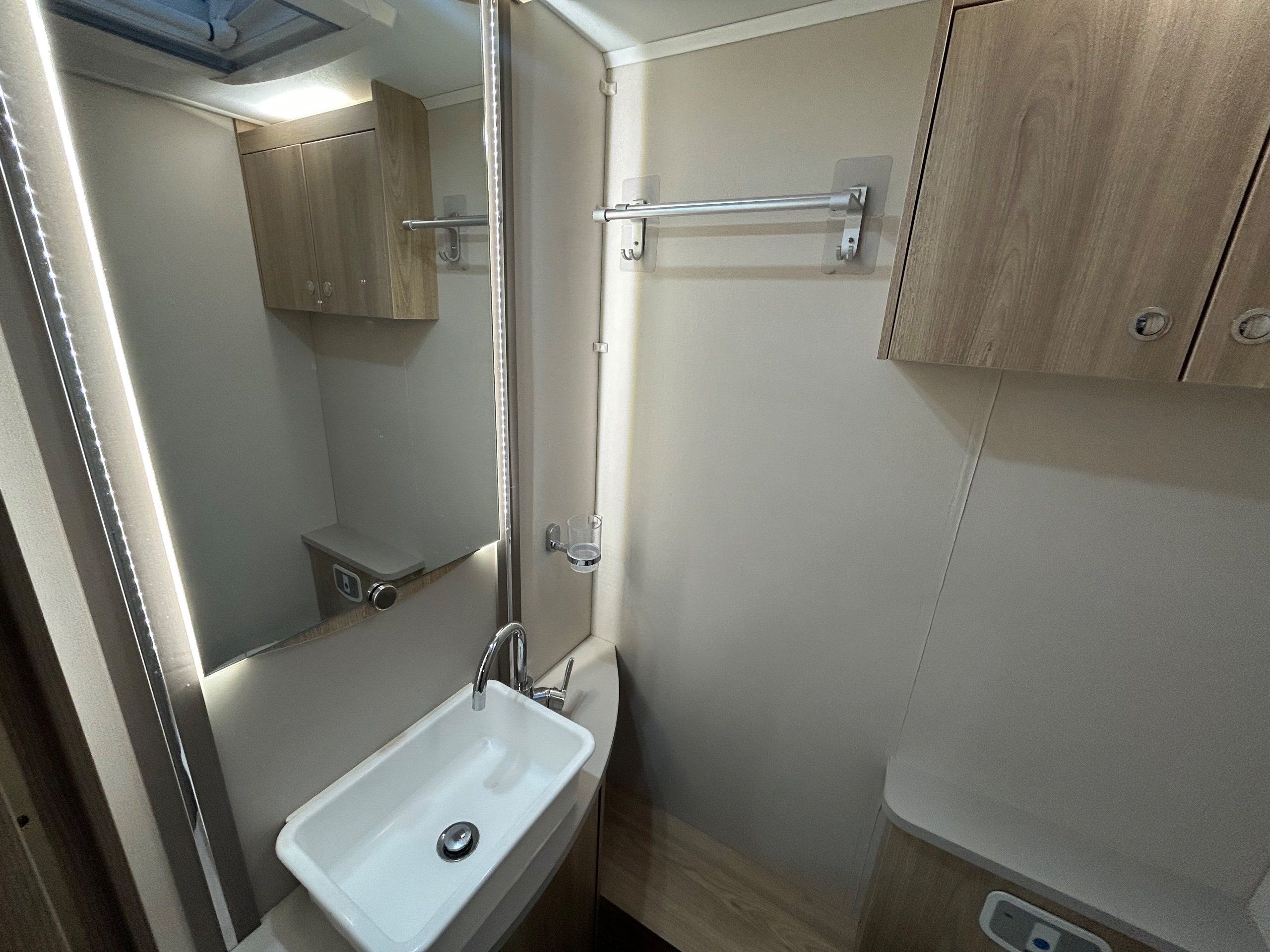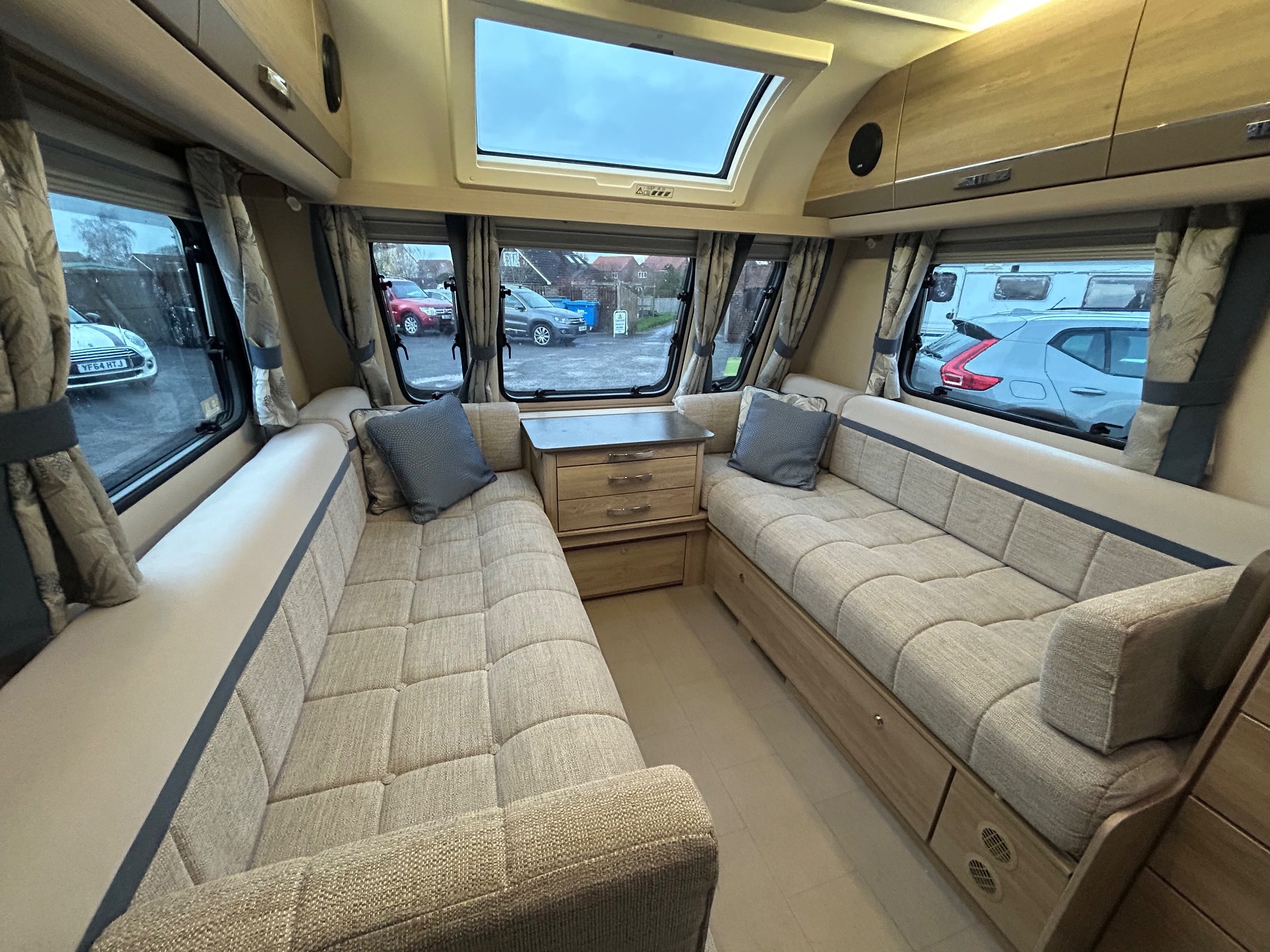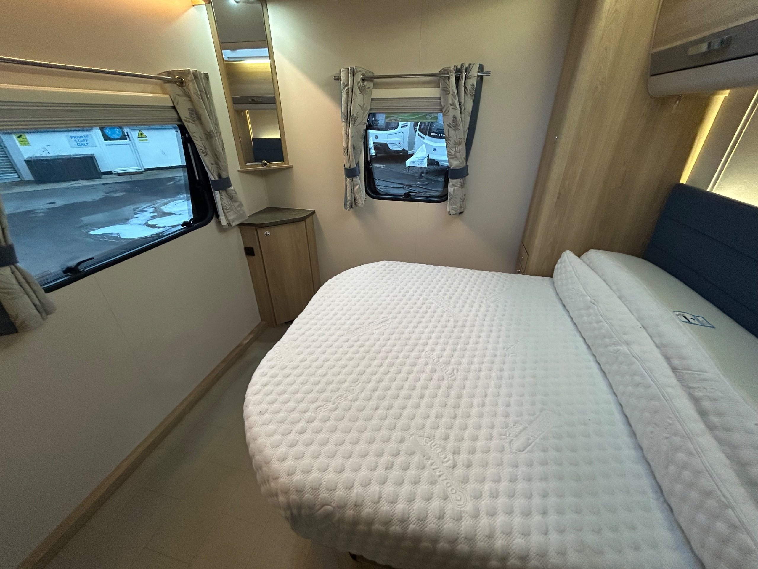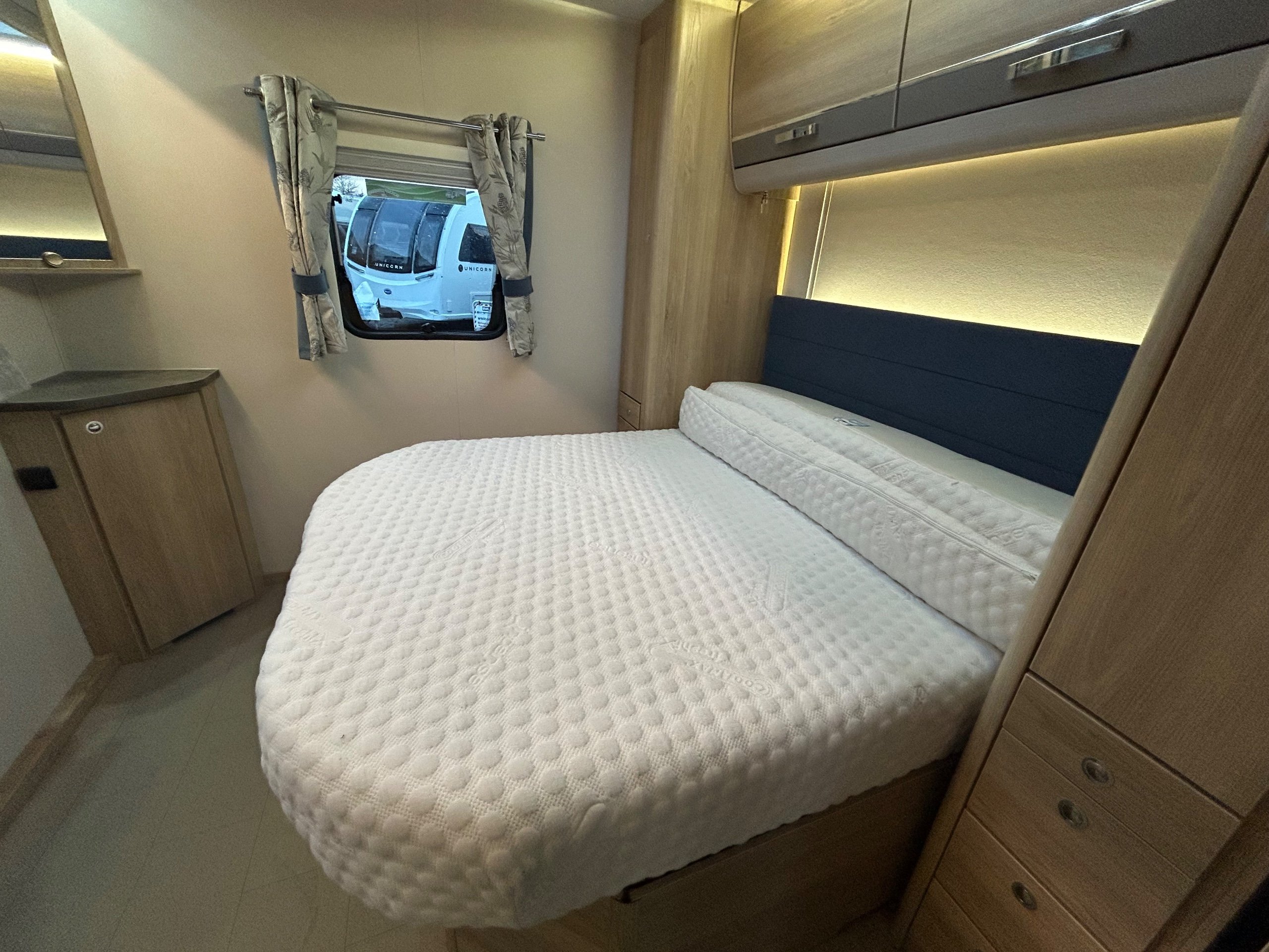 2019 ELDDIS CHATSWORTH 860 / 4 BERTH , - Full rear bedroom with nearside transverse island bed with adjoining wardrobes - central dressing room featuring and individual shower cubicle, toilet and vanity unit - central offside kitchen incorporating a larder fridge - 2 x singles / double bed / double dinette at the front ideal for a family or a small group of friends as it comfortably sleeps 4 people. This well-maintained caravan is spacious and practical, with a versatile layout that includes a fixed double bed and a front lounge area that easily converts into an additional double bed. The modern and functional kitchen is fully equipped with everything you need for cooking on the go, including a fridge, oven, grill, and gas hob. Ideal for those seeking a reliable and stylish caravan for their next adventure.