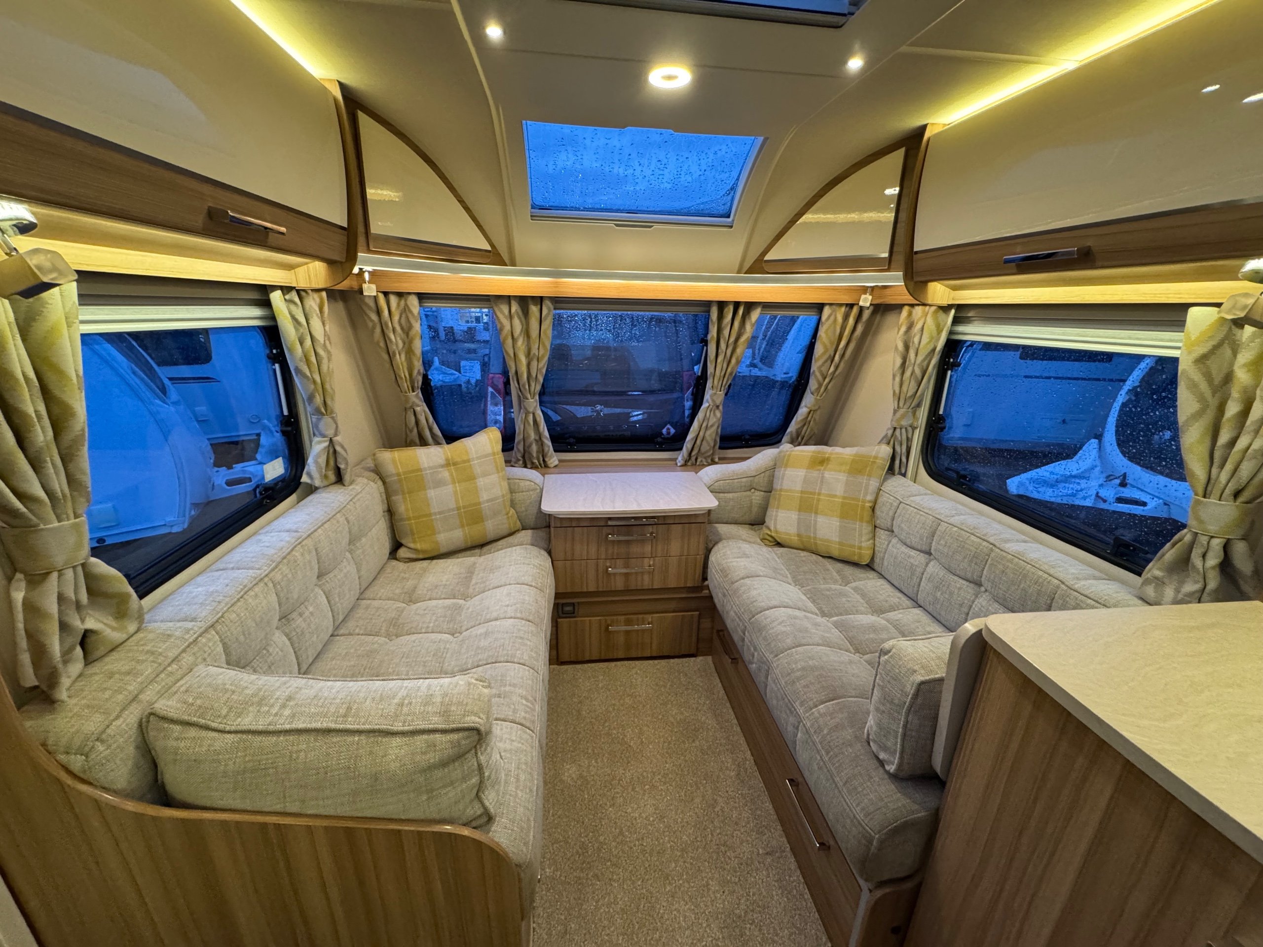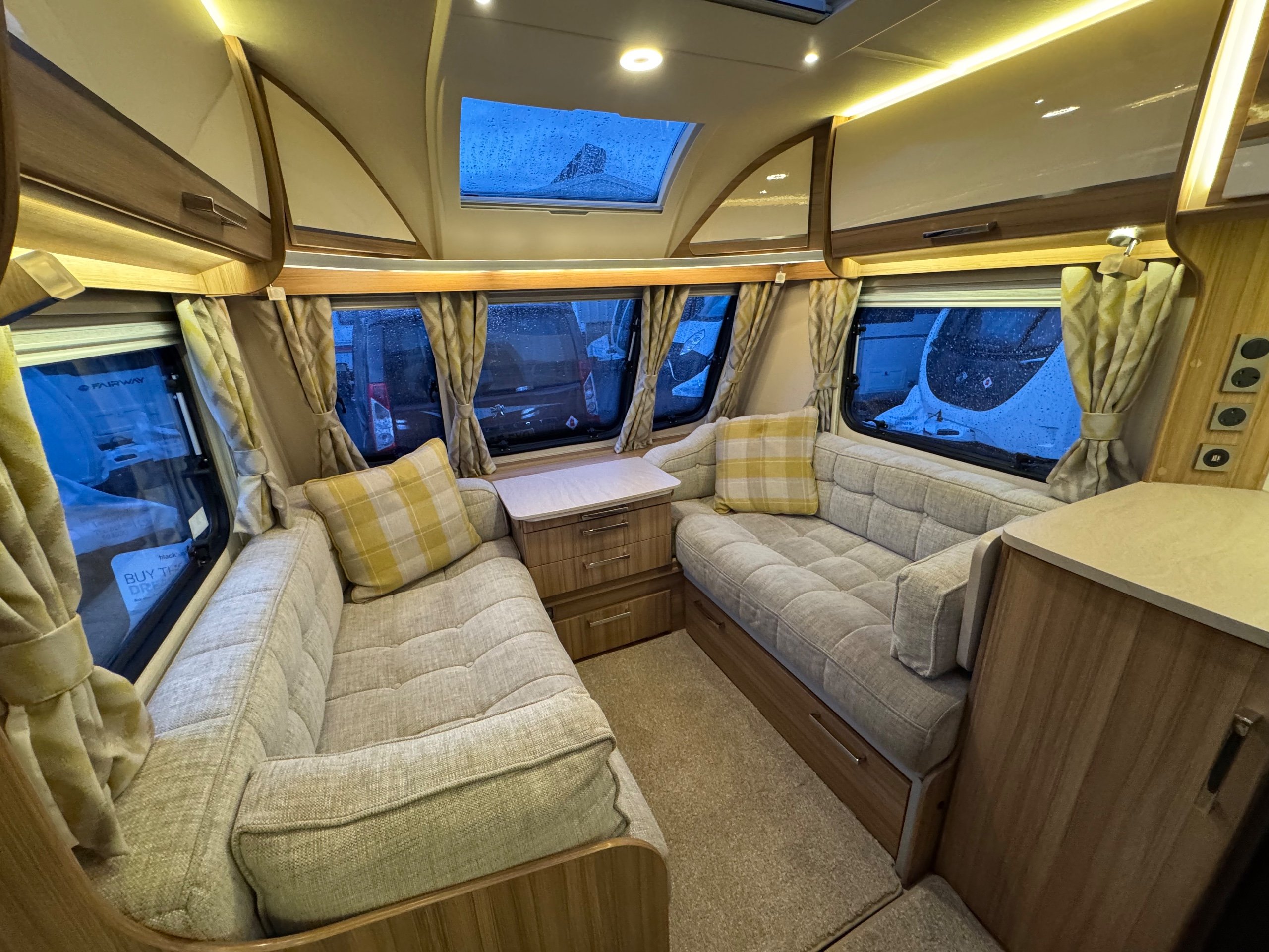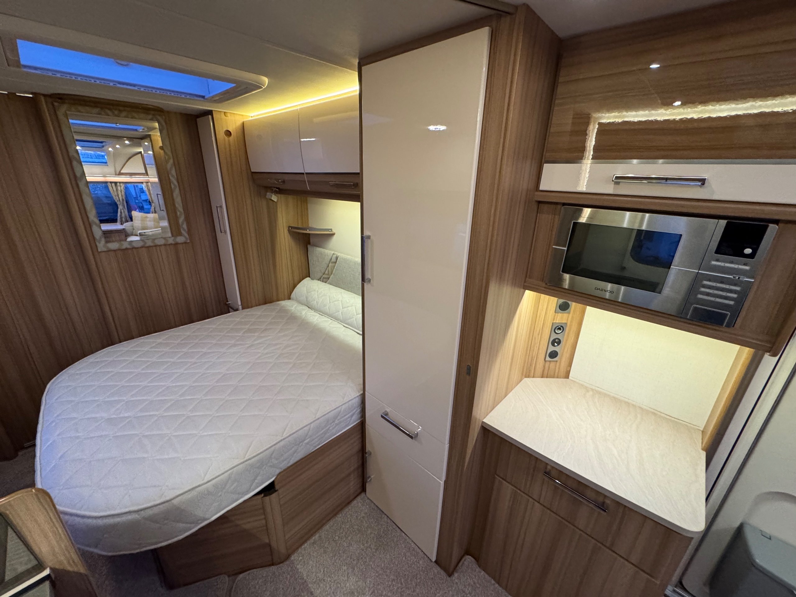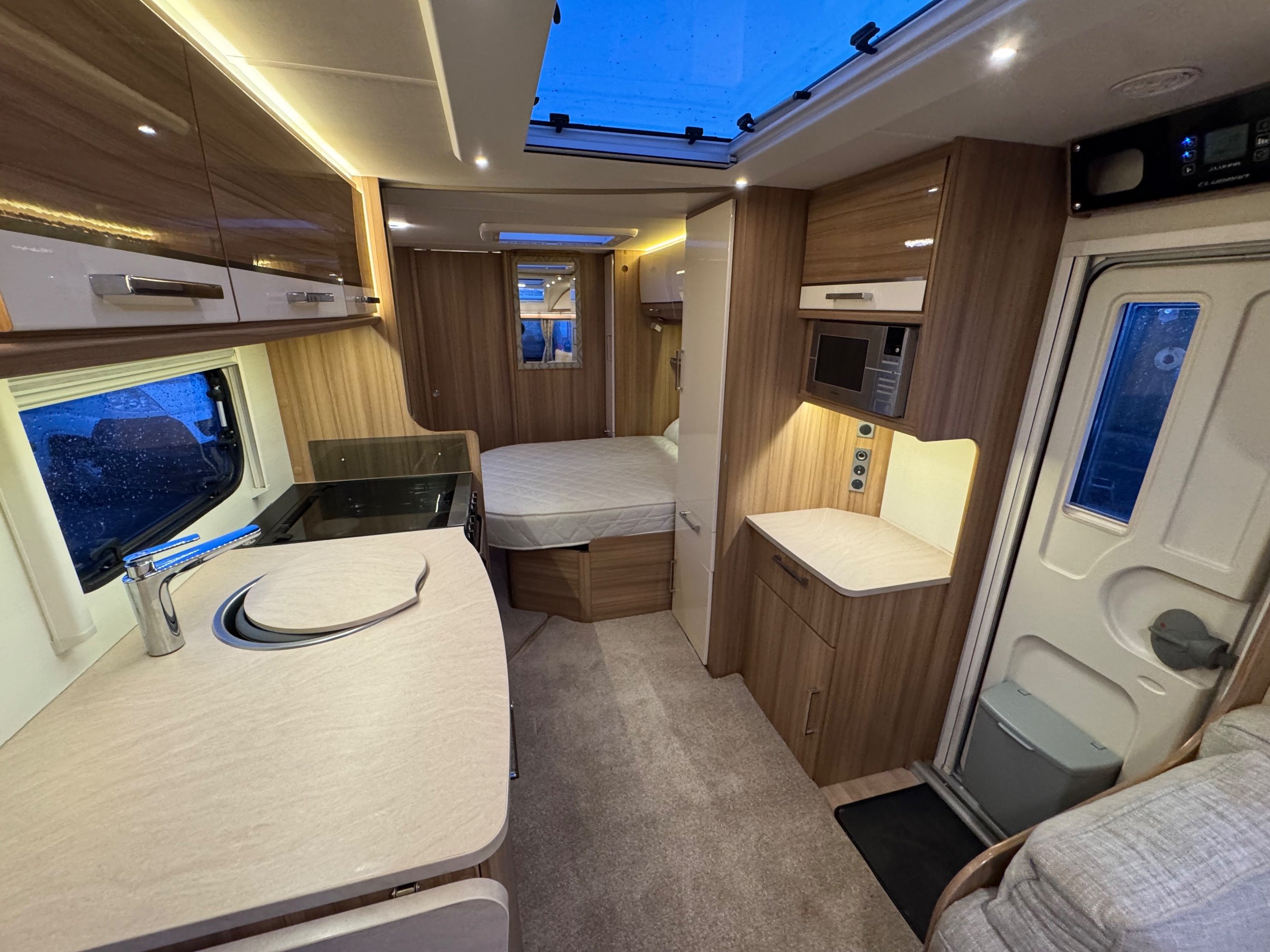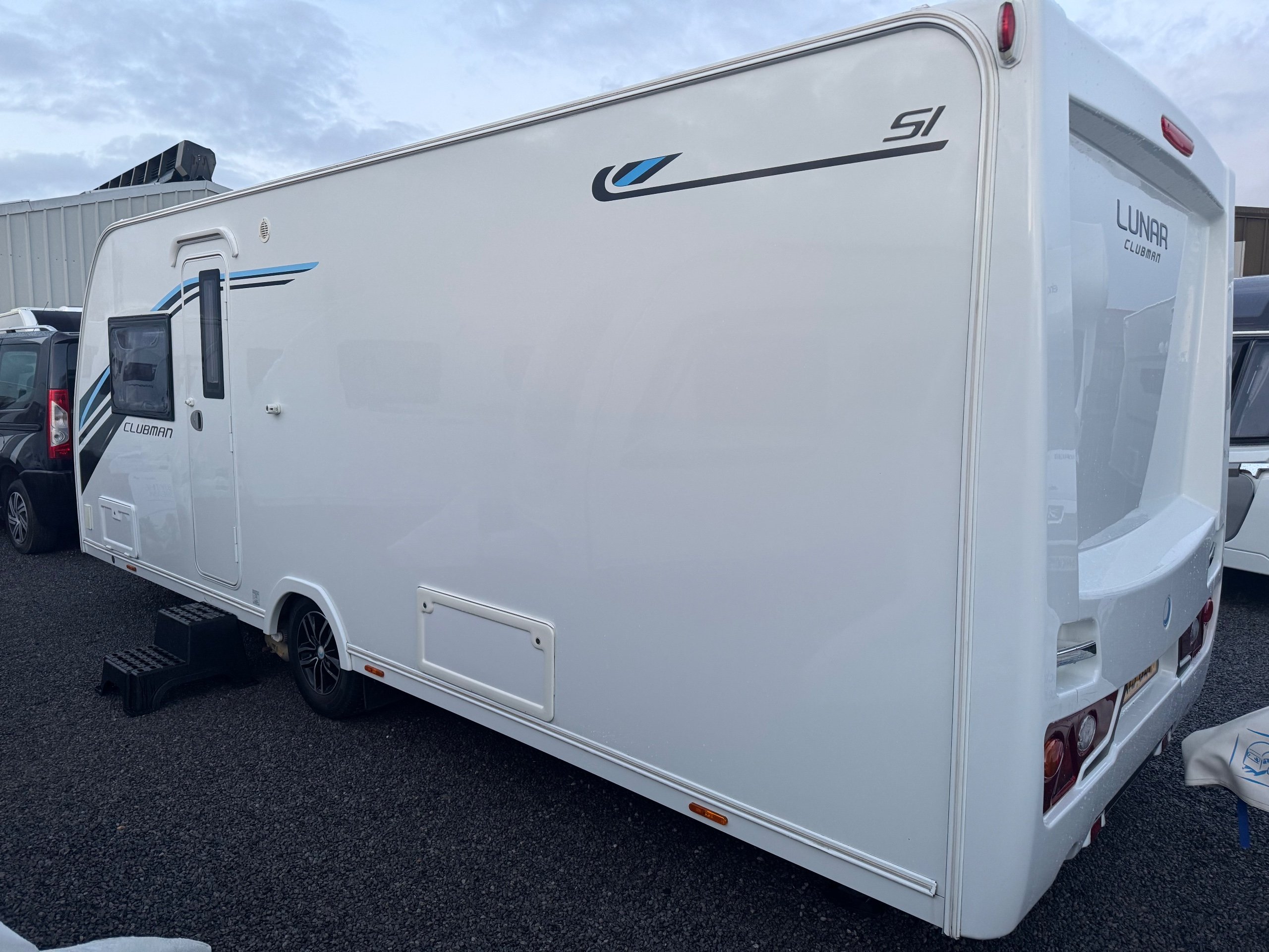2017 LUNAR CLUBMAN SI / 4 berth - full rear dressing room incorporating a separate shower cubicle, toilet and vanity unit - transverse island double bed to the rear with adjoining wardrobes - central offside kitchen - central nearside dresser - 2 x singles / 1 x double at the front - An OUTSTANDING example of this modern lightweight tourer, benefitting from a host of home from home comforts