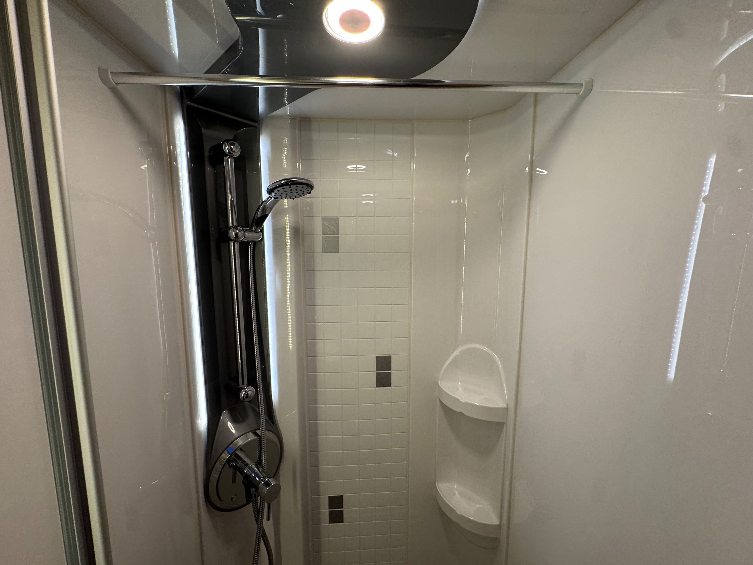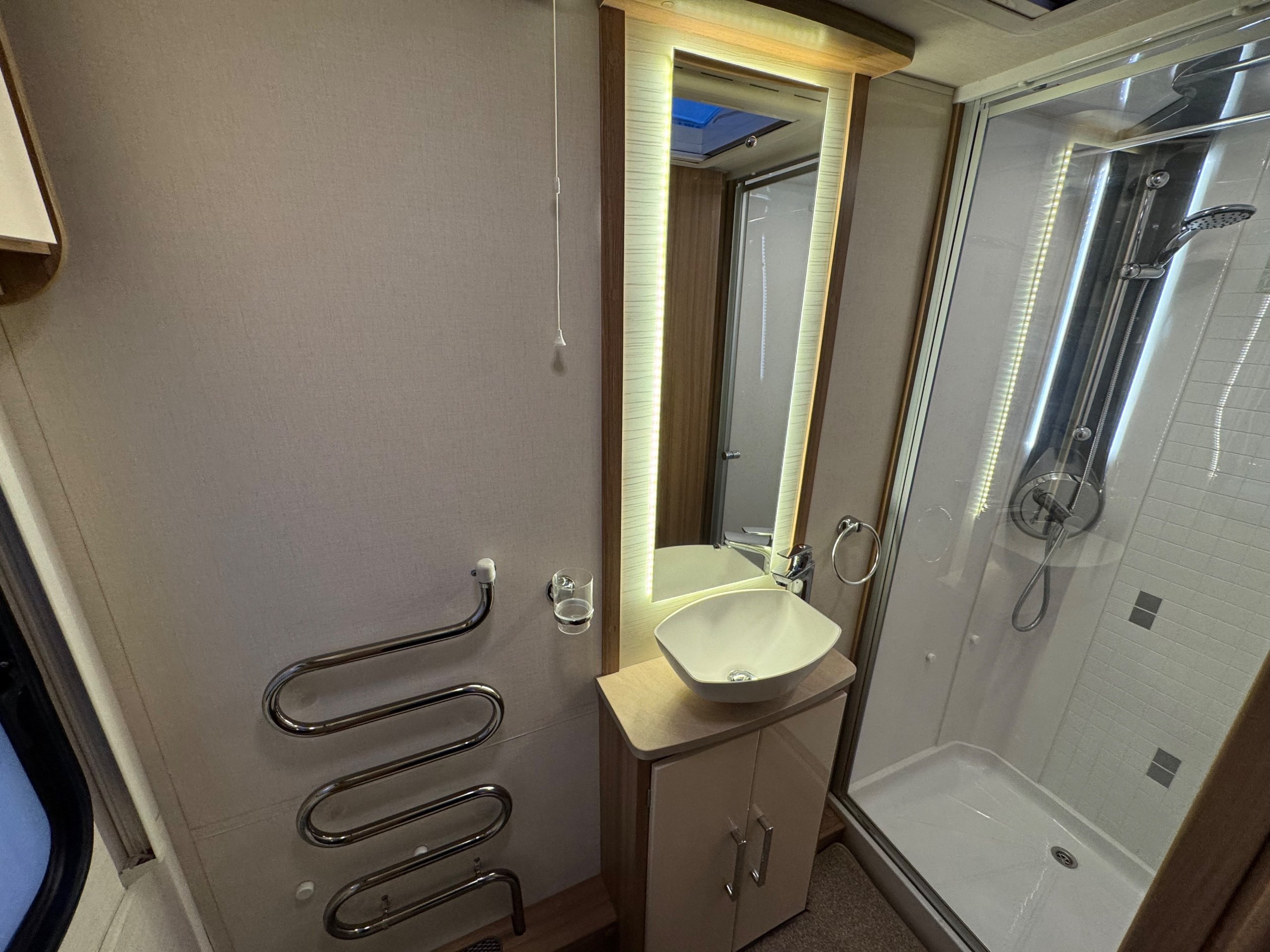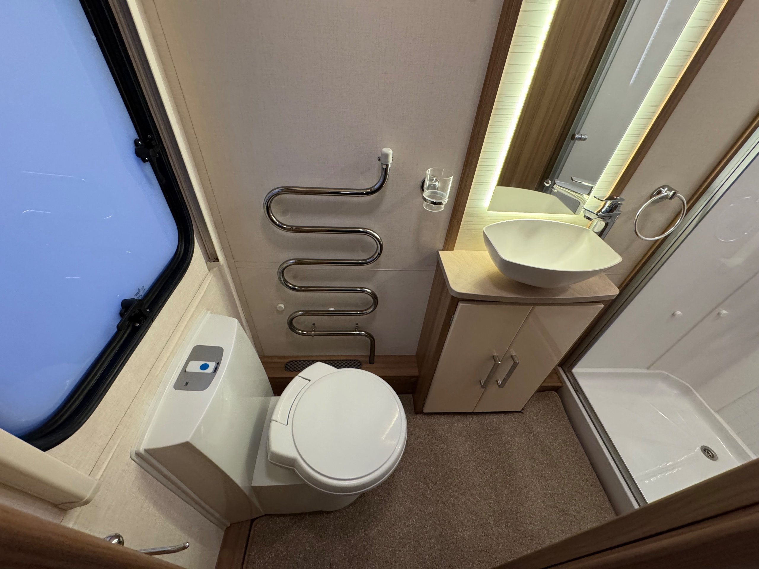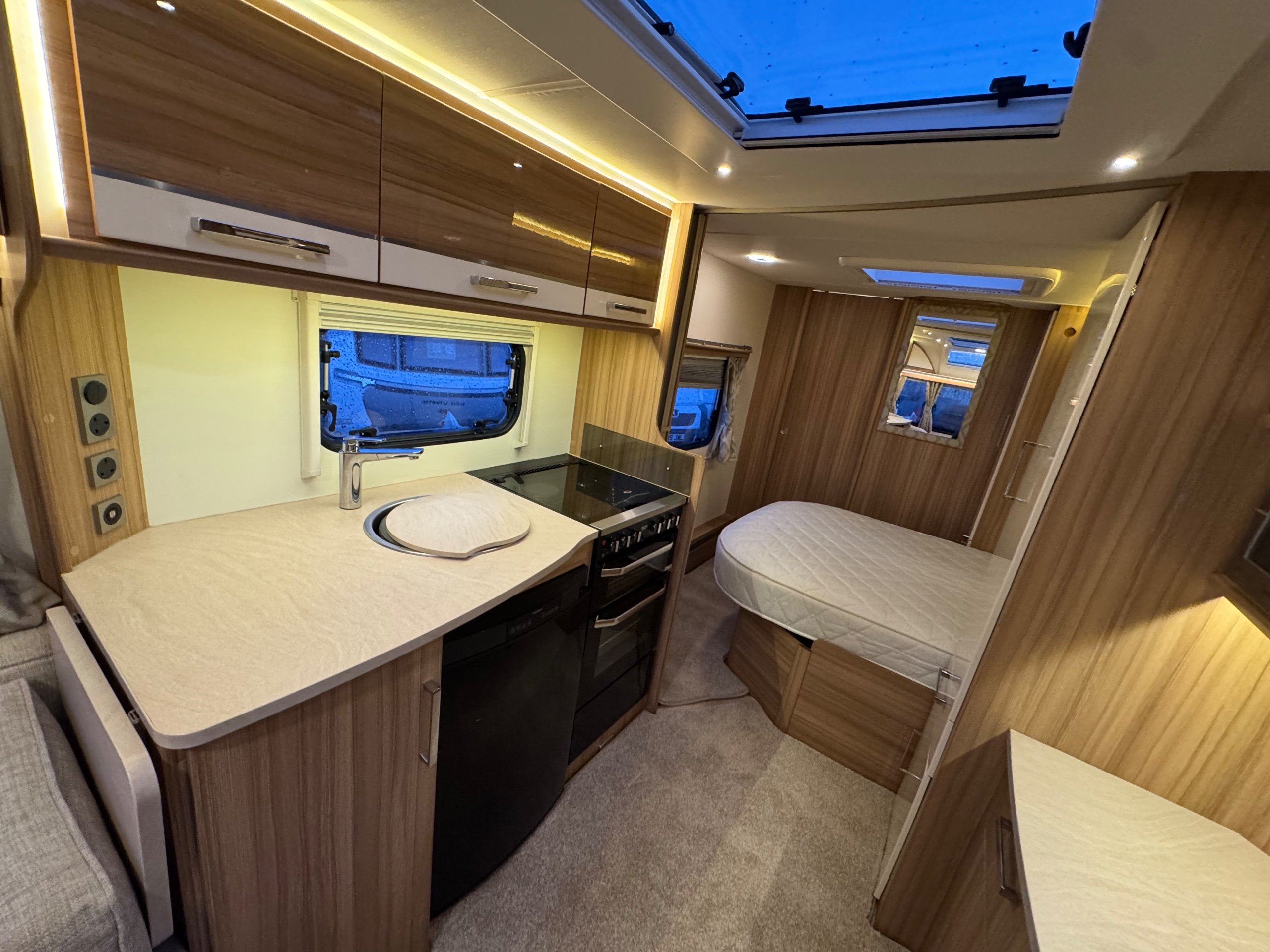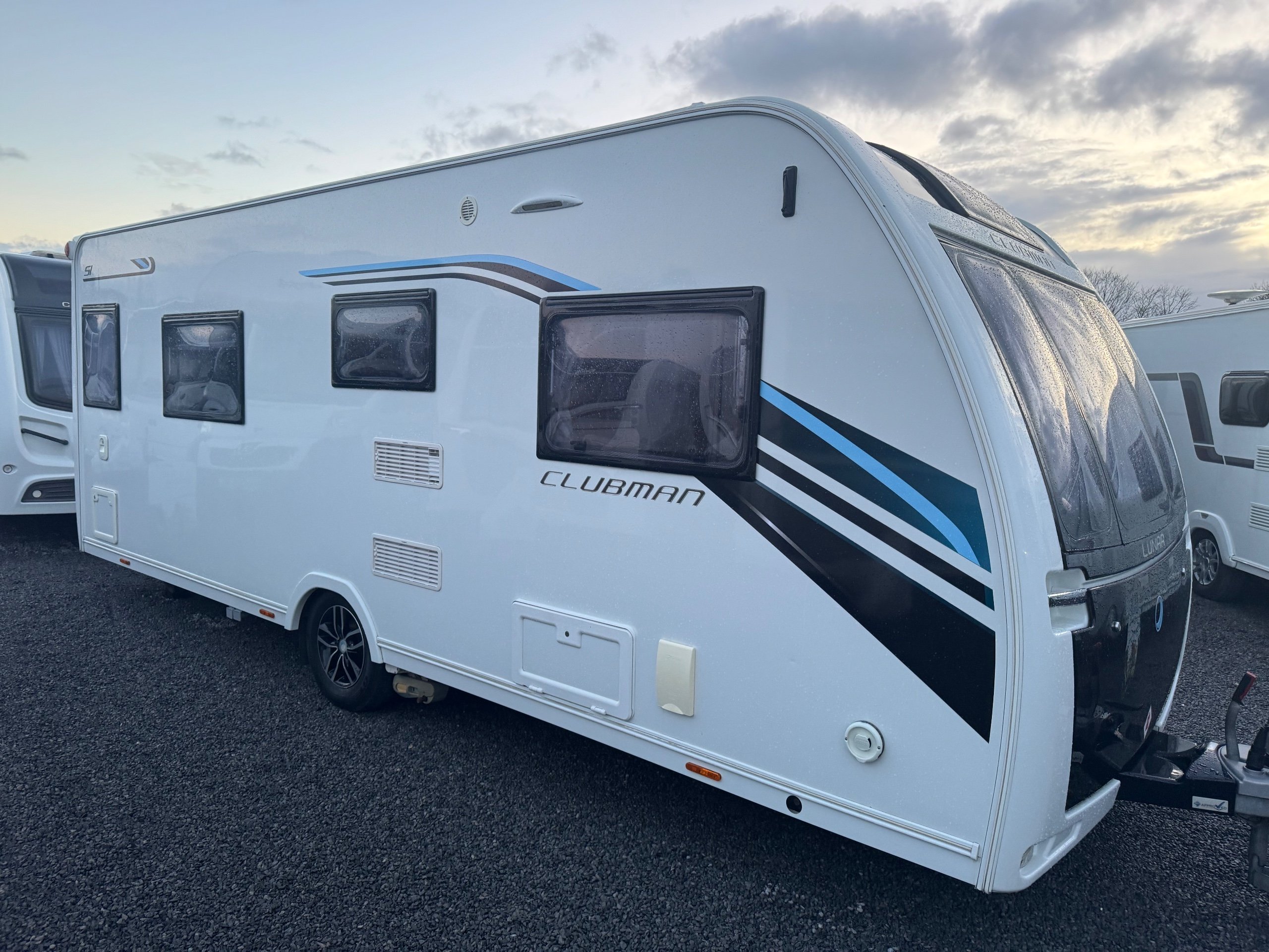 2017 LUNAR CLUBMAN SI / 4 berth - full rear dressing room incorporating a separate shower cubicle, toilet and vanity unit - transverse island double bed to the rear with adjoining wardrobes - central offside kitchen - central nearside dresser - 2 x singles / 1 x double at the front - An OUTSTANDING example of this modern lightweight tourer, benefitting from a host of home from home comforts