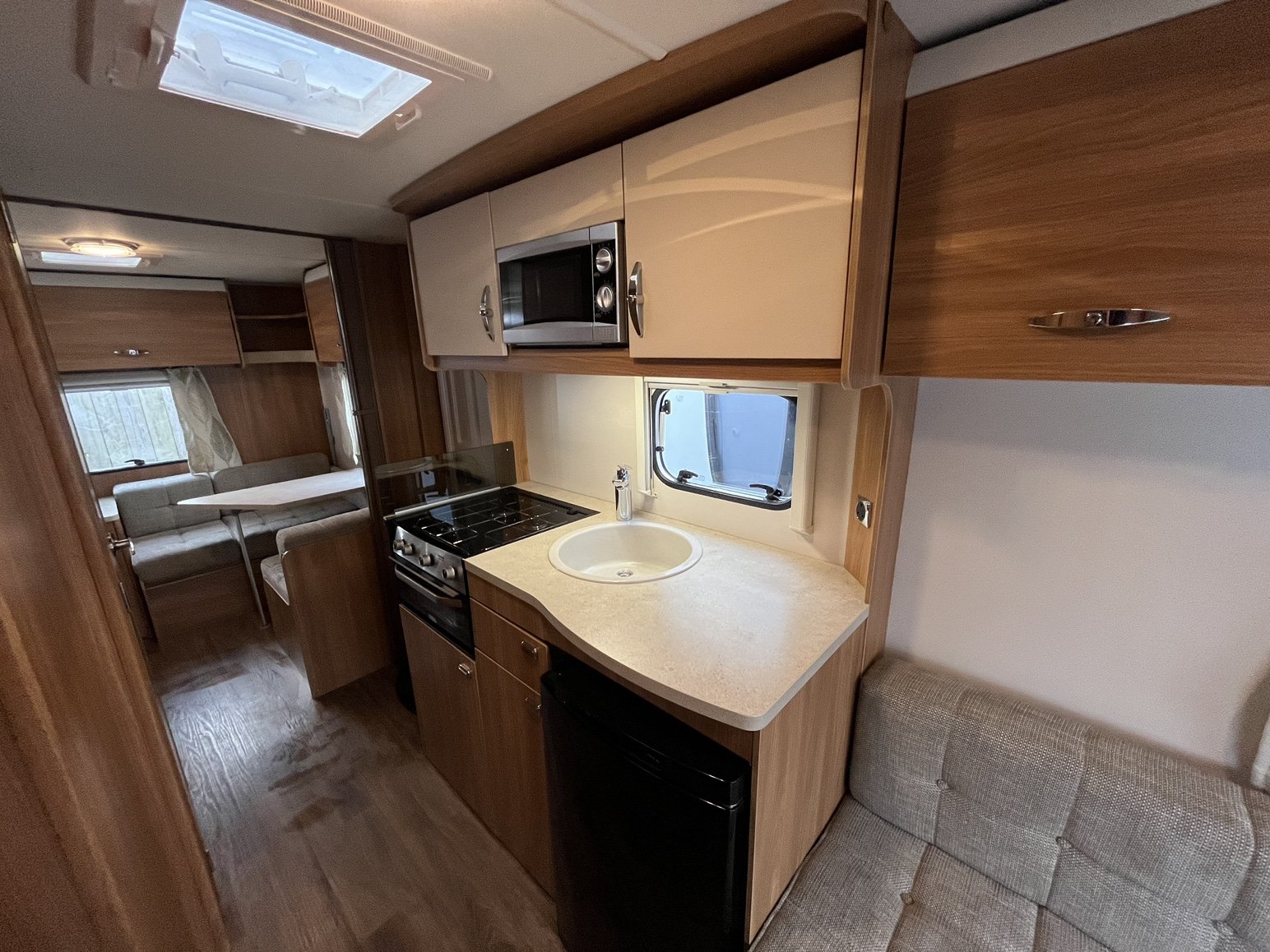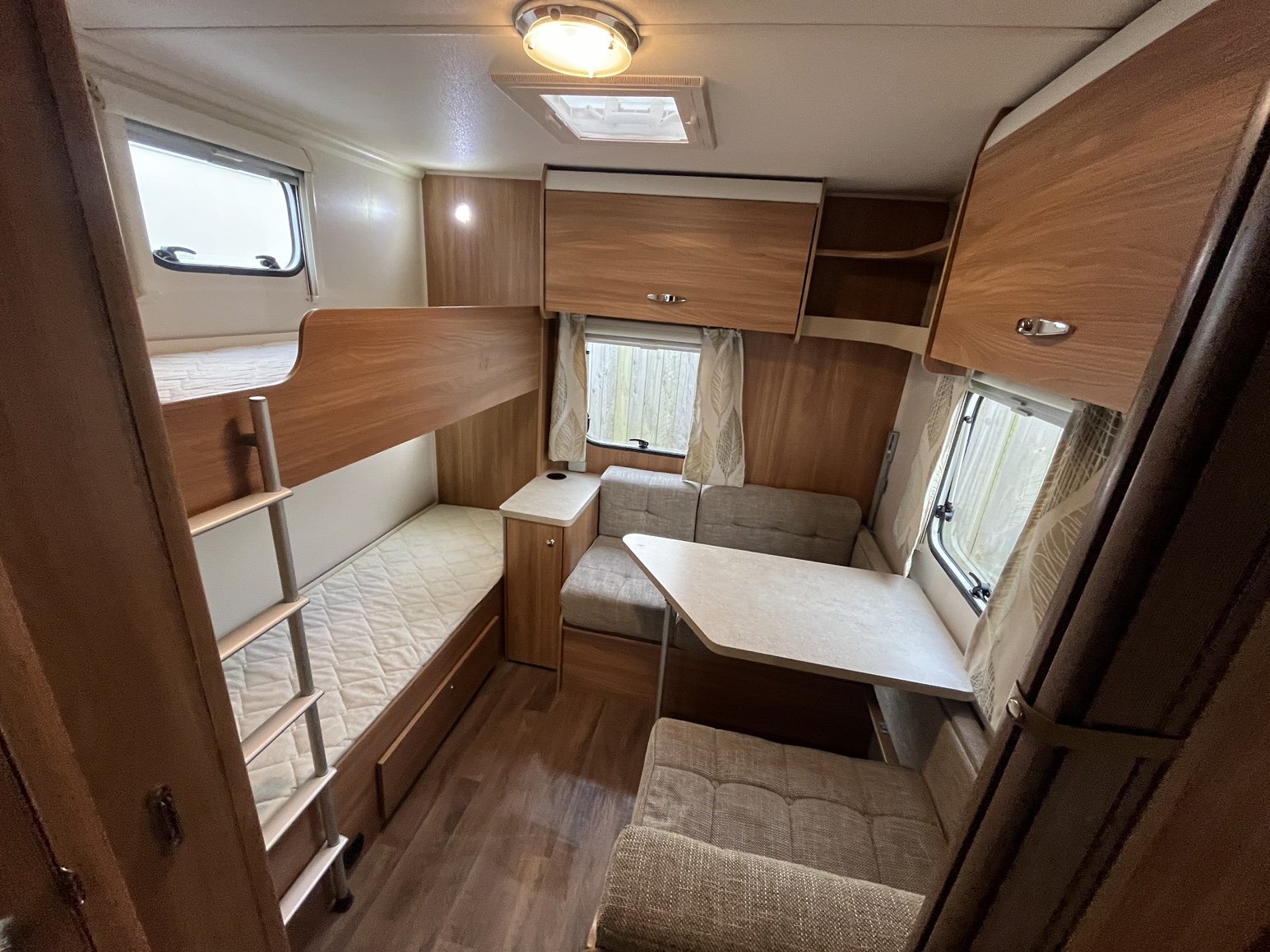 2016 SPRITE FREEDOM 6 TD / 6 berth - 2 x fixed rear offside bunk beds with adjacent seating area / single bed and bunk bed - offside washroom including separate shower enclosure, vanity unit and toilet - nearside kitchen - 2 x singles / double at the front - this fantastic family tourer offers both practicality and manageability - with a very low maximum towing weight, whilst still having masses of storage and great use of space - this model has had a microwave fitted as well as a BBQ point and SOLAR PANEL