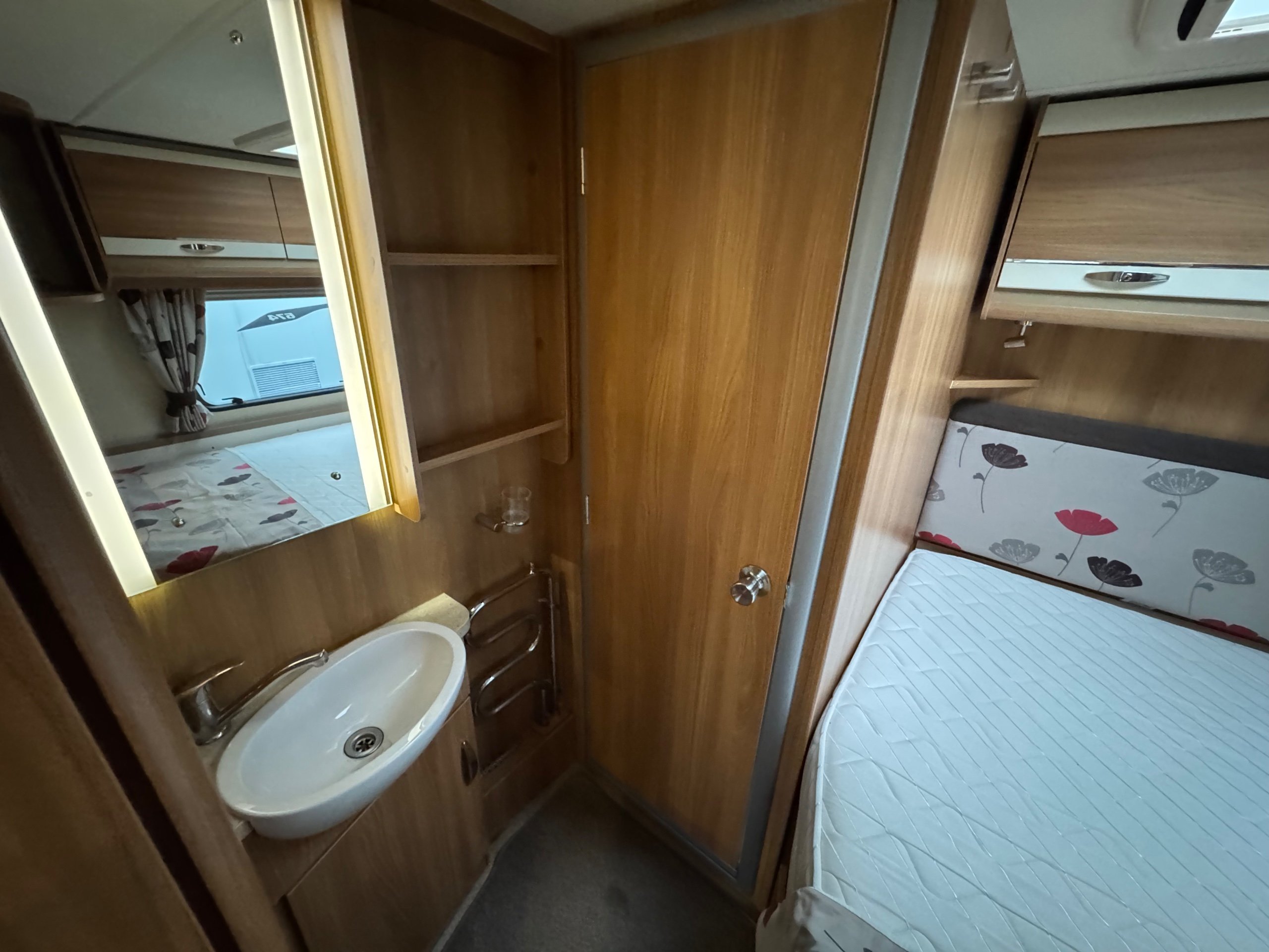 Nearside rear fixed double bed with en-suite dressing room featuring a separate shower cubicle and toilet - offside rear vanity unit and wardrobes - nearside central kitchen - offside double dinette / lounge /dining area - 2 x 6' singles / double at the front - this is a spacious and comfortable 4 - 6 berth model, perfect for families. The interior features a well equipped kitchen, cozy lounge area together with a separate bedroom space providing all the comforts of home whilst on the go.