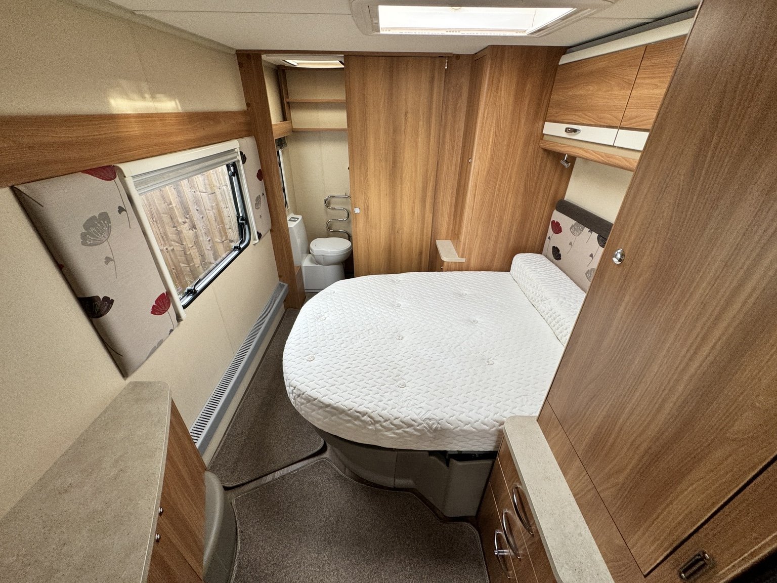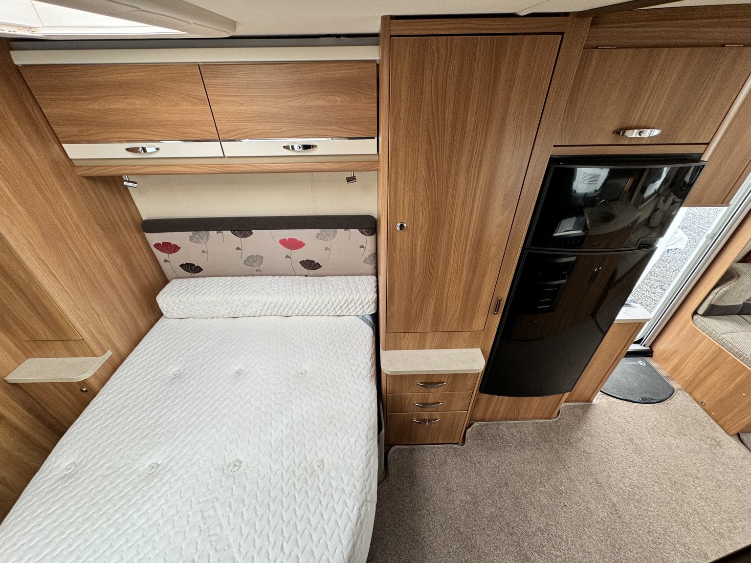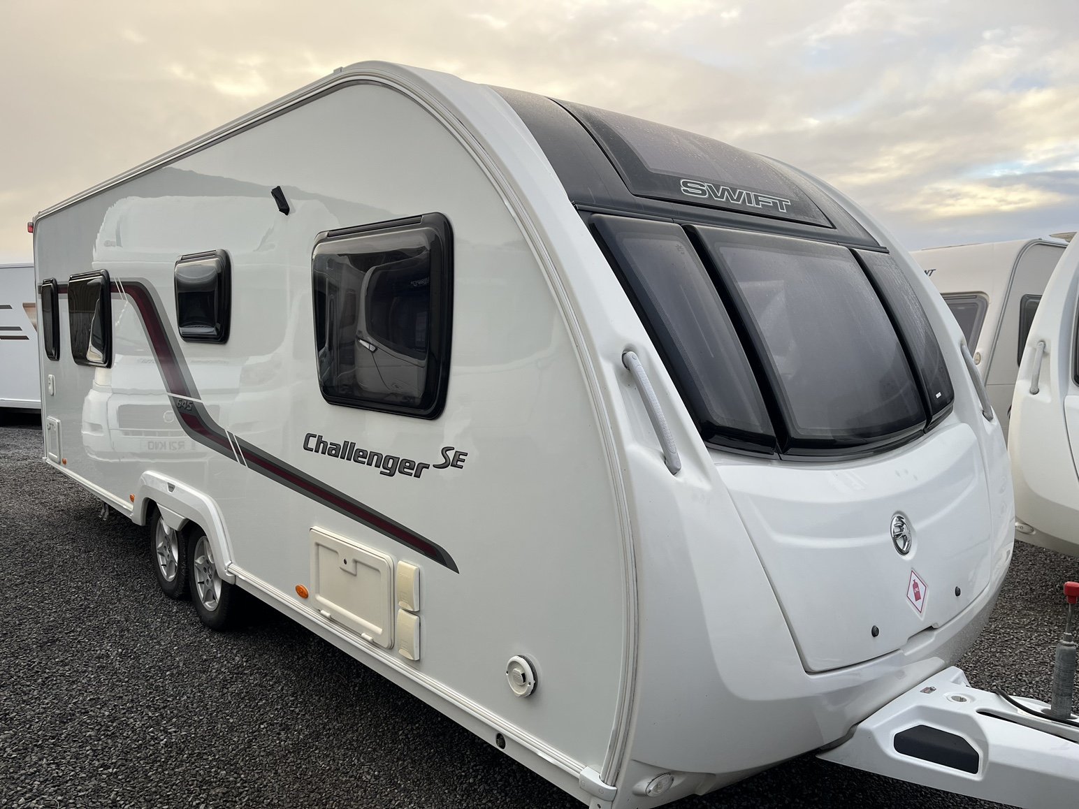 SWIFT CHALLENGER 645 / 4 BERTH - TWIN AXLE - full rear dressing room incorporating a separate shower cubicle, toilet and vanity unit - nearside rear fixed transverse island double bed complete with adjoining wardrobes - offside central kitchen - nearside central 110 litre Dometic tower fridge freezer - 2 x singles / 1 x double at the front - Alde radiator central heating and water system - low energy LED lighting system throughout - external BBQ point and 230V socket, plus a host of extras that you would associate with a top spec tourer