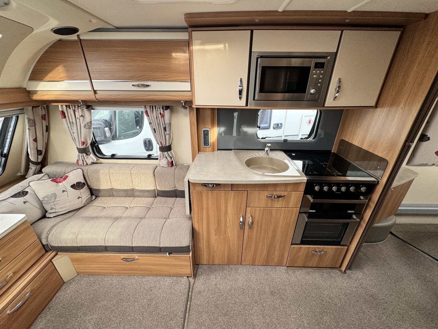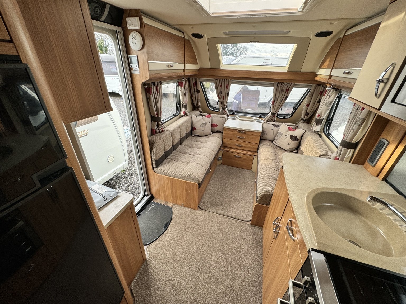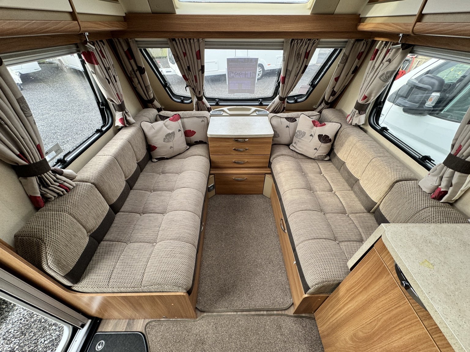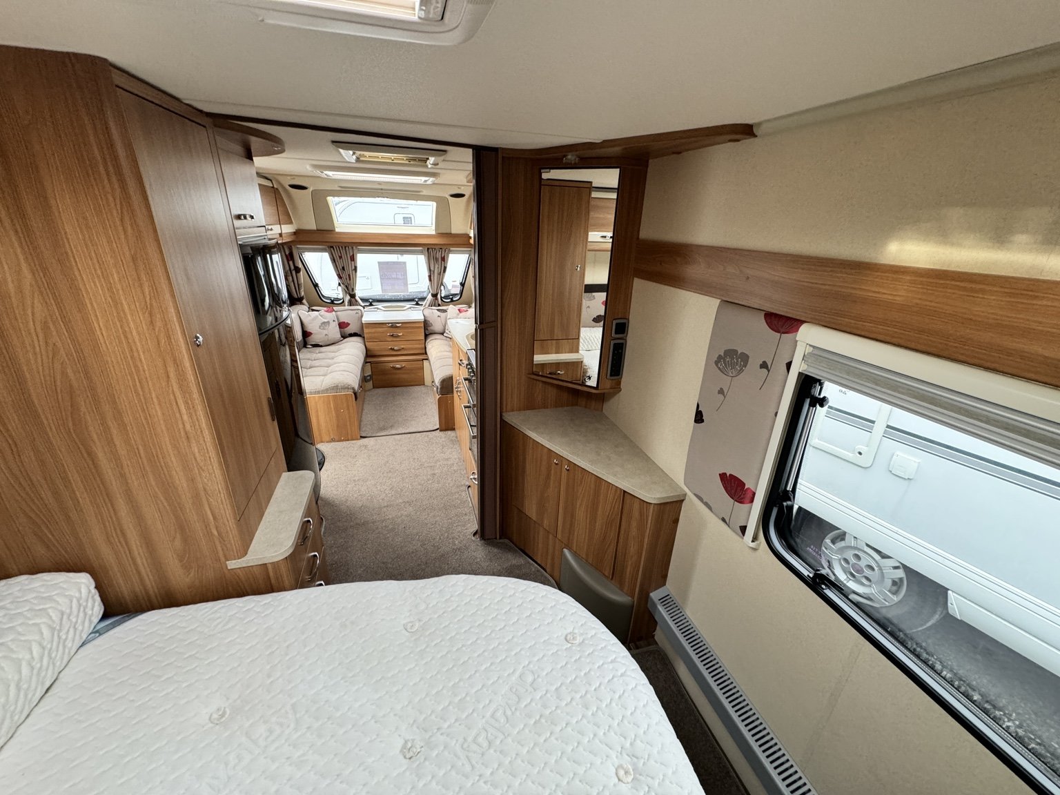 SWIFT CHALLENGER 645 / 4 BERTH - TWIN AXLE - full rear dressing room incorporating a separate shower cubicle, toilet and vanity unit - nearside rear fixed transverse island double bed complete with adjoining wardrobes - offside central kitchen - nearside central 110 litre Dometic tower fridge freezer - 2 x singles / 1 x double at the front - Alde radiator central heating and water system - low energy LED lighting system throughout - external BBQ point and 230V socket, plus a host of extras that you would associate with a top spec tourer