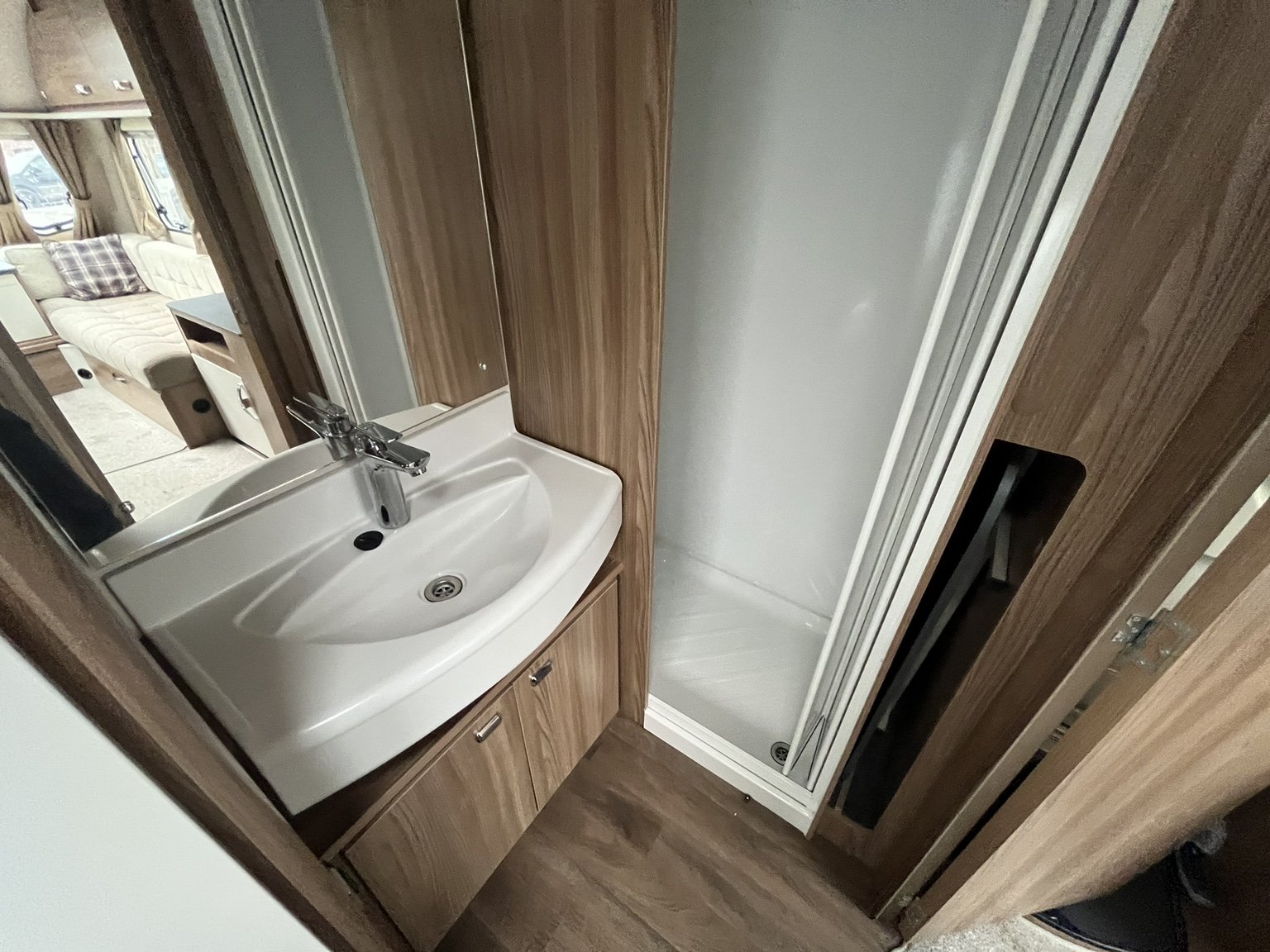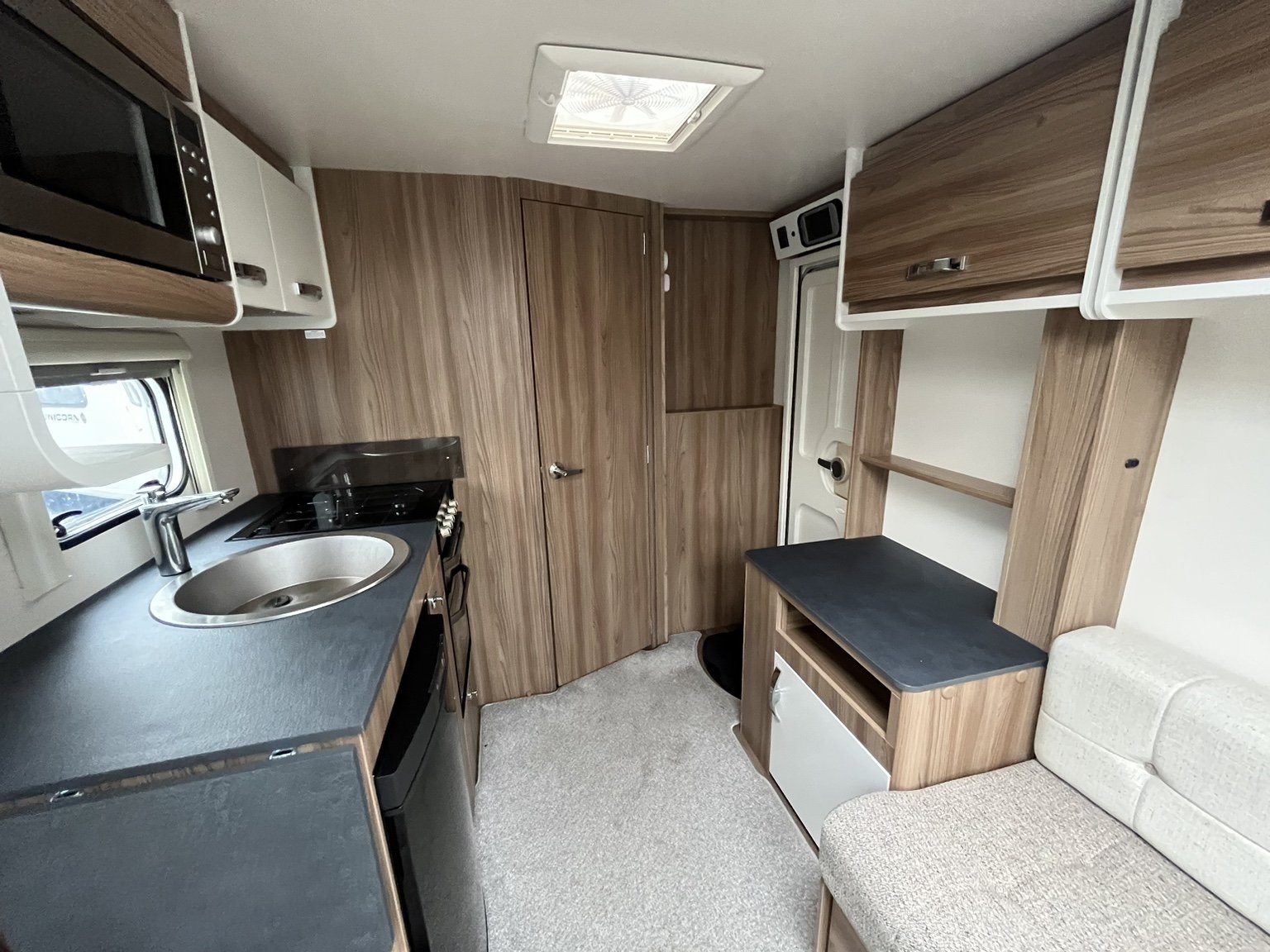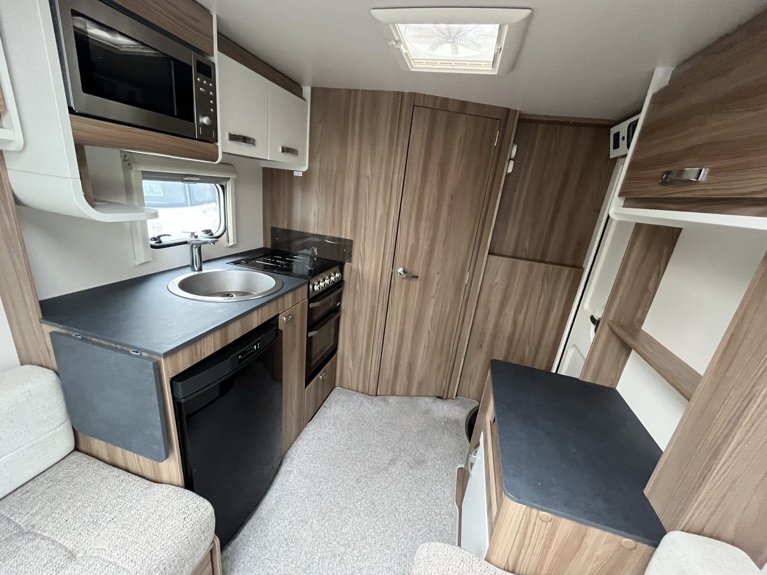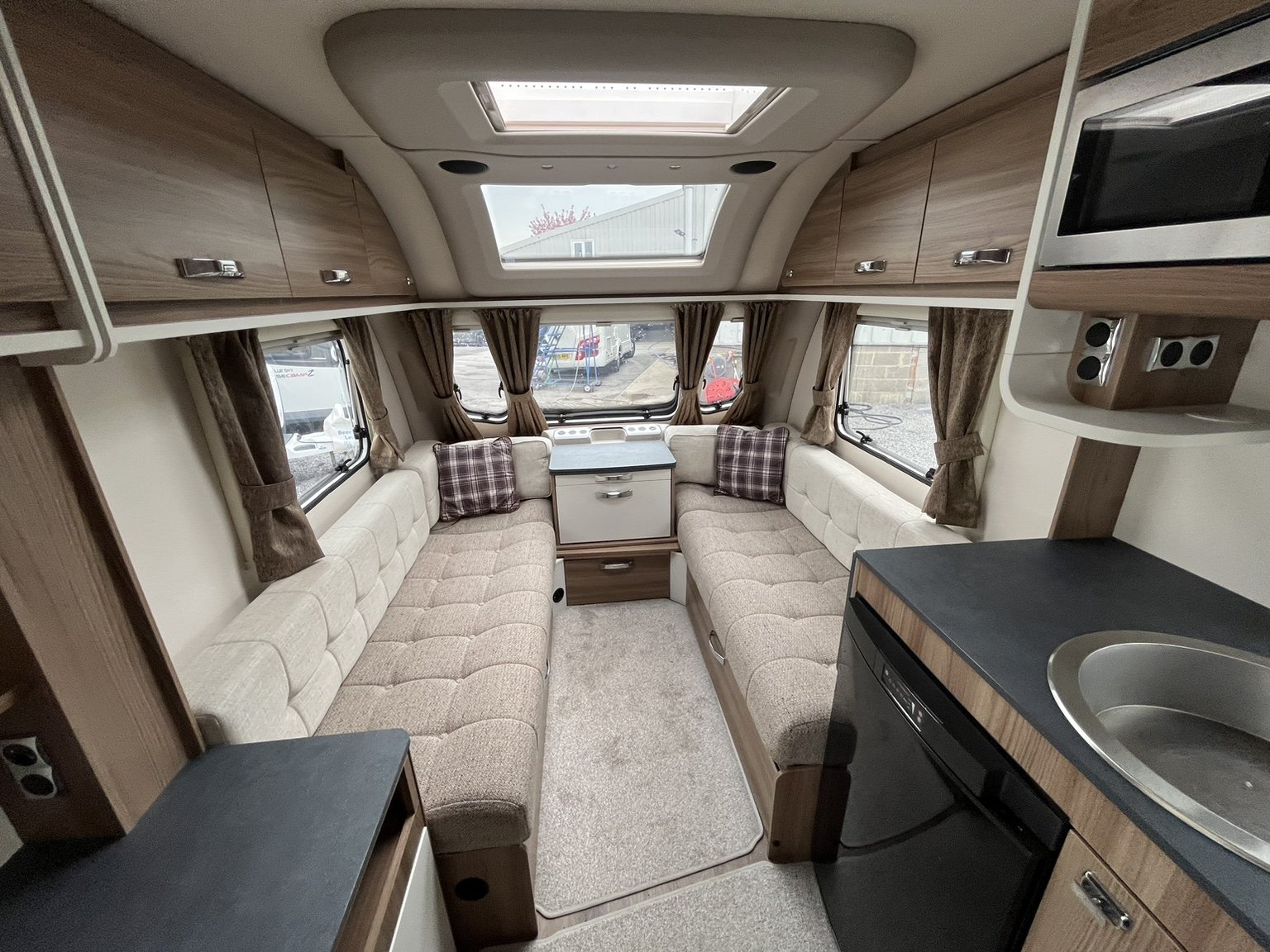 Complete end dressing room including separate shower enclosure, illuminated vanity unit, wardrobe and toilet - central nearside dresser - central offside kitchen - 2 x singles / double at the front - this model has been exceptionally well cared for during its short life - in amazing condition both inside and out - lightweight and manageable, stylish, cosy and compact - viewing is highly recommended .