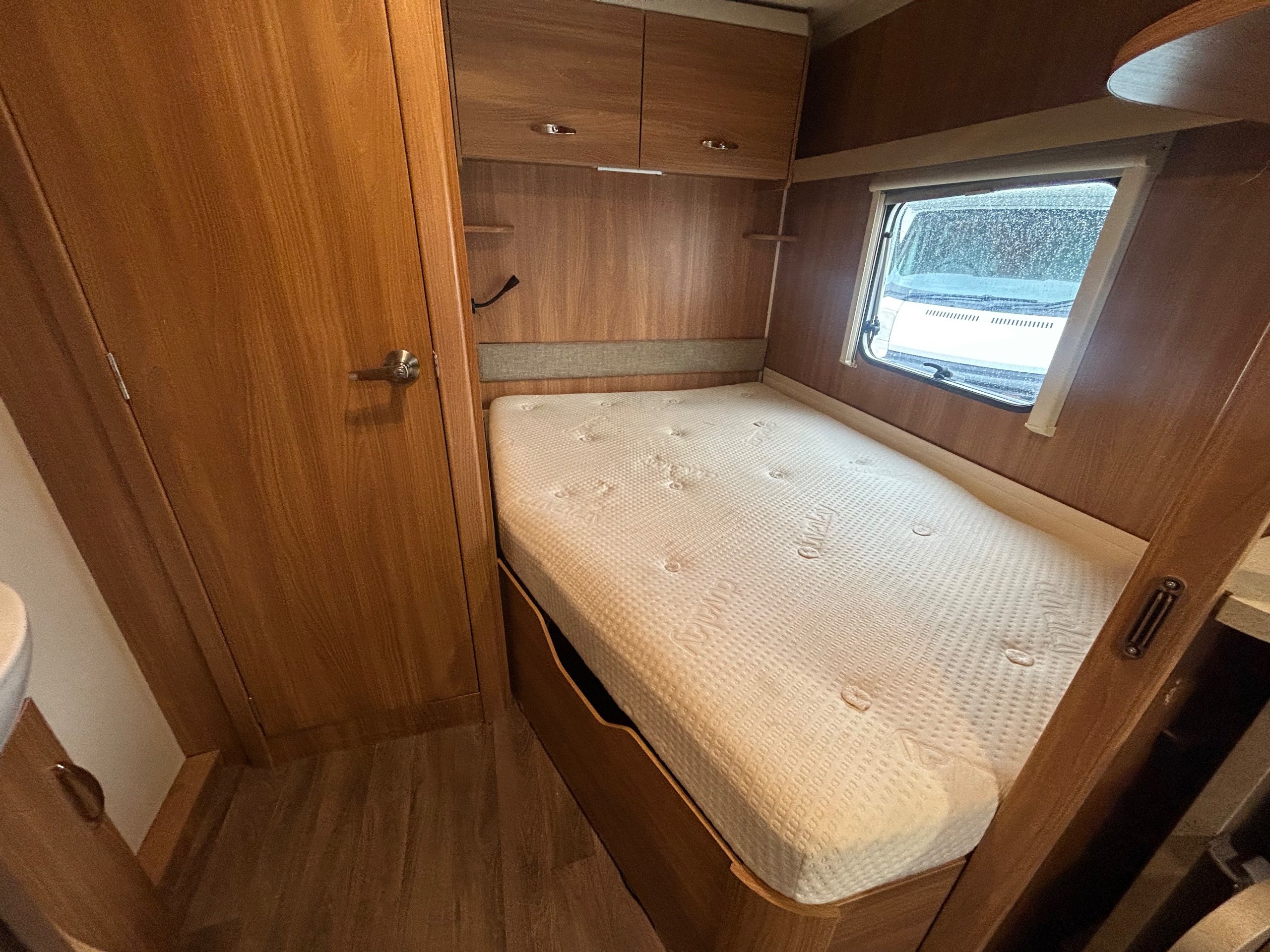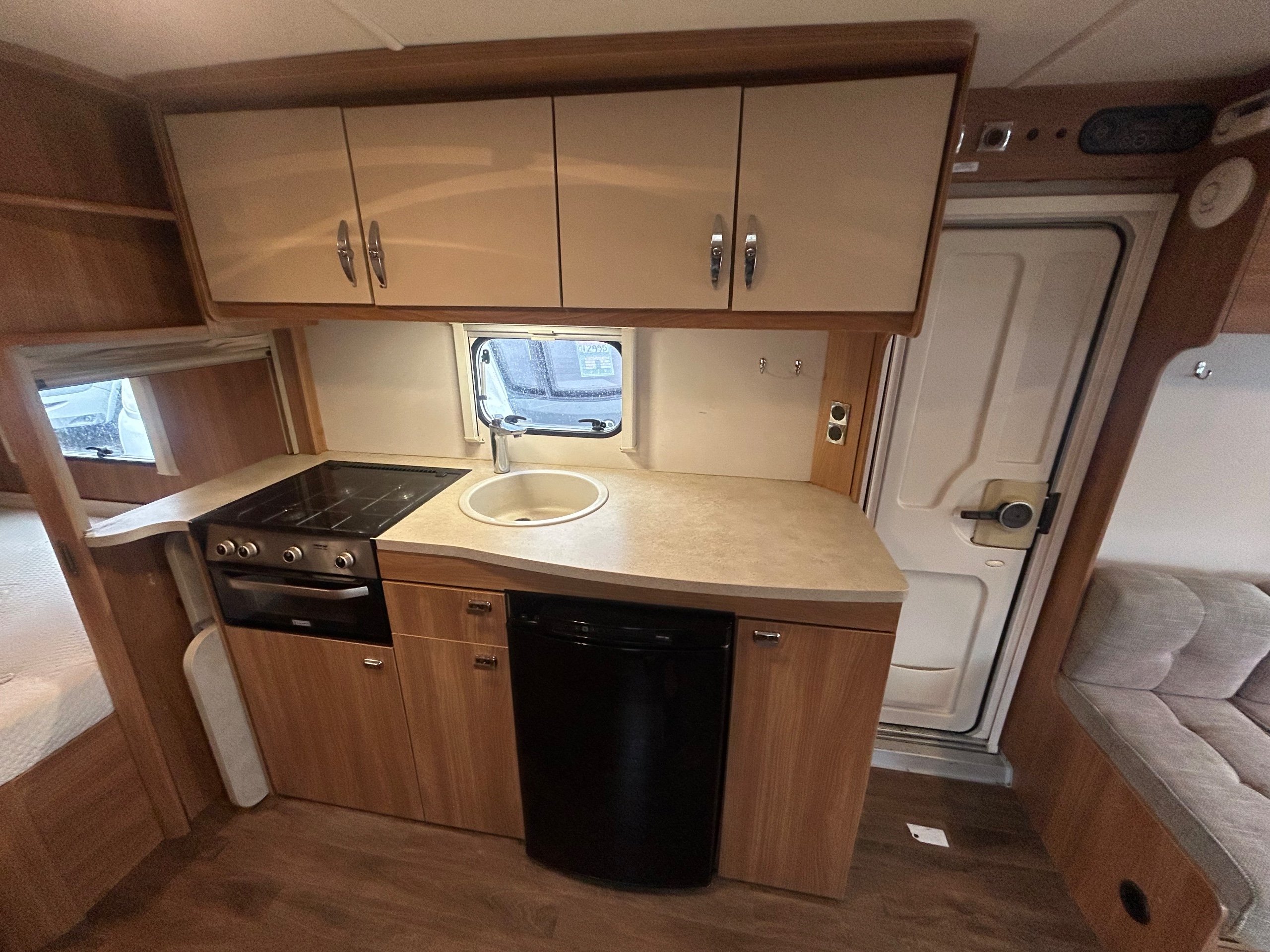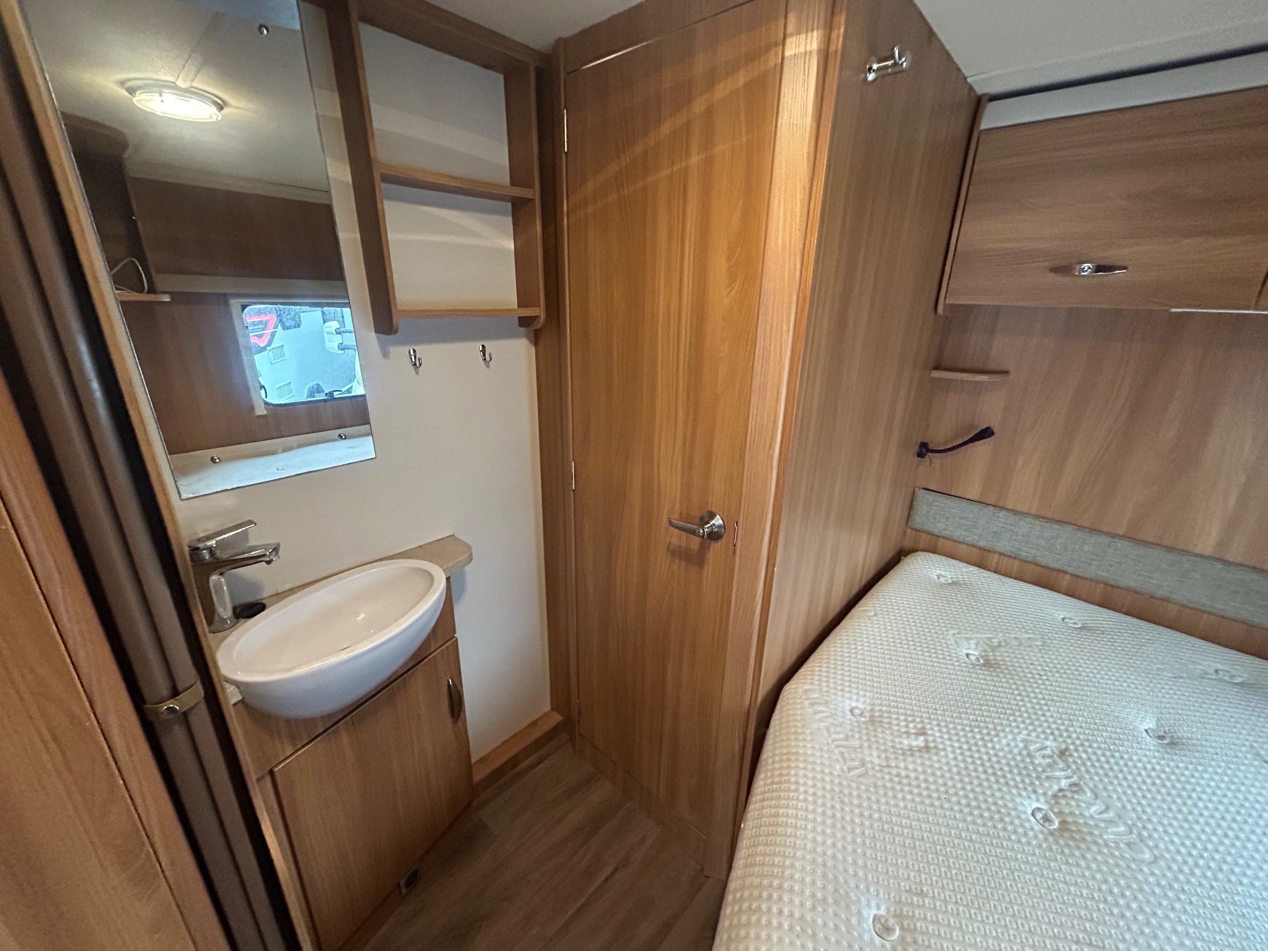 Nearside rear fixed island bed with en-suite toilet, vanity unit and separate shower enclosure - nearside central kitchen - offside single dinette with retractable bunk above - 2 x 6' singles / double at the front - a SUPER COMPARATIVELY LIGHTWEIGHT model which offers all the usual refinements and specification - GREAT FAMILY VAN with loads of storage all in EXCELLENT CONDITION.
