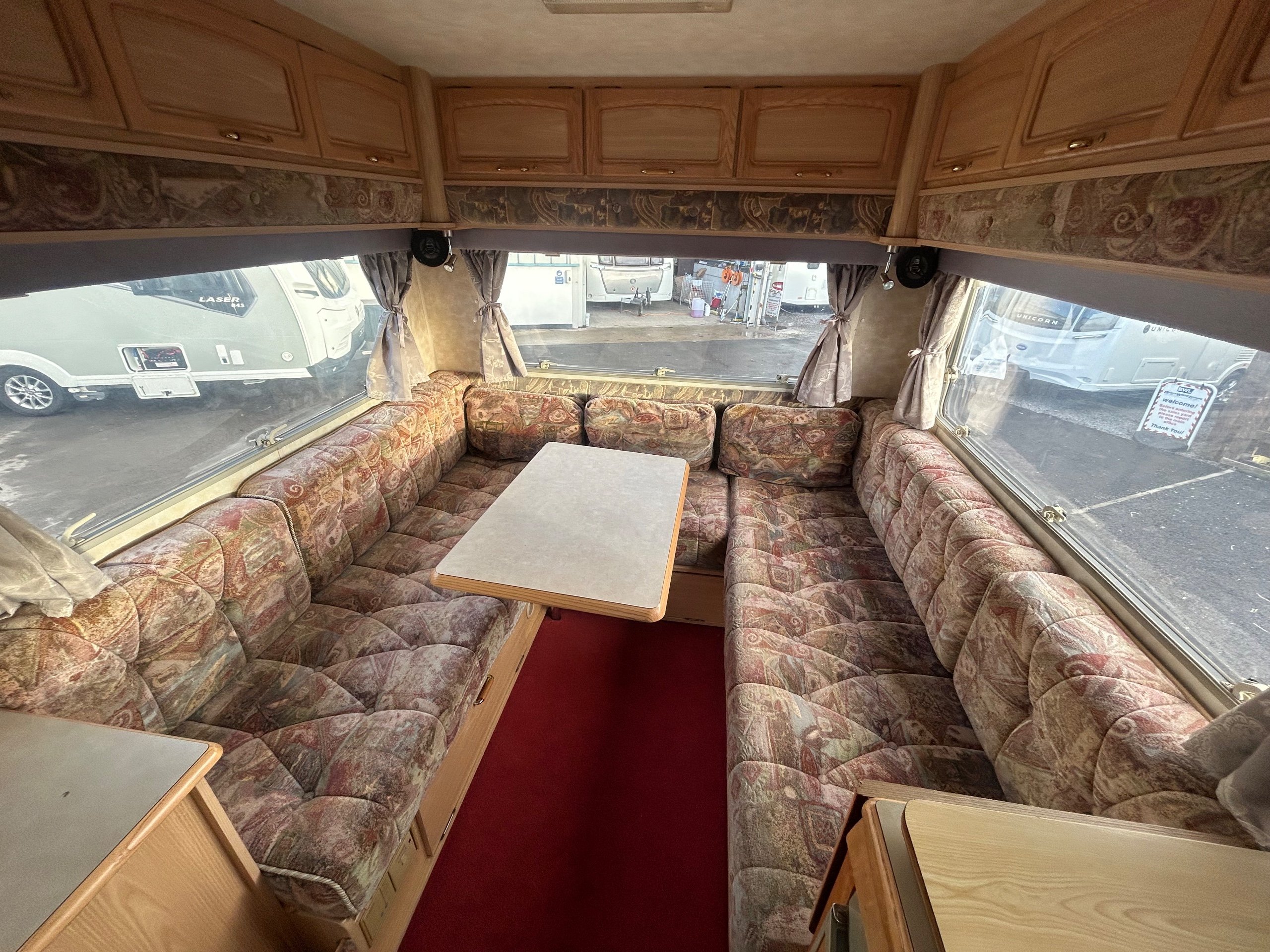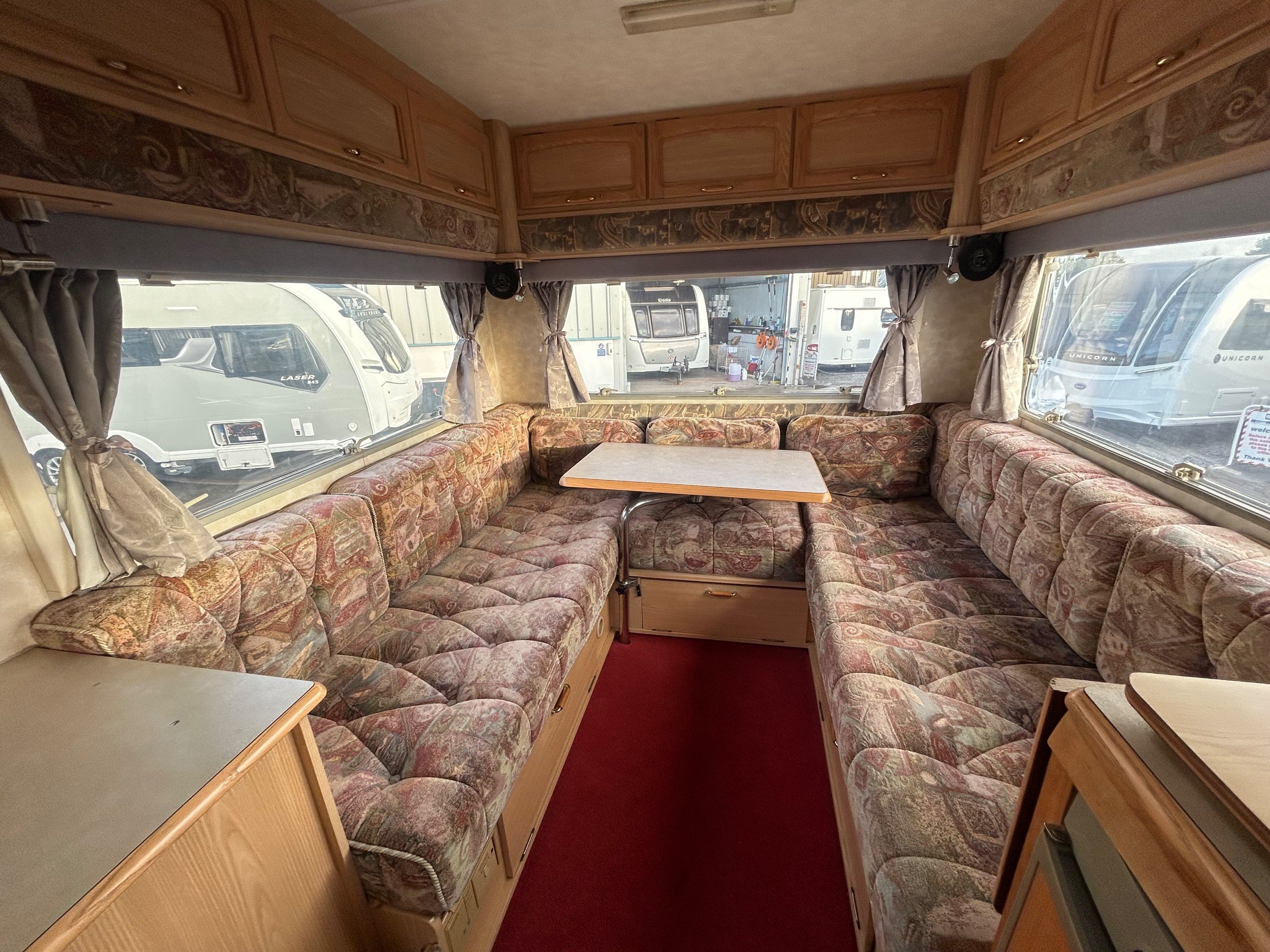 Rear lounge layout featuring 2 x 6' settees / single beds / 1 x large double