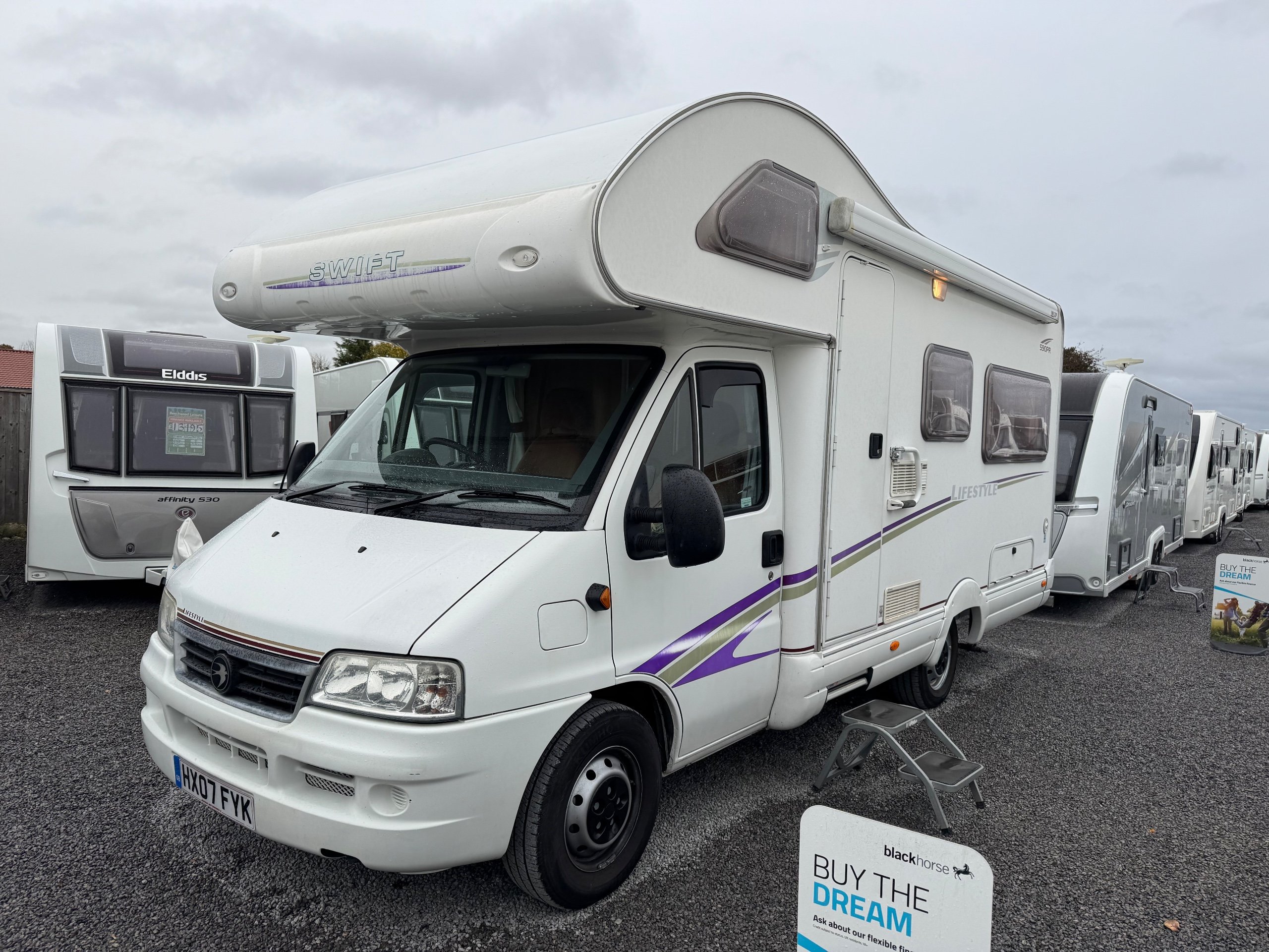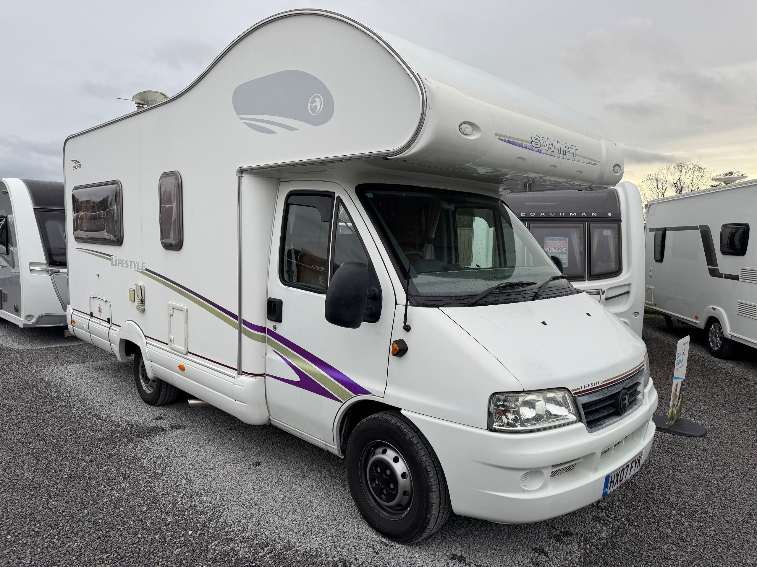 SWIFT LIFESTYLE 590 PR 2007 - REAR U-SHAPE LOUNGE - OVERCAB BED - TWO REFILLABLE GAS BOTTLES - LOW MILEAGE - FITTED AIR CONDITIONING - FITTD FIAMMA CANOPY - NEARLY NEW AIR PORCH AWNING - 12 MONTHS MOT INCLUDED!
